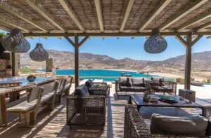 Overlooking Kalo Livadi beach and panoramic sea views. The Med is a newly built 6-bedroom villa overlooking Kalo Livadi beach, which blends gracefully with the natural
