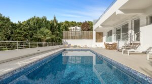 Located in the luxurious urbanisation of Can Furnet, offering an astonishing view on Dalt Vila and Formentera. This modern stylish villa is equipped with a suggestive