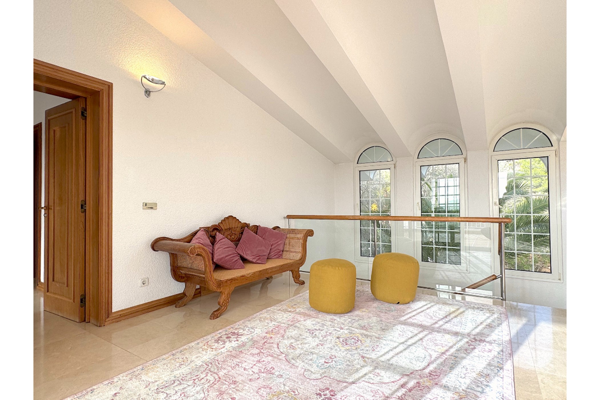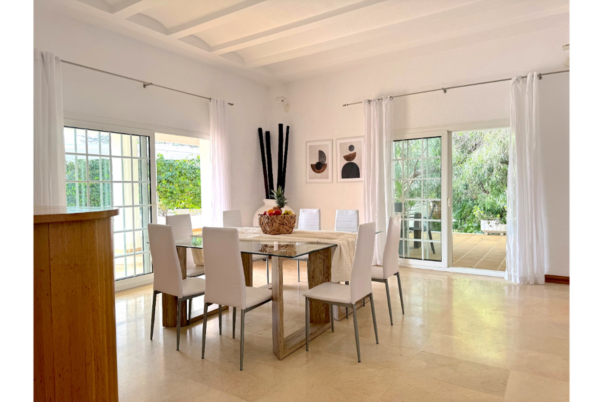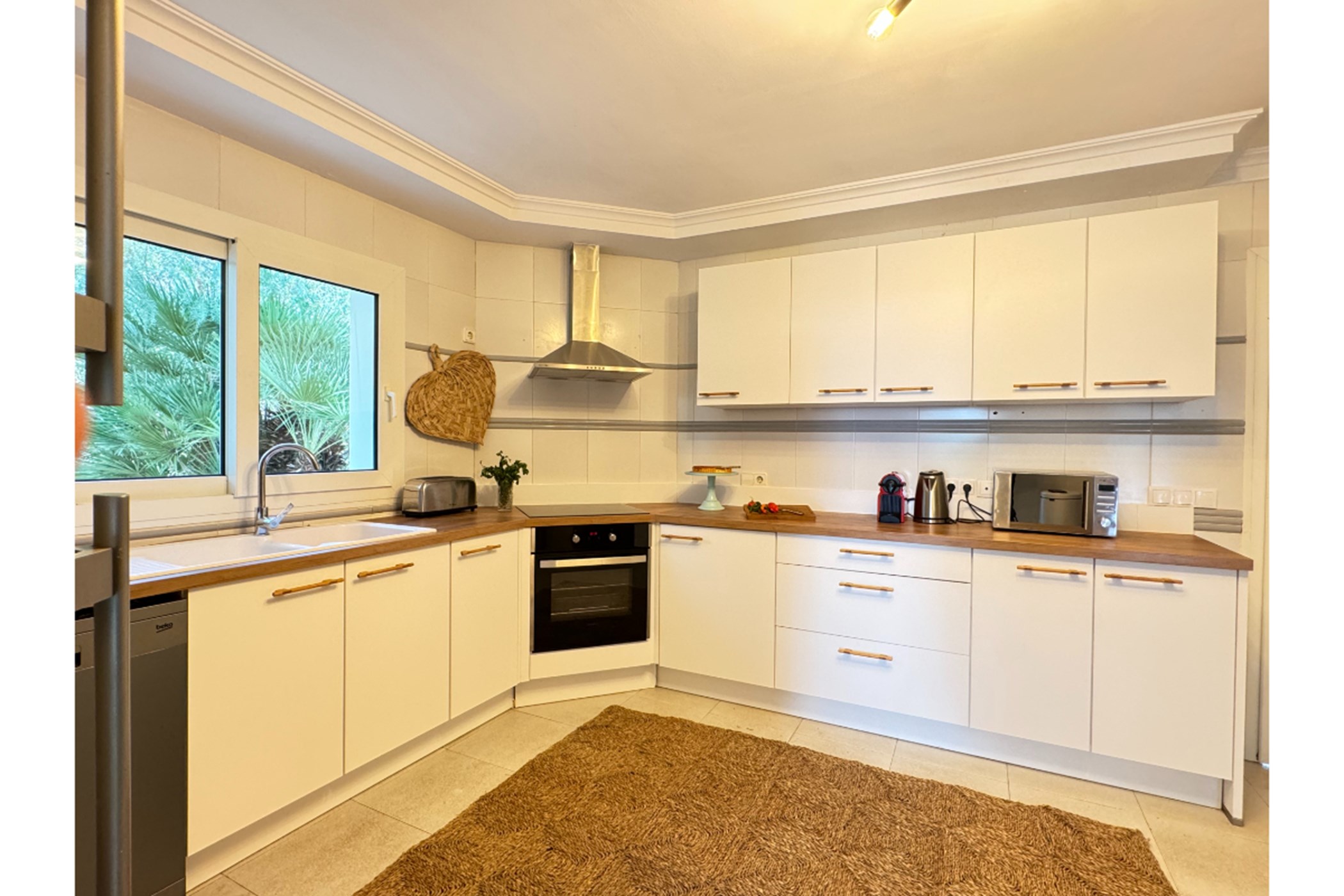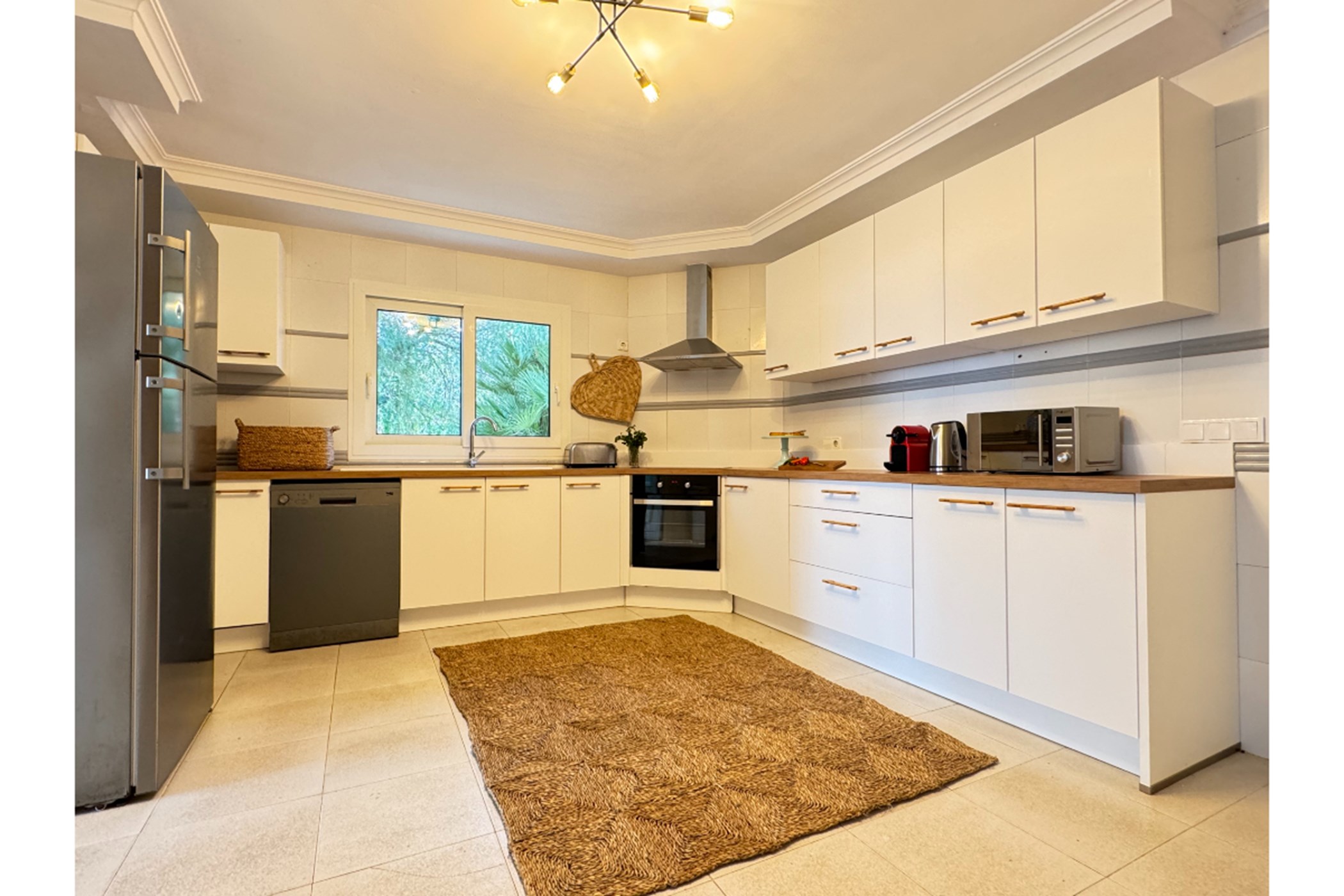 Among its distinguishing elements: a generous private pool at the centre of the grounds. The interiors are generous and well-proportioned, with neutral tones that allow the Mediterranean light to do the rest.