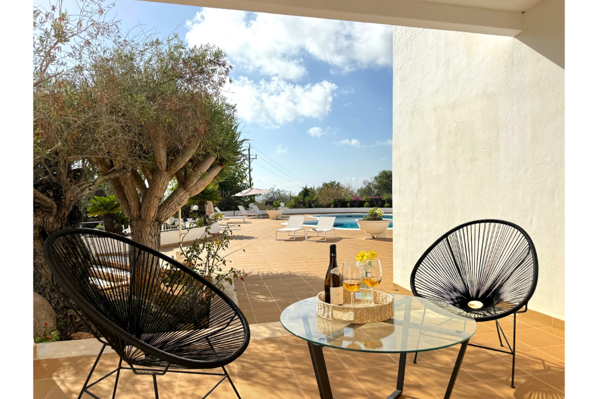 Located in Cap Martinet, Ibiza. A hire car is recommended. Ibiza Town, with its UNESCO-listed Dalt Vila, marina, and dining scene, is moments away. Ibiza Airport: 15–30 minutes by car.