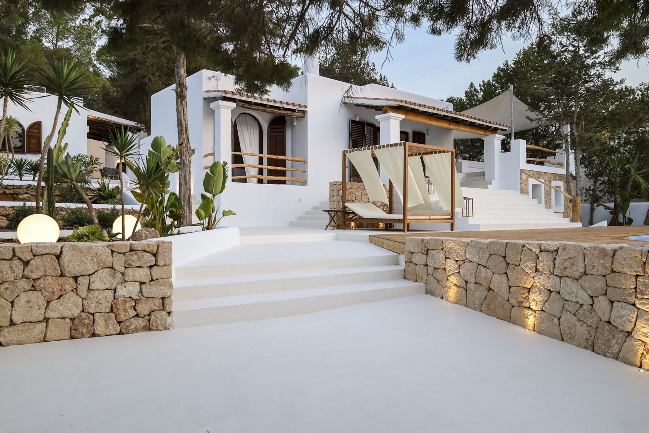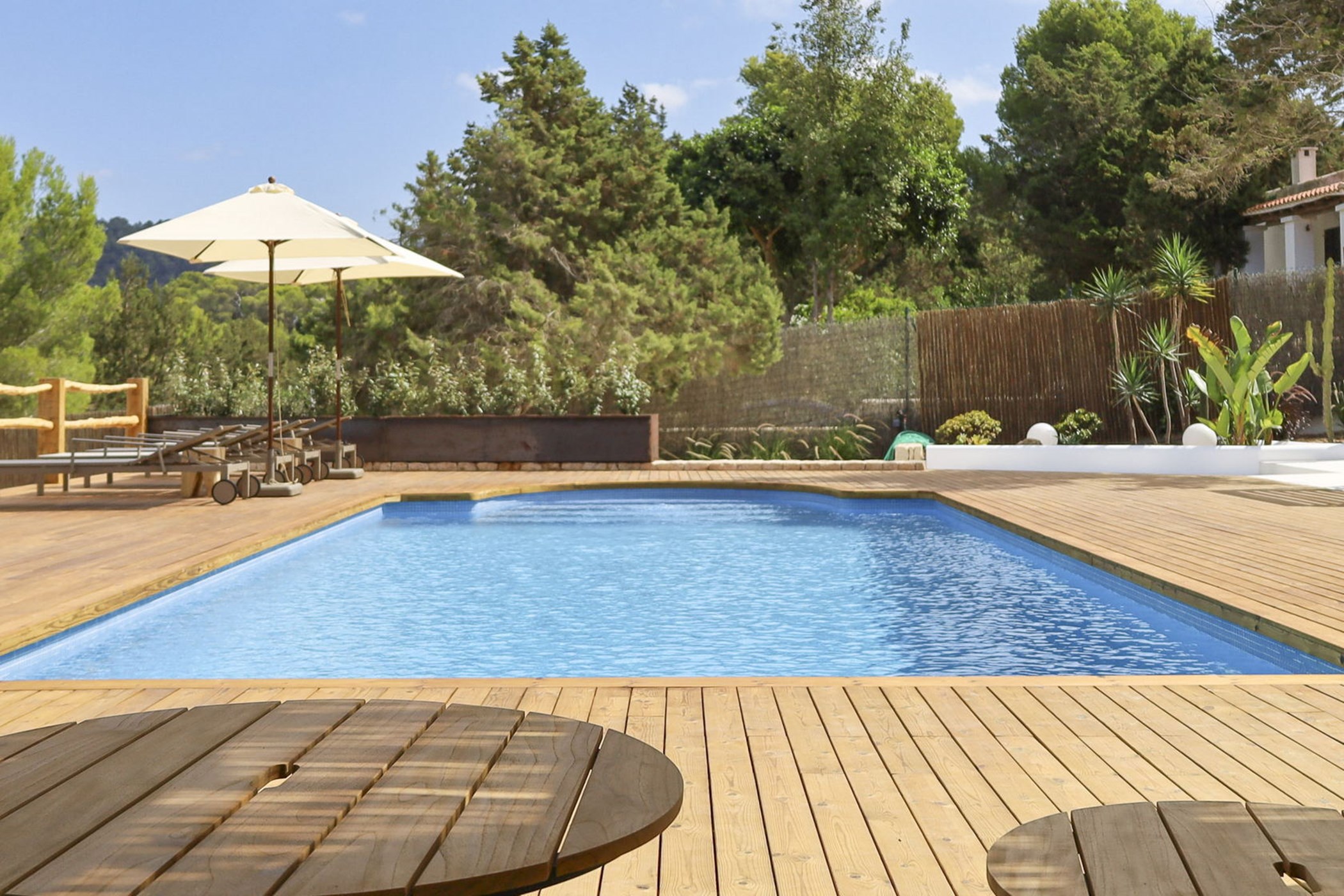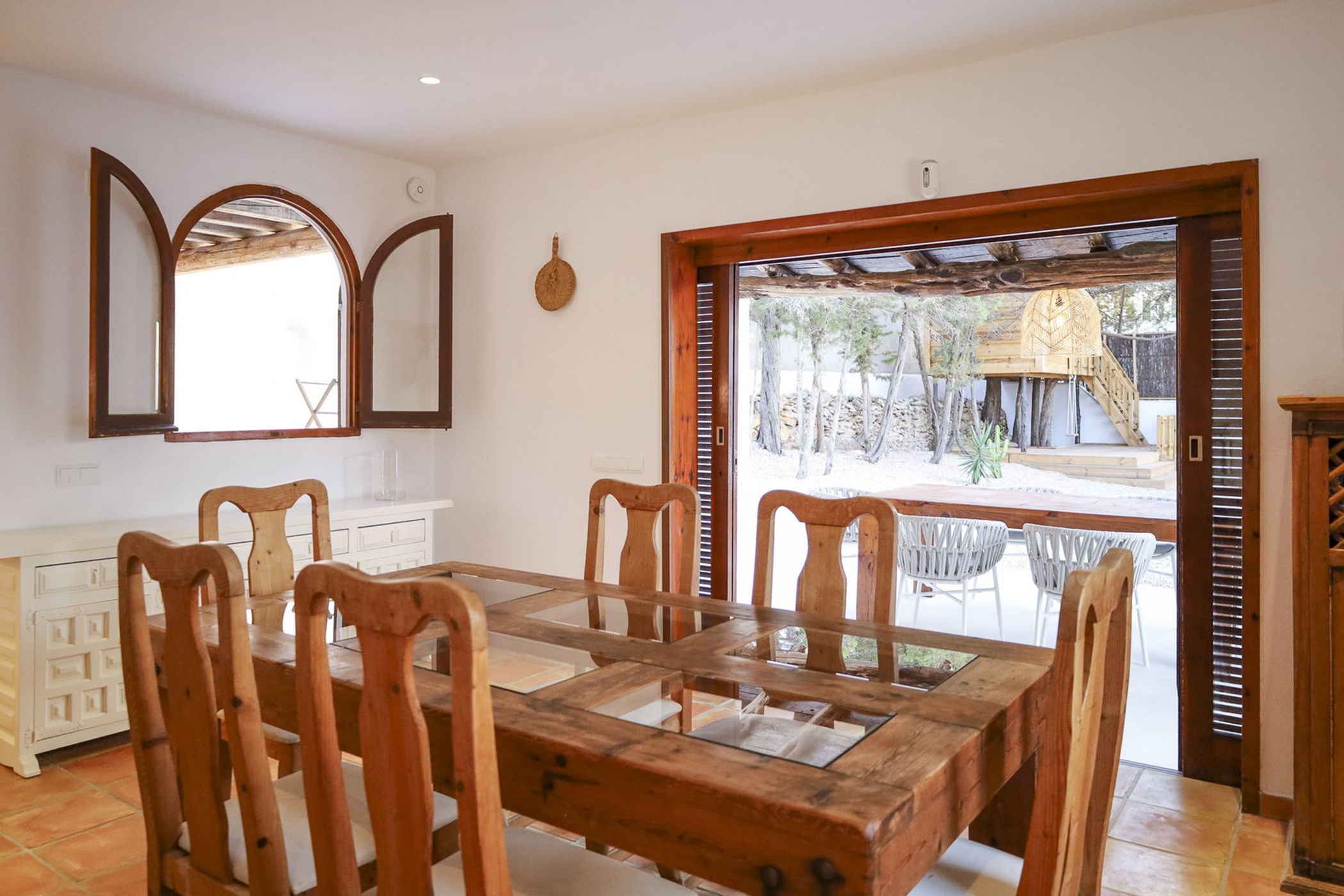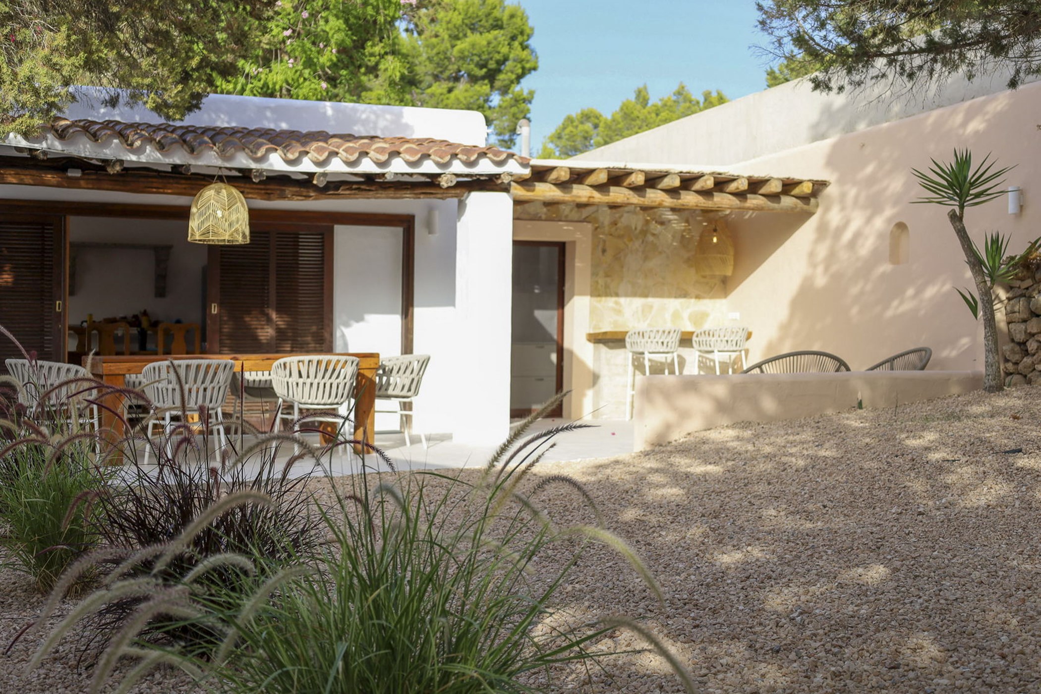Almez Petit doesn’t announce itself from the road. In Cala Tarida, this 3-bedroom home saves its drama for the interior — generous living areas, carefully framed views, and a garden that feels like a private world.