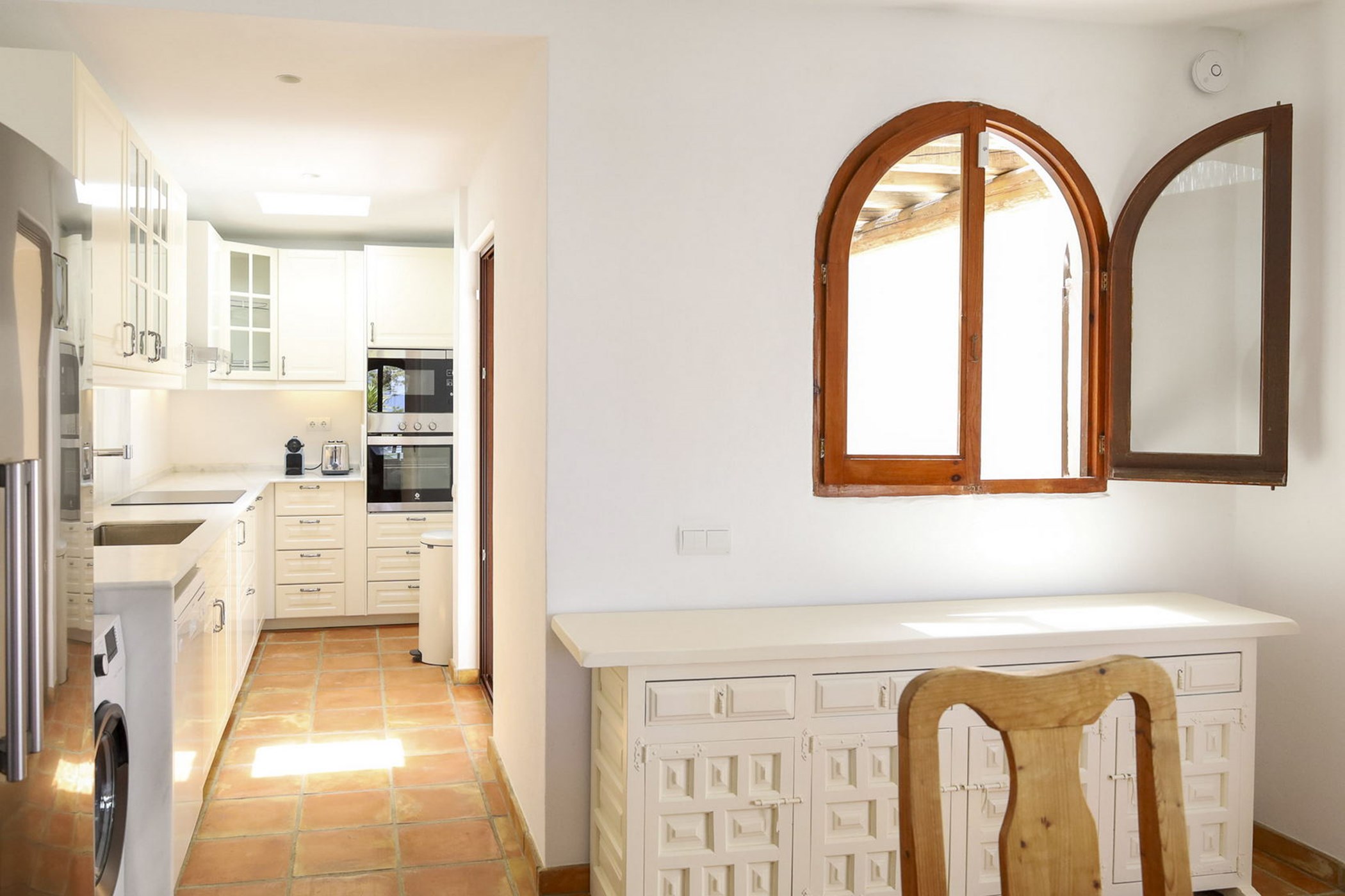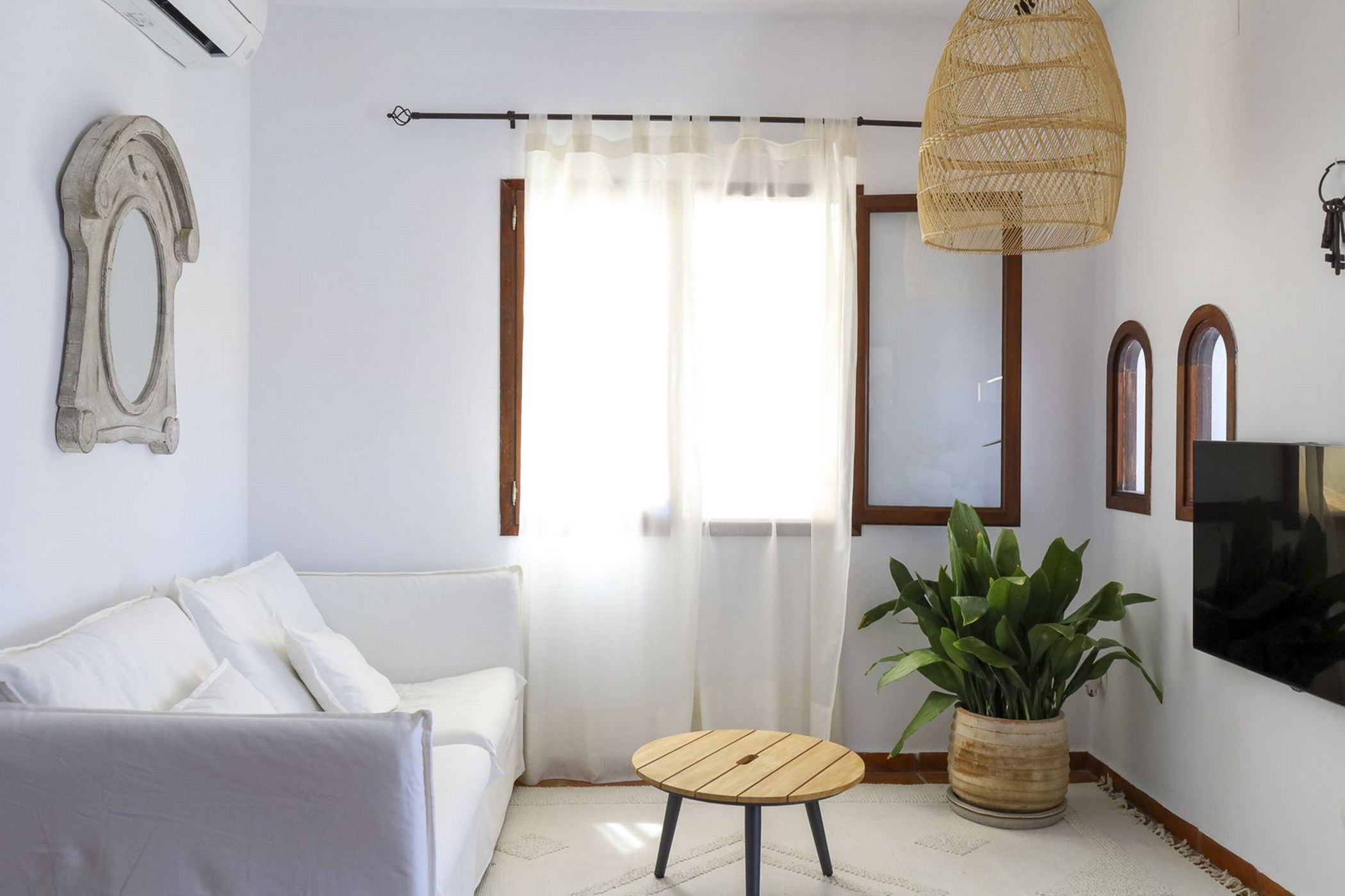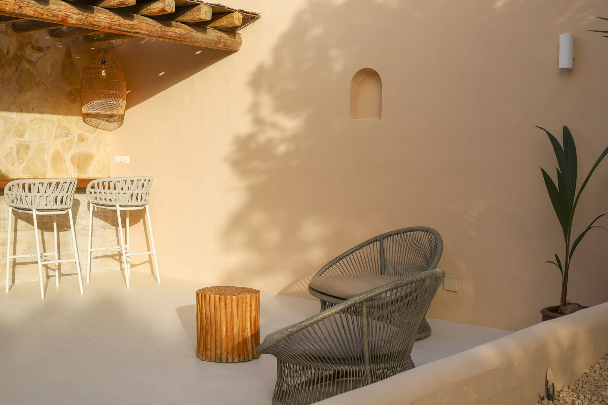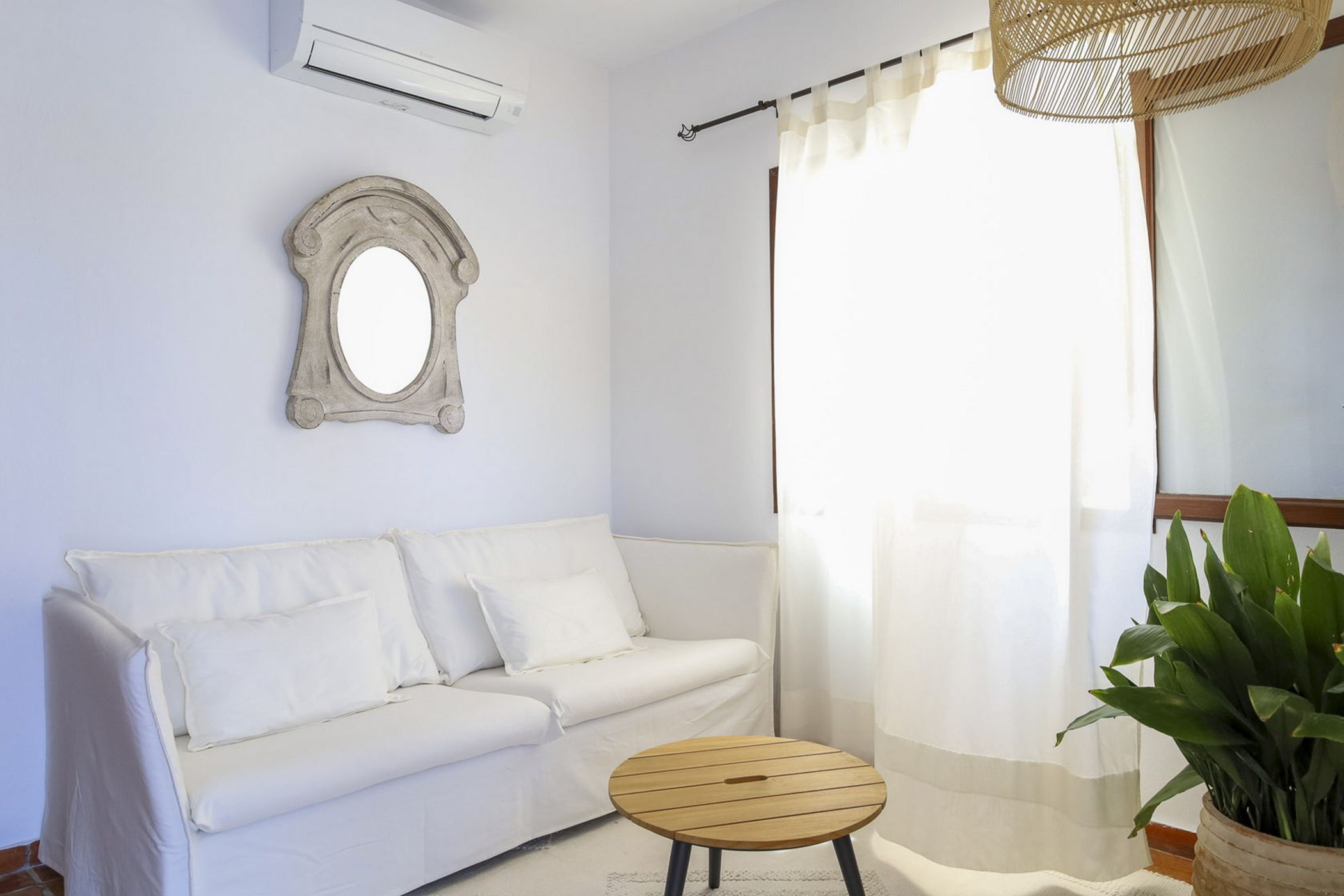 Almez Petit doesn’t announce itself from the road. In Cala Tarida, this 3-bedroom home saves its drama for the interior — generous living areas, carefully framed views, and a garden that feels like a private world.