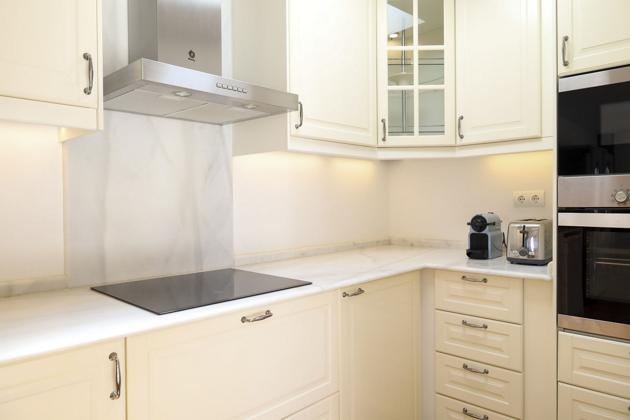 Fully equipped kitchen with modern appliances.