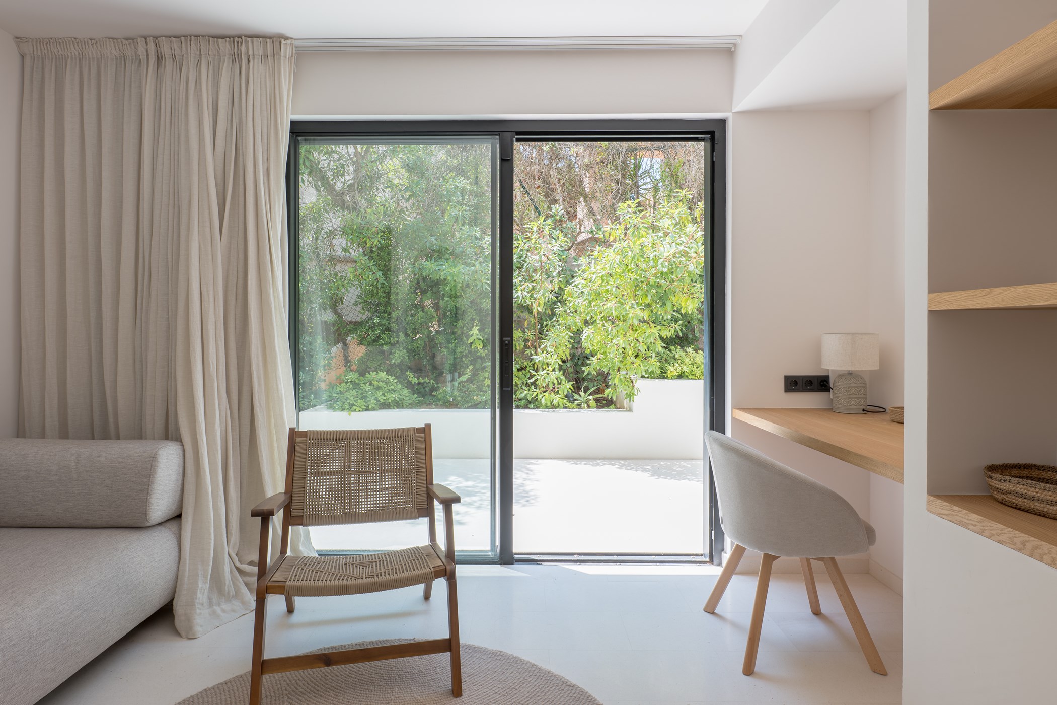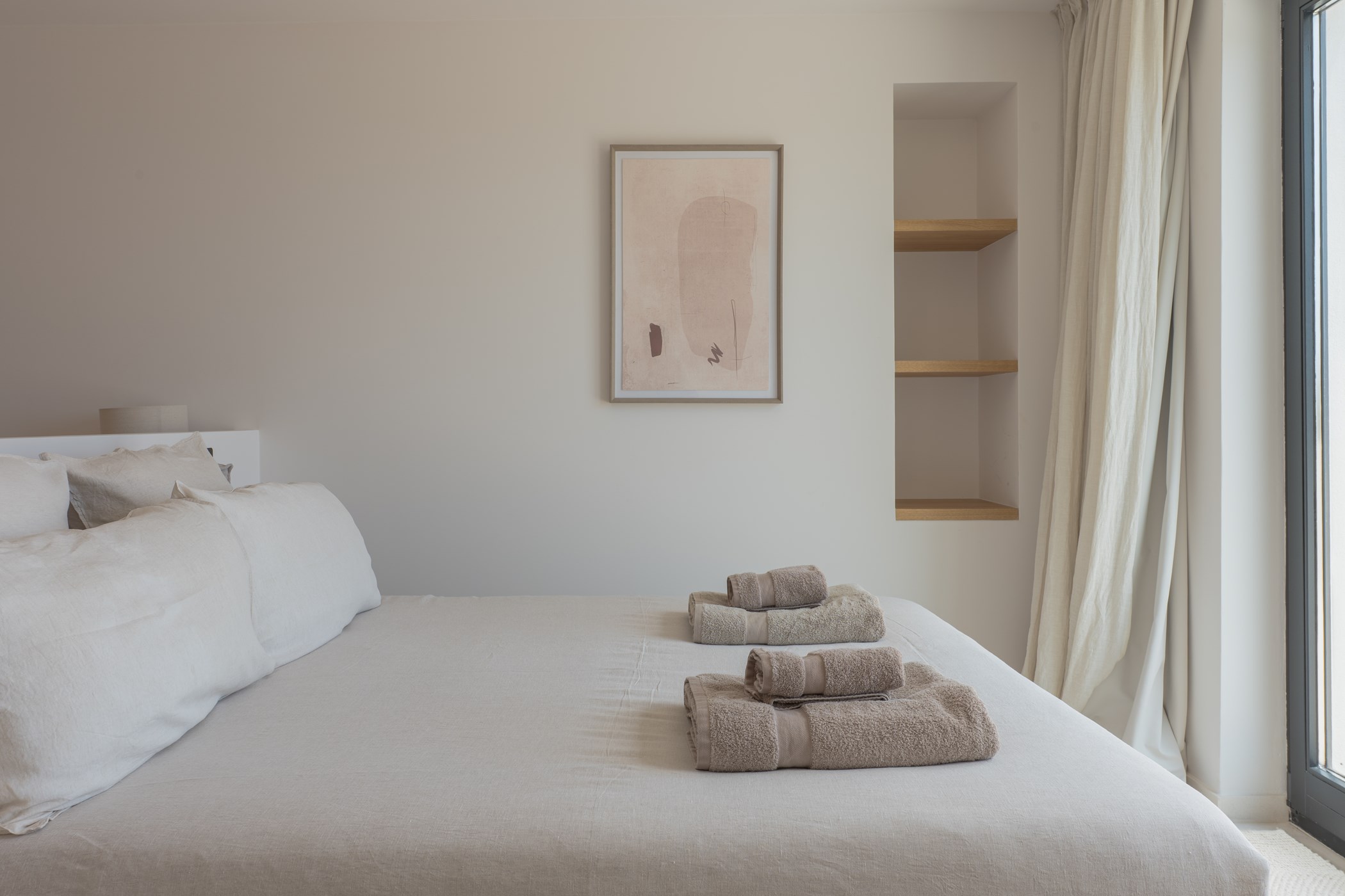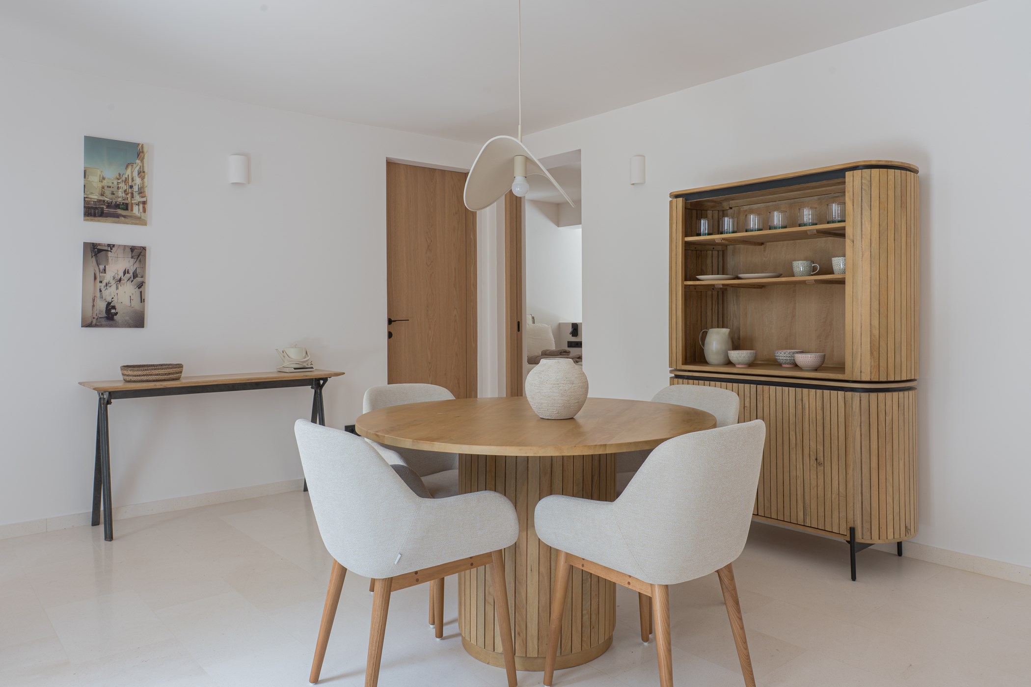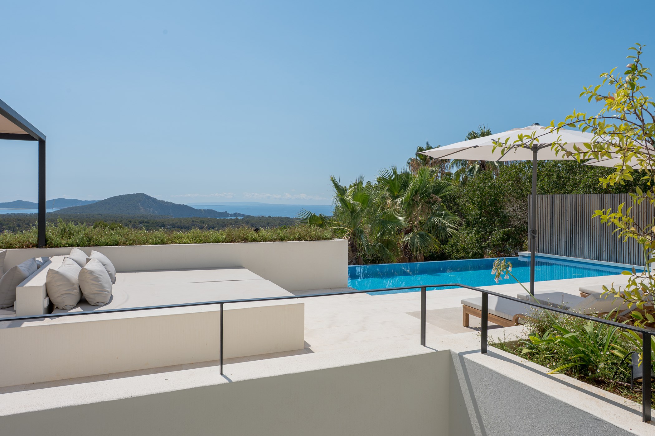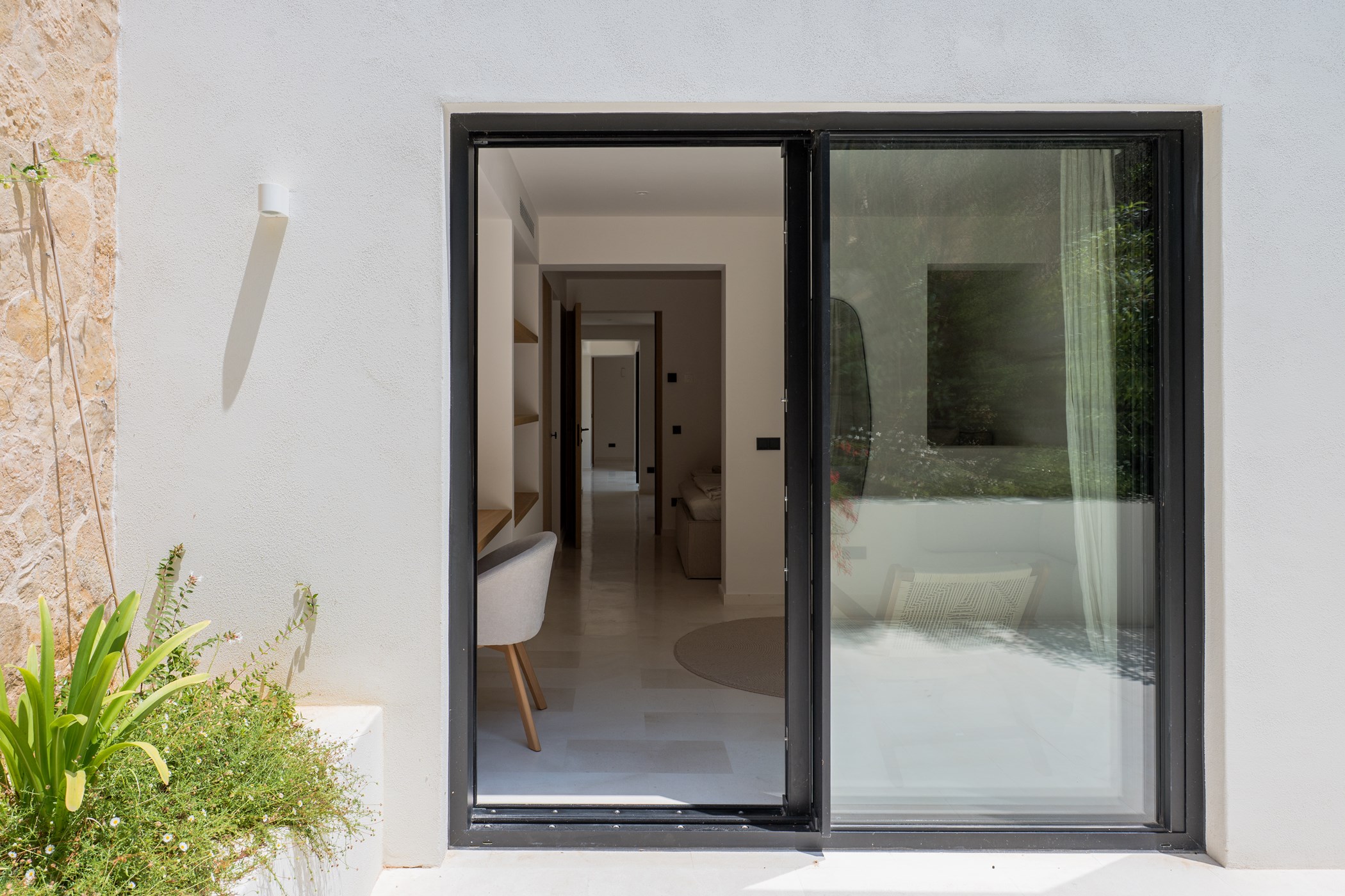 Among its distinguishing elements: a generous private pool at the centre of the grounds. The interiors are generous and well-proportioned, with neutral tones that allow the Mediterranean light to do the rest.