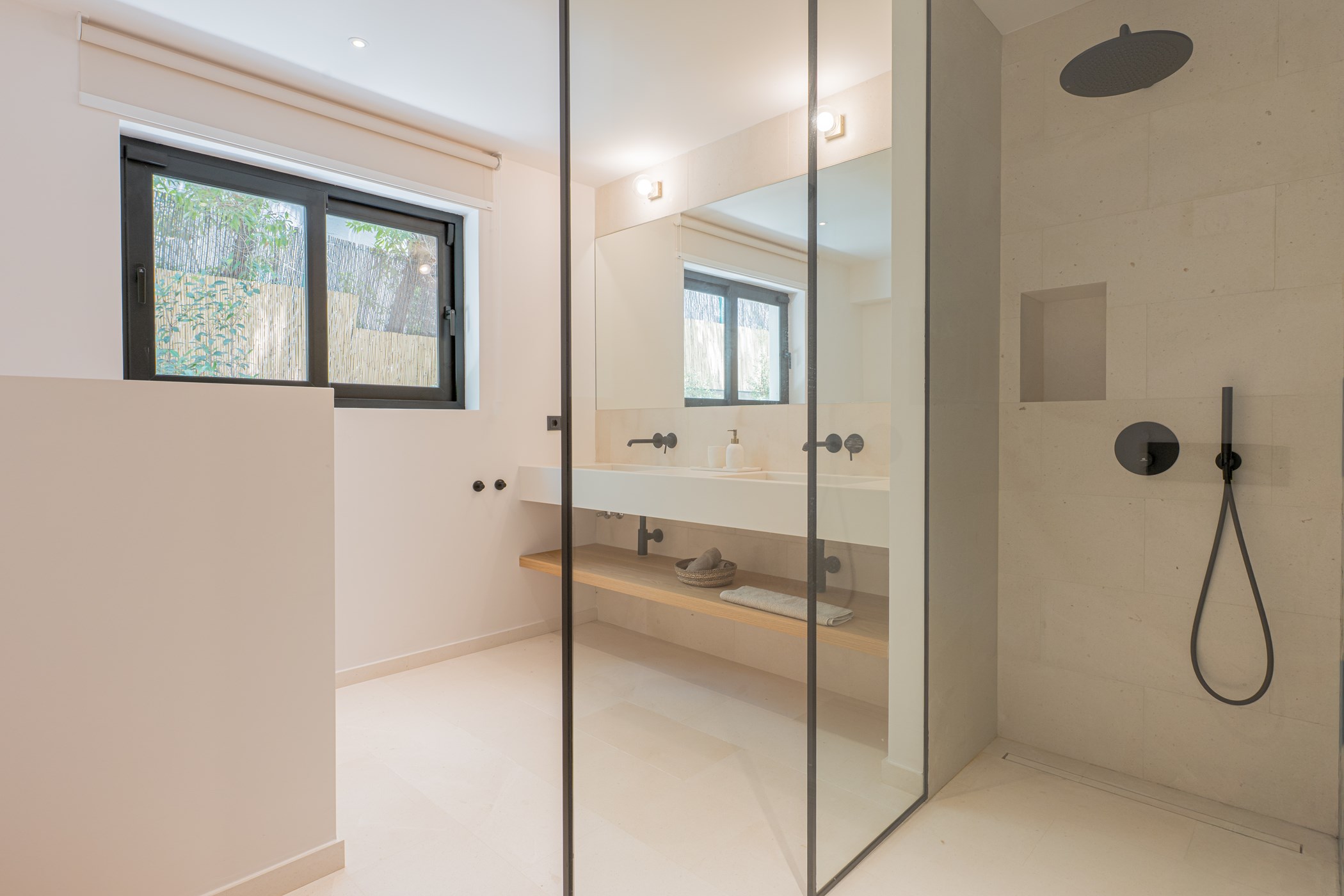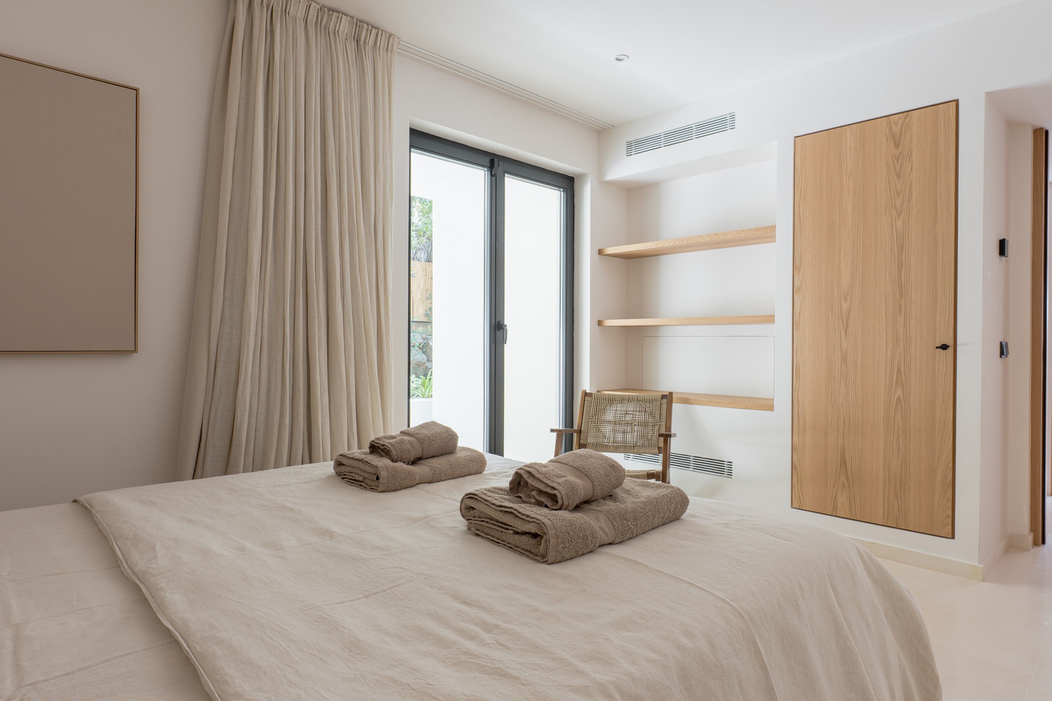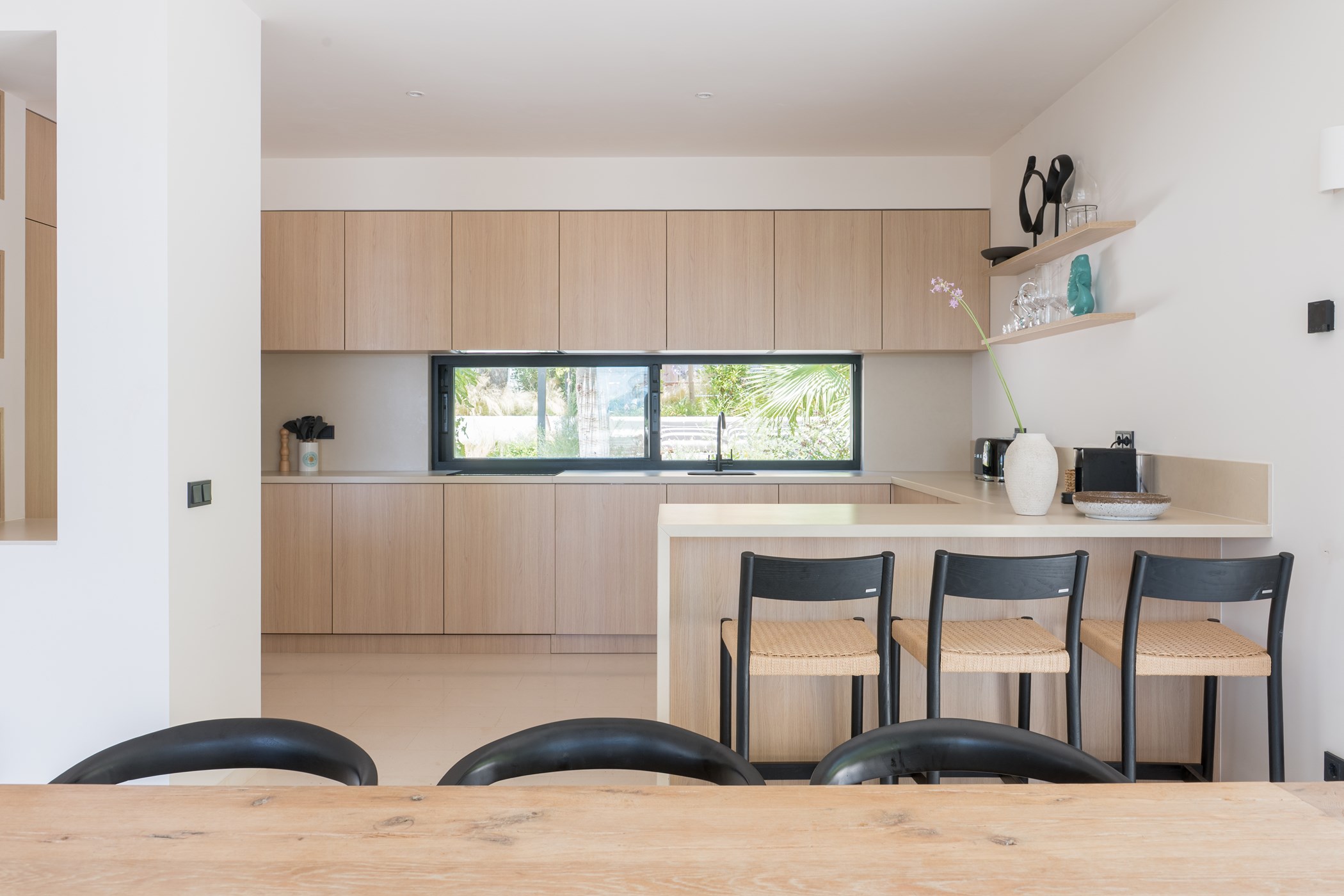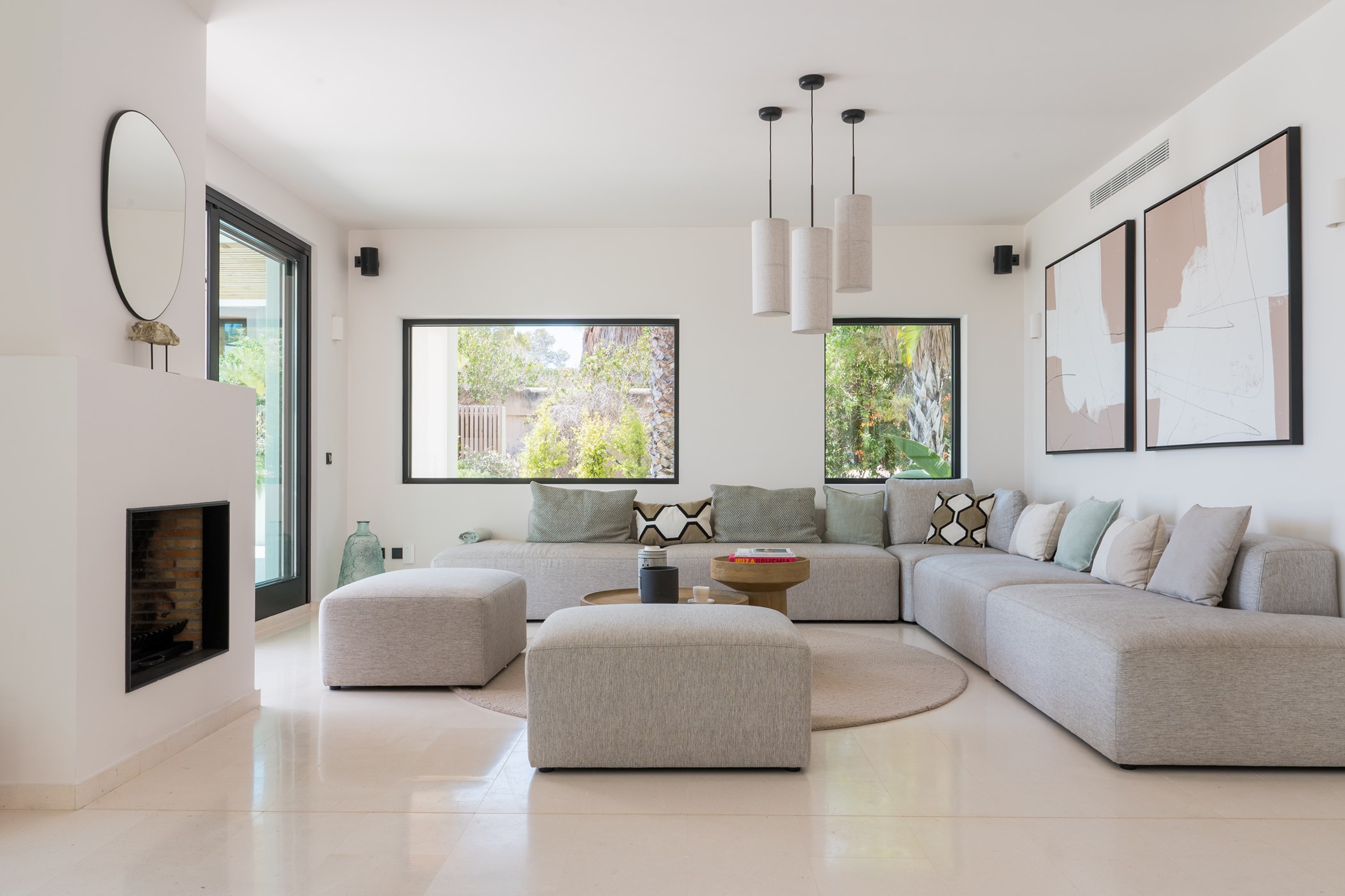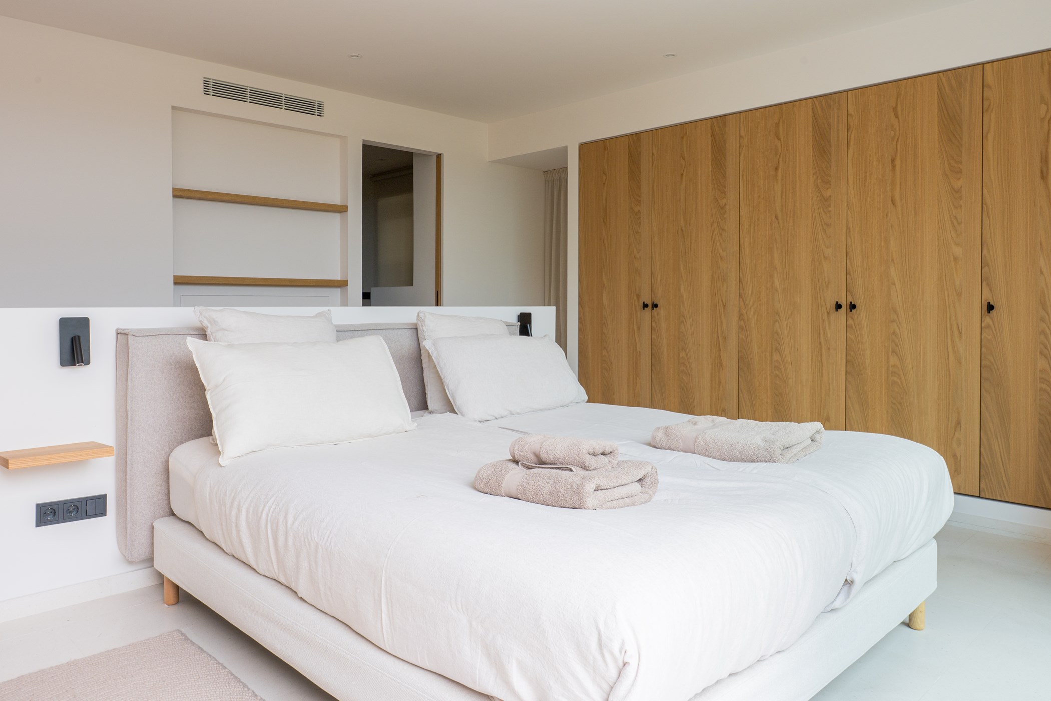 Among its distinguishing elements: a generous private pool at the centre of the grounds. The interiors are generous and well-proportioned, with neutral tones that allow the Mediterranean light to do the rest.