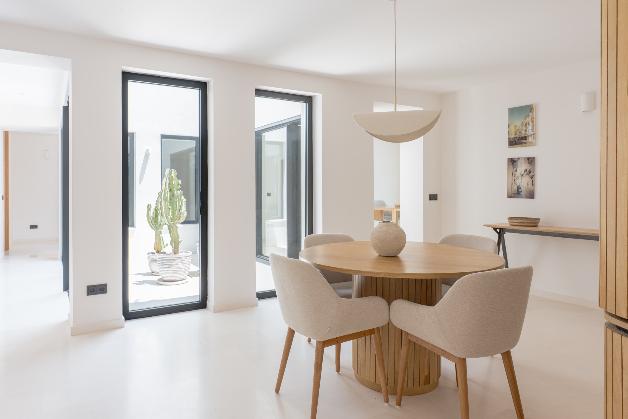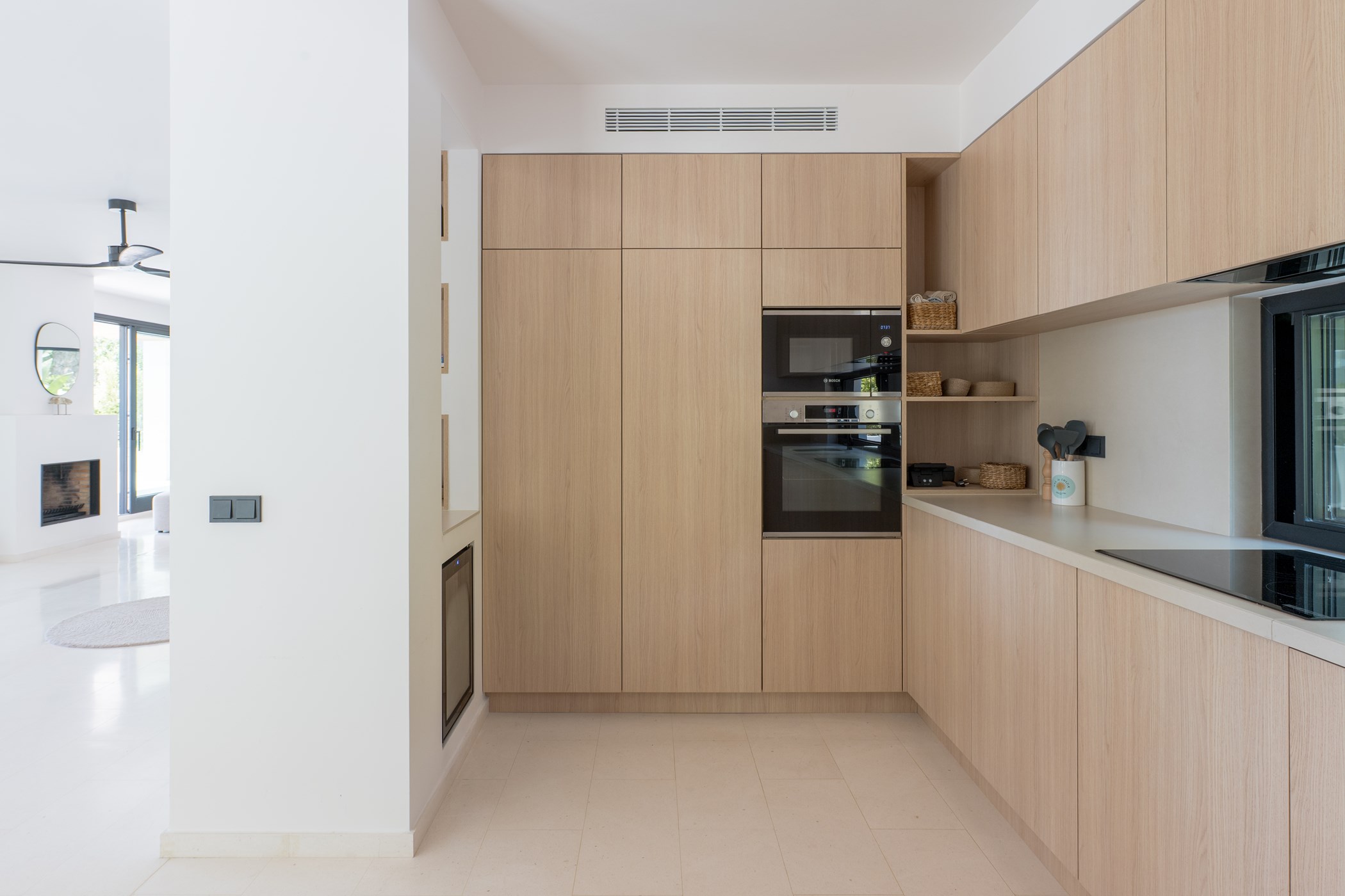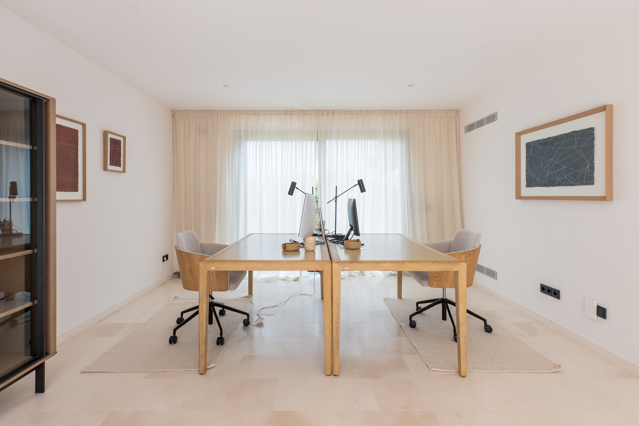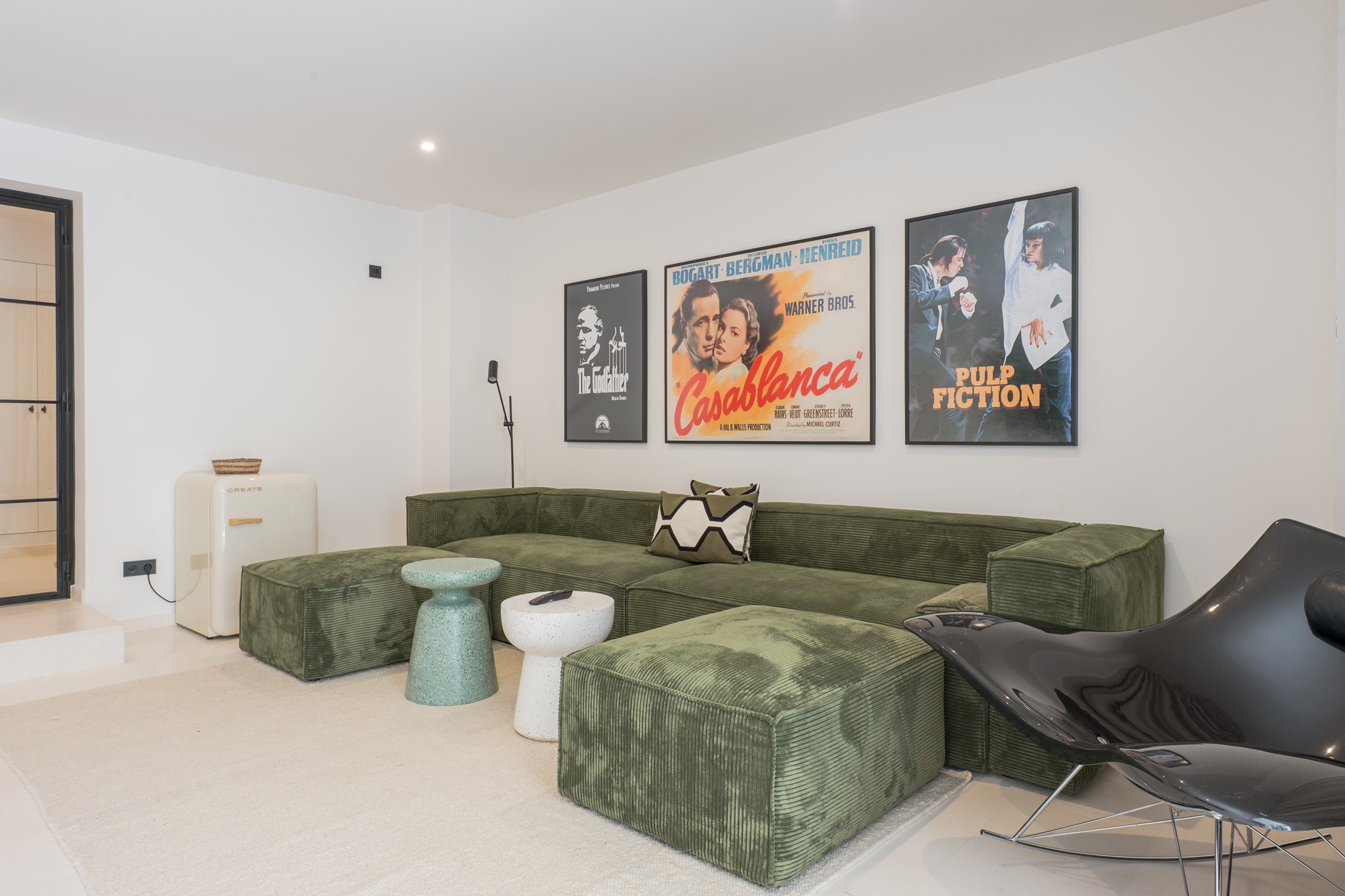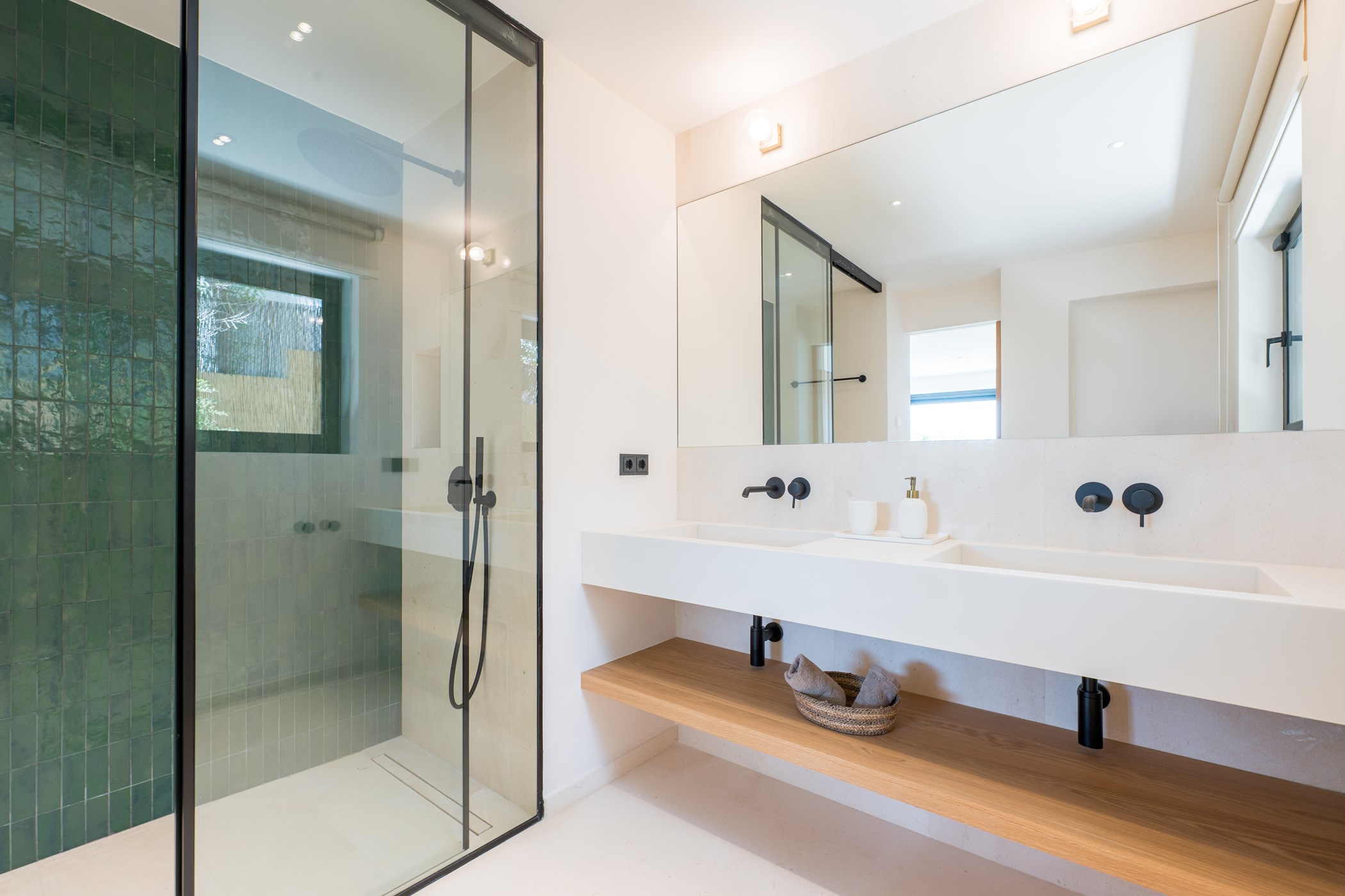 Among its distinguishing elements: a generous private pool at the centre of the grounds. The interiors are generous and well-proportioned, with neutral tones that allow the Mediterranean light to do the rest.