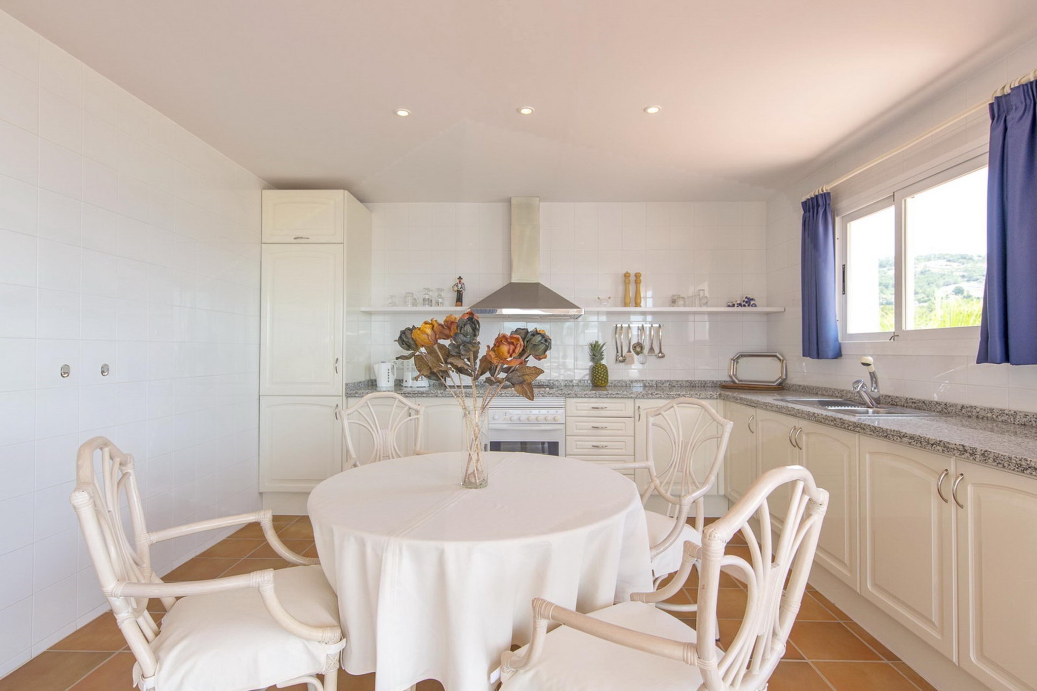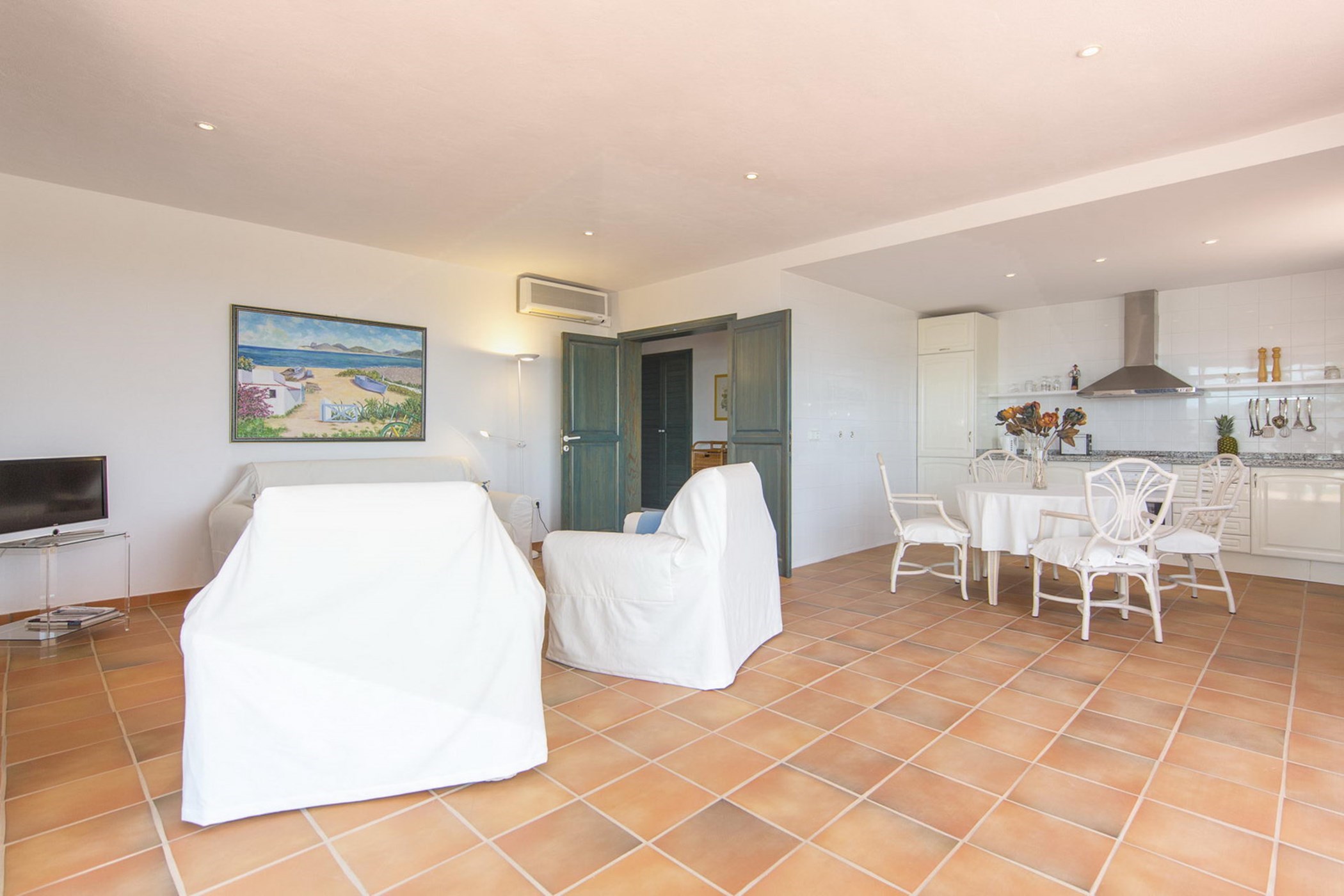 Among its distinguishing elements: a generous private pool at the centre of the grounds. The interiors are generous and well-proportioned, with neutral tones that allow the Mediterranean light to do the rest.