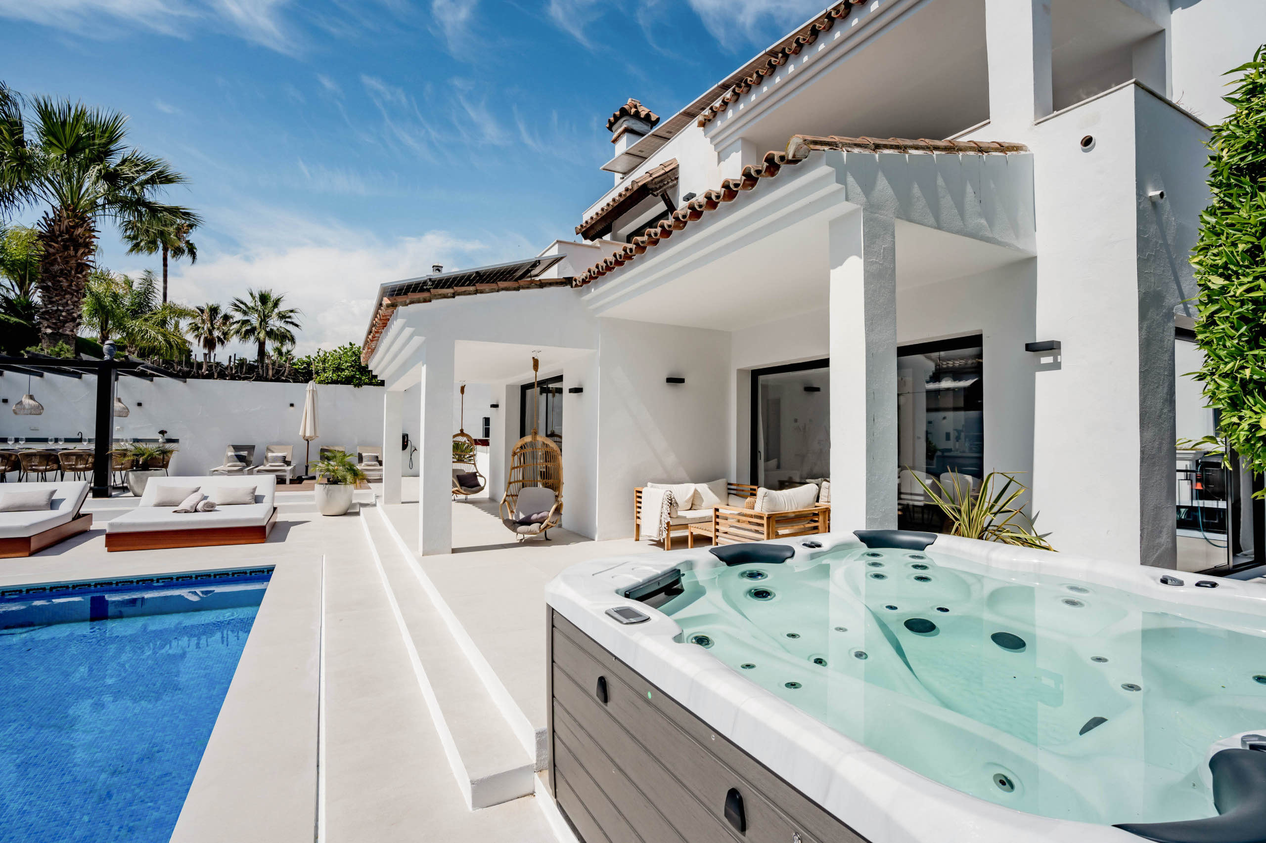 Set in the coveted corridor between Puerto Banús and San Pedro, Flor de Alba is an 8-bedroom retreat designed for families and groups seeking the perfect balance of togetherness and privacy. With vibrant interiors, seamless indoor-outdoor living, and two independent living areas, this home gracefully adapts to every rhythm of holiday life.