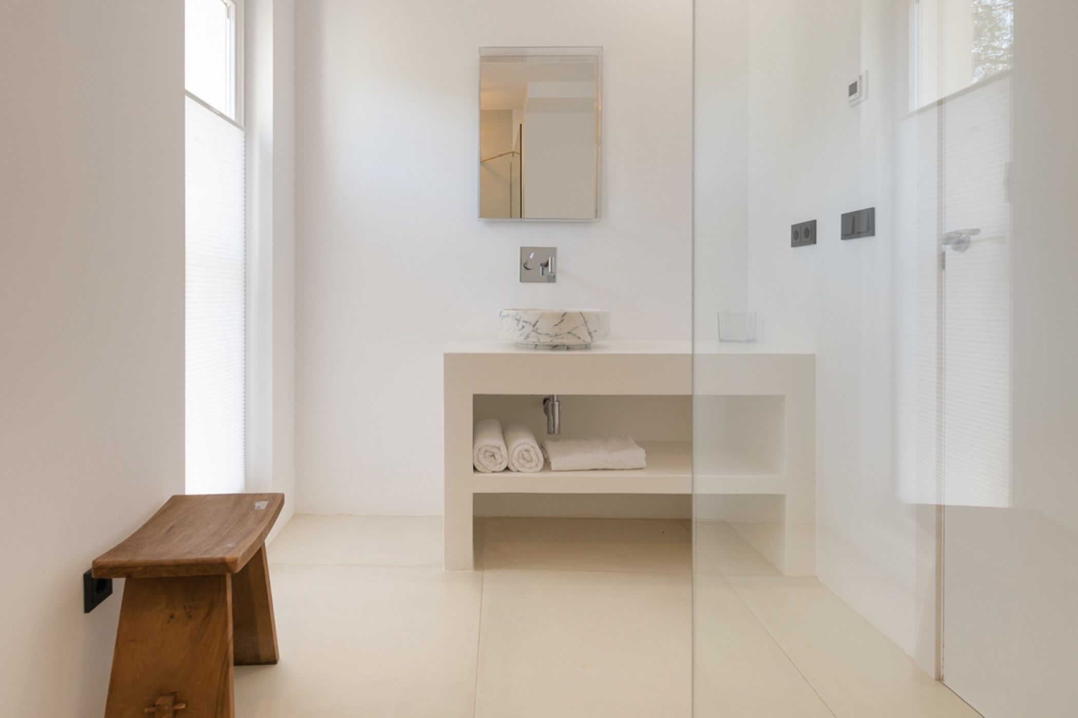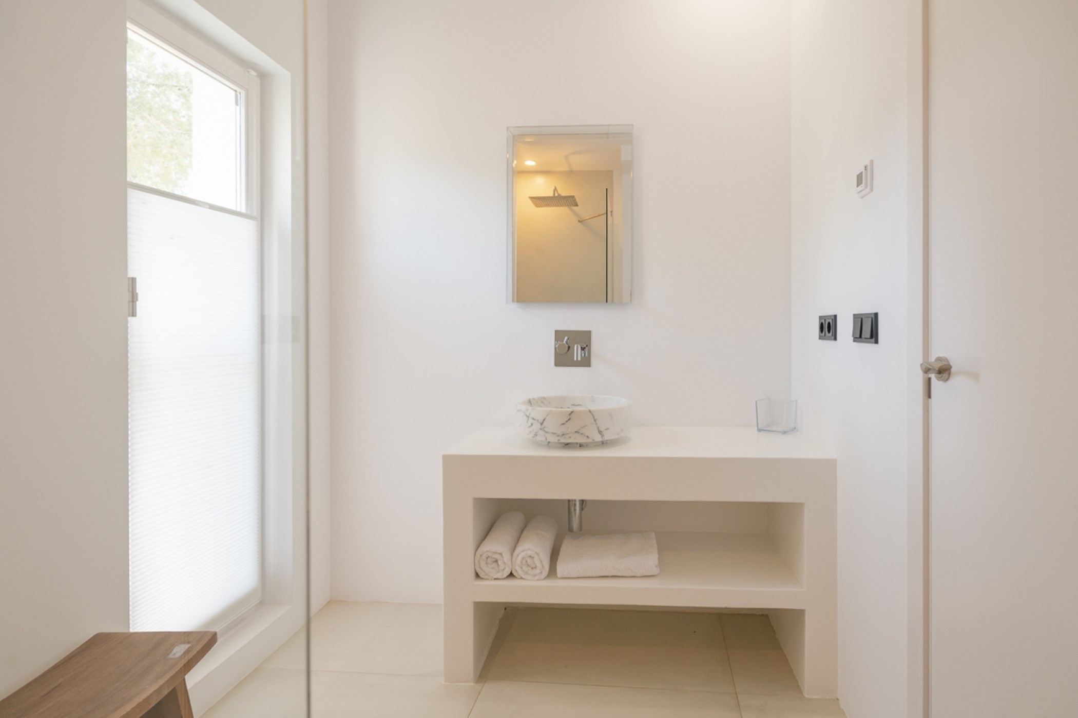 The villa accommodates up to 8 guests across 4 bedrooms and 4 bathrooms. All rooms are equipped with high-quality bedding, air conditioning, and ample storage.