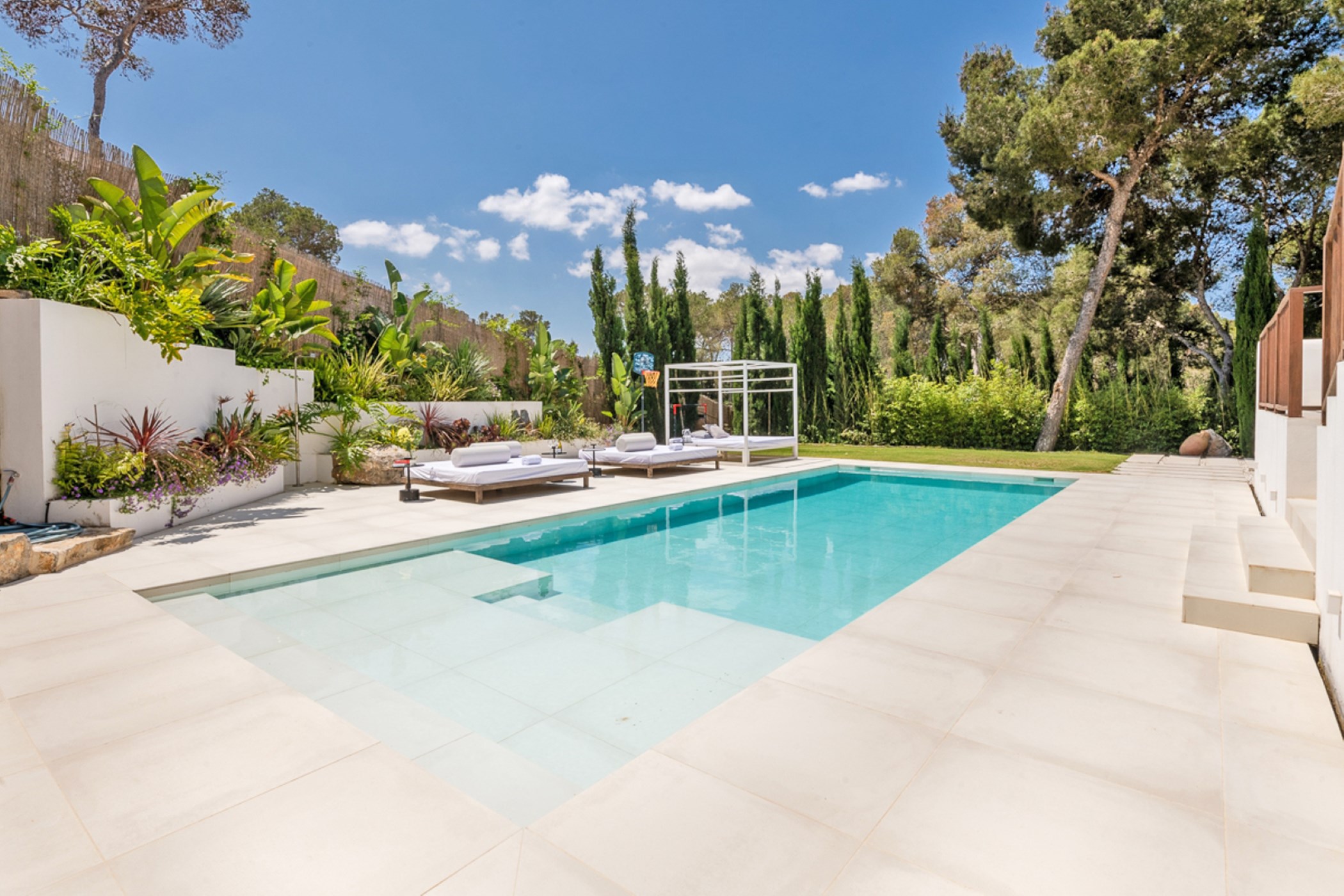 Jacaranda Luce reveals itself gradually — first the gardens, then the architecture, then the light. Set in Can Furnet, this 4-bedroom villa is a study in thoughtful design: every space earns its place, every material tells a story.