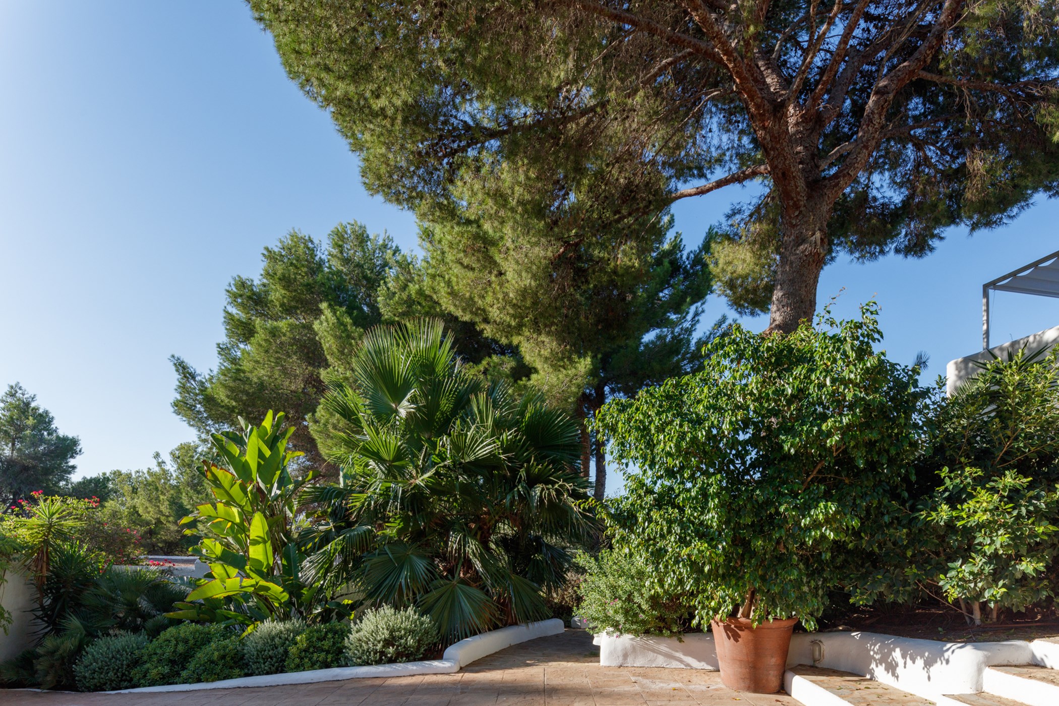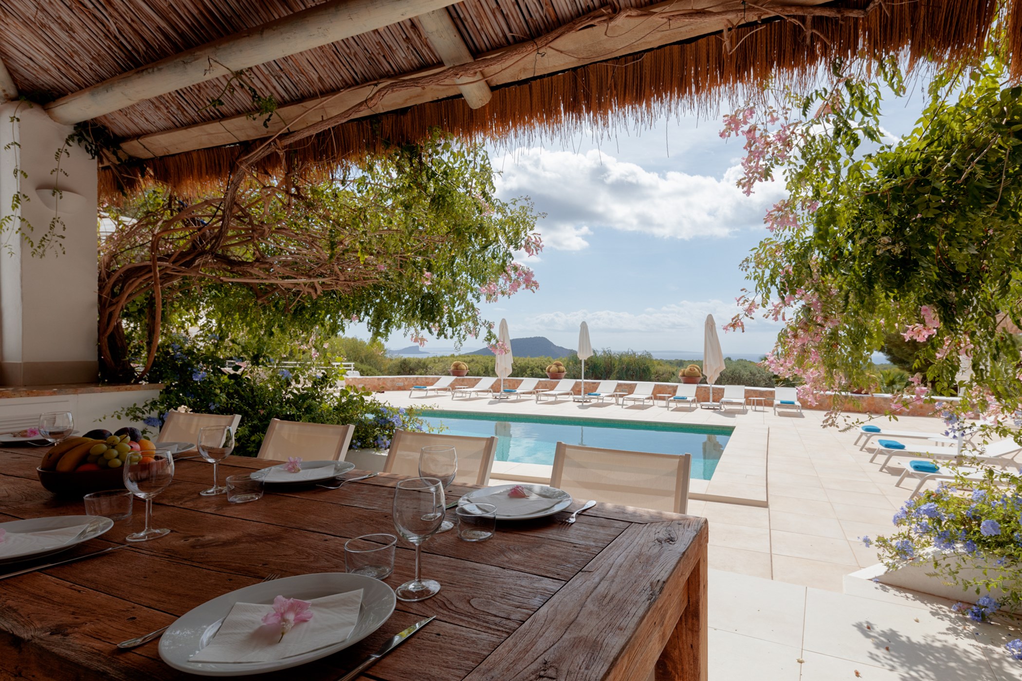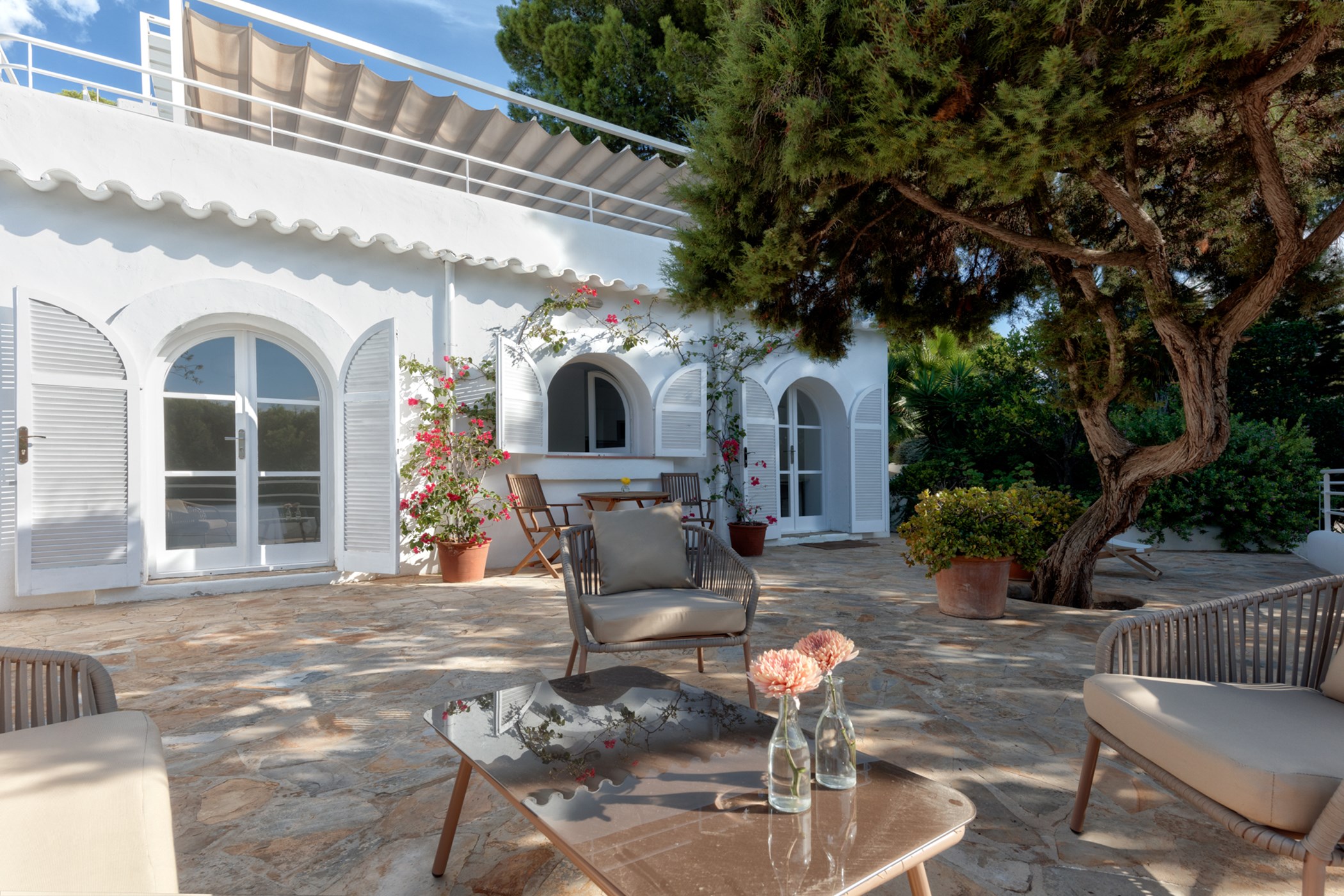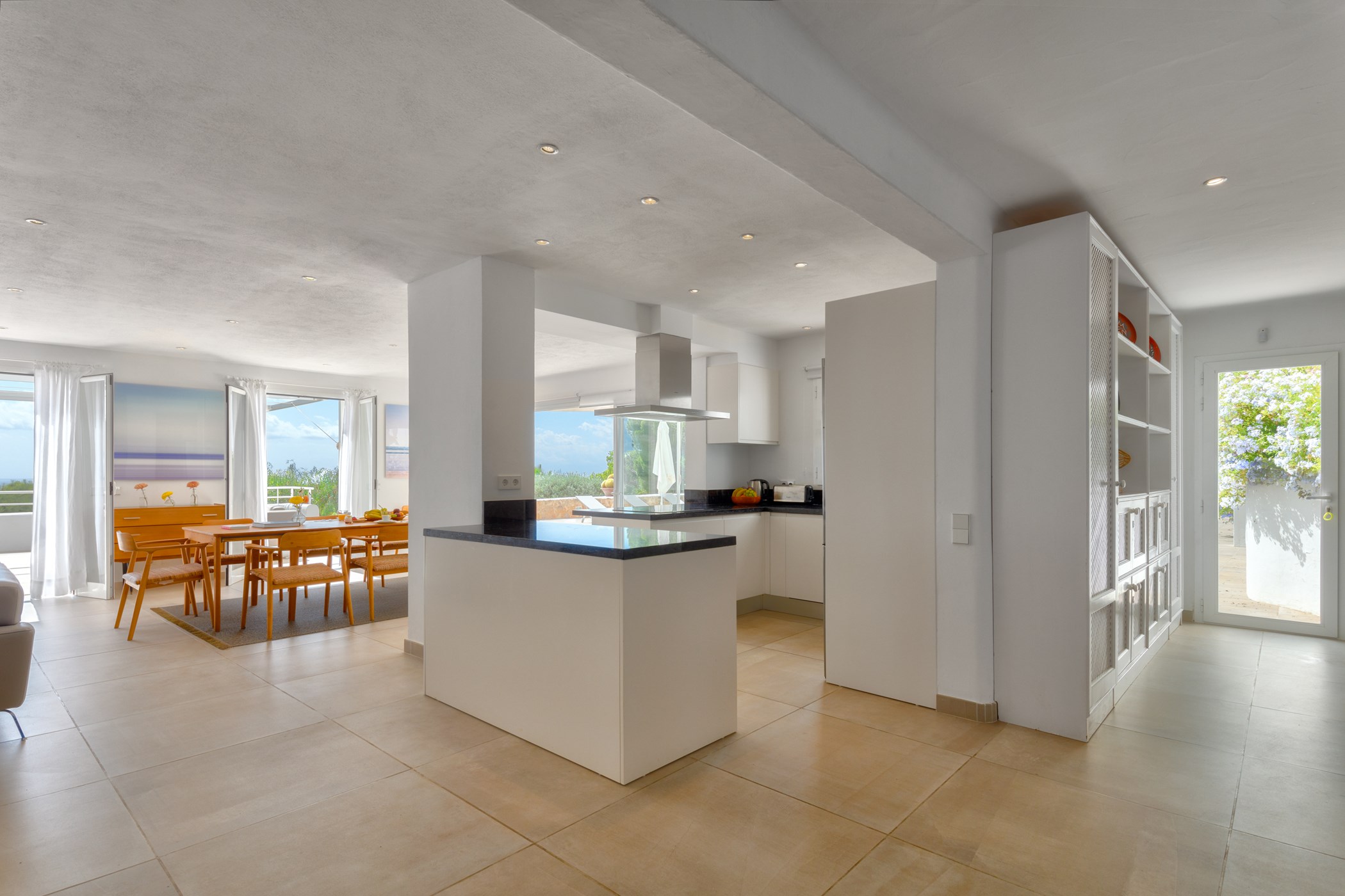 Juno Jardín looks out over the Mediterranean from its elevated position in Cala Jondal. This 5-bedroom villa captures the coastline in its entirety — a seascape that shifts in colour and mood from dawn to dusk.