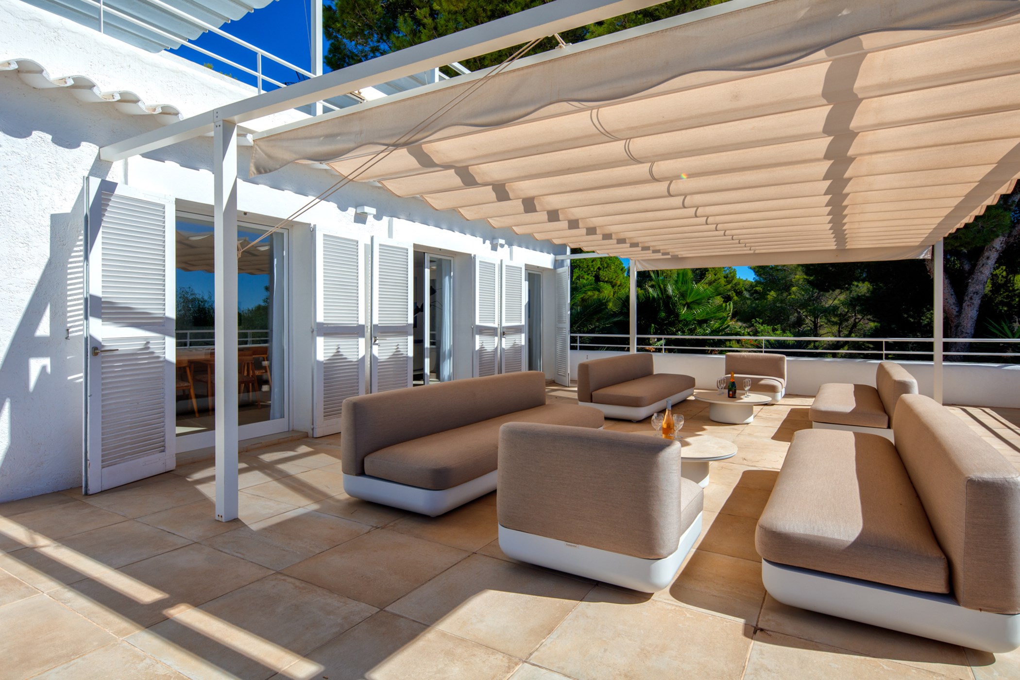 Located in Cala Jondal, San Jose de Sa Talaia. A hire car is recommended. Some of Ibiza’s most celebrated beaches are within minutes. Ibiza Airport: 15–30 minutes by car.