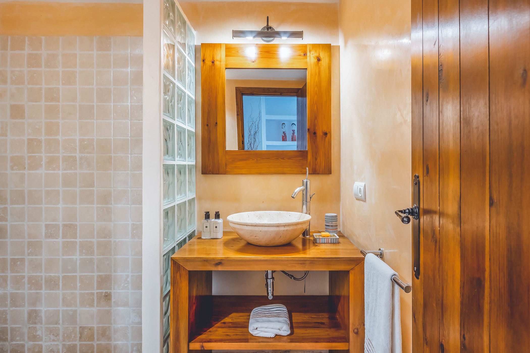 Five bedrooms accommodate up to ten guests. The villa has five bathrooms. Rooms are equipped with high-quality bedding, air conditioning, and ample storage. Most bedrooms are en-suite, and all benefit from natural light and considered design.