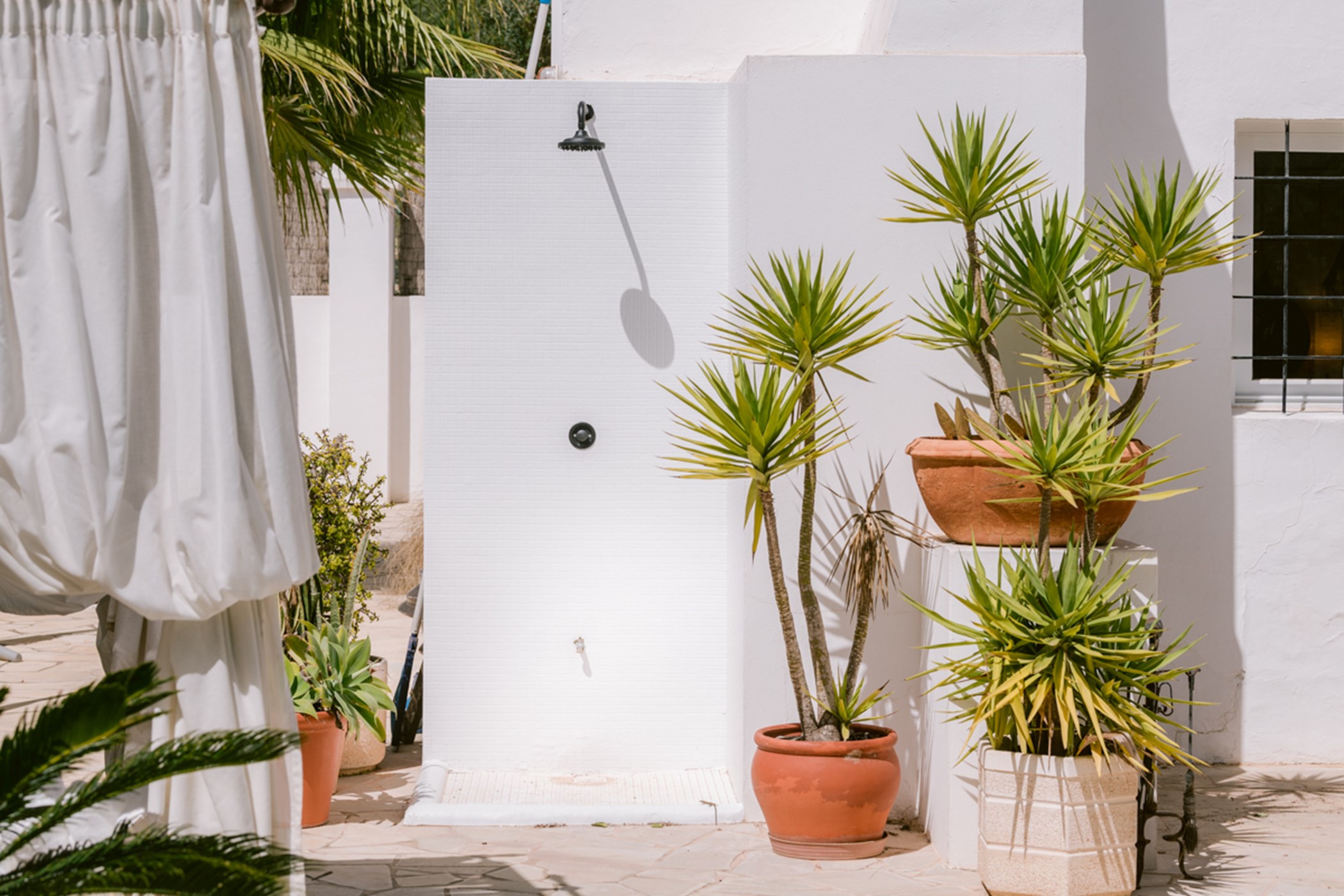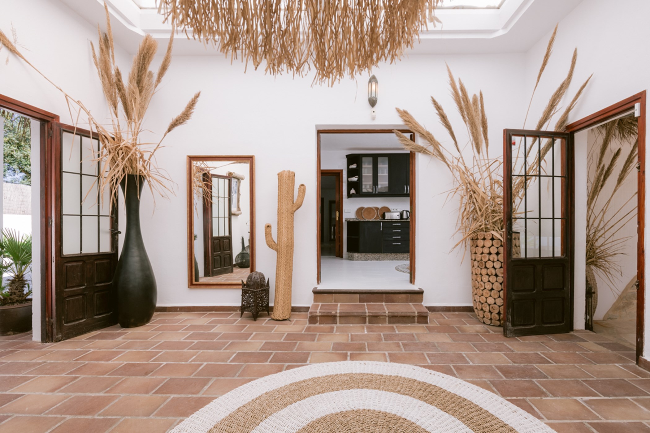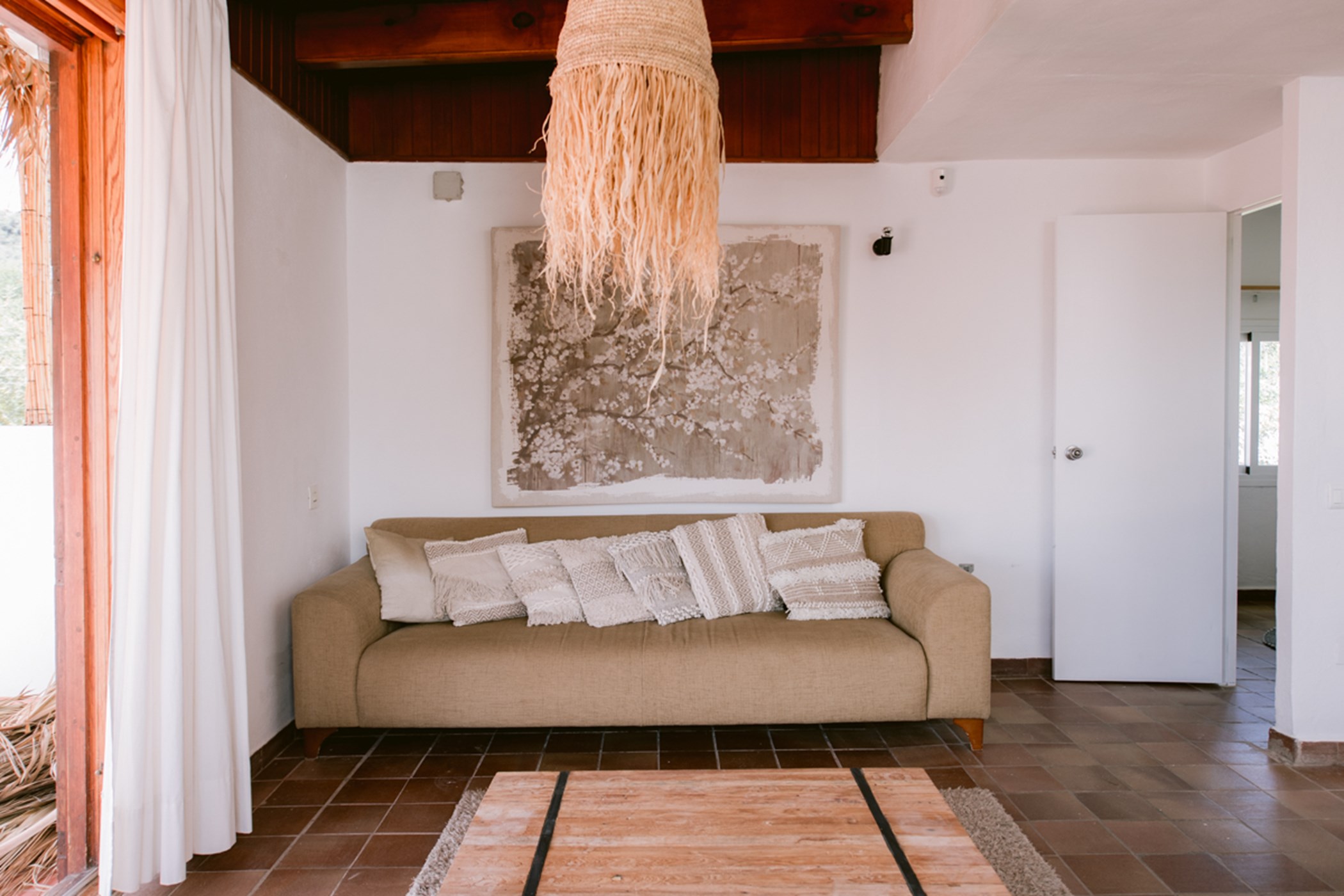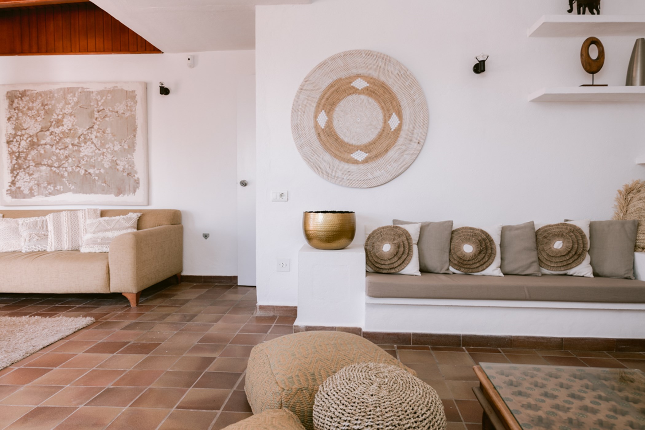 Among its distinguishing elements: a generous private pool at the centre of the grounds. The interiors are generous and well-proportioned, with neutral tones that allow the Mediterranean light to do the rest.