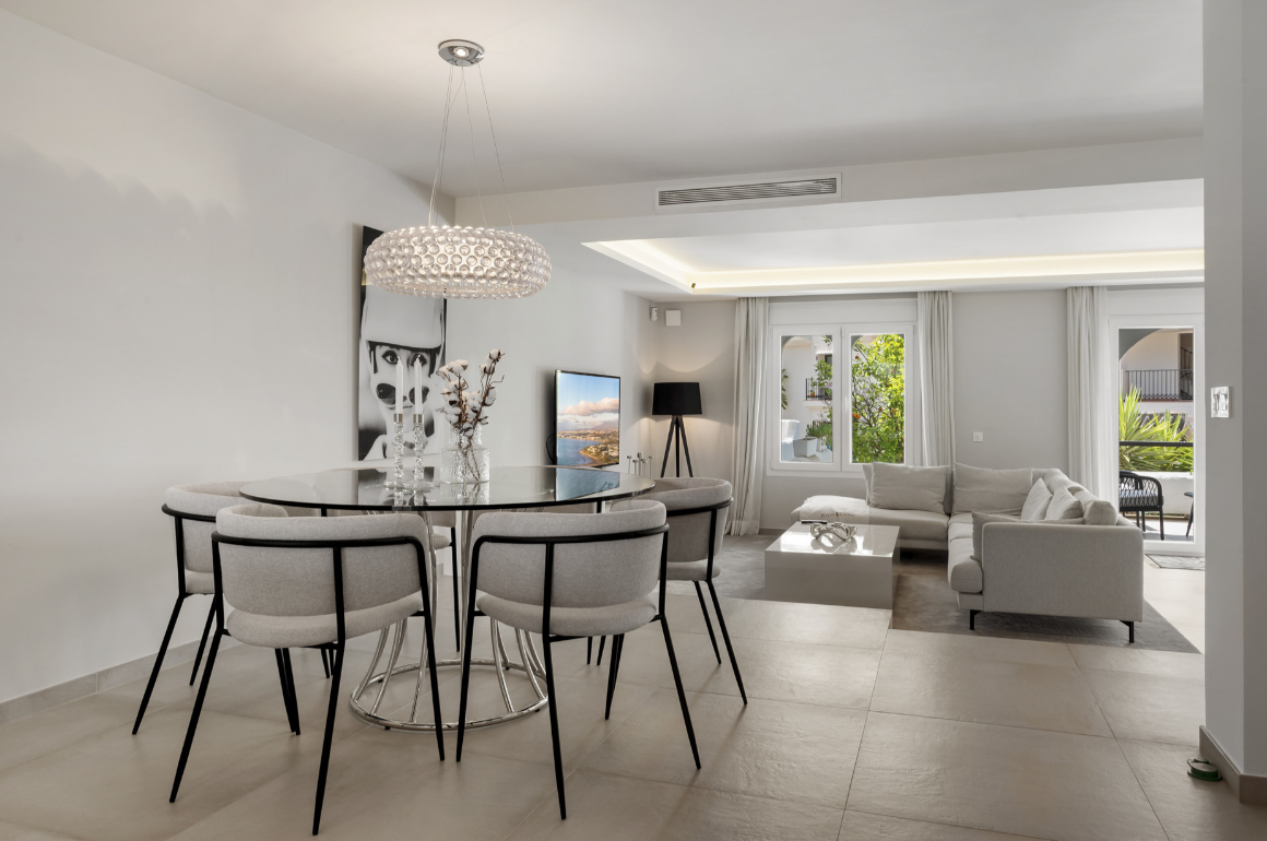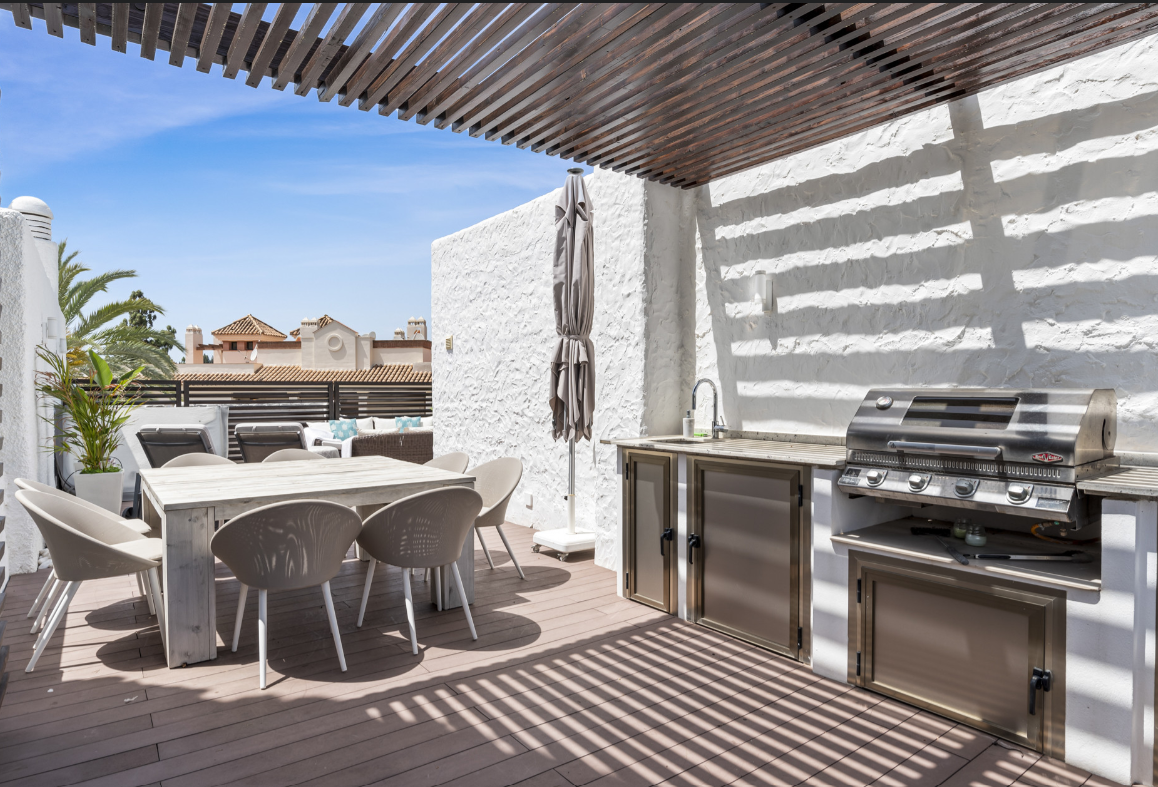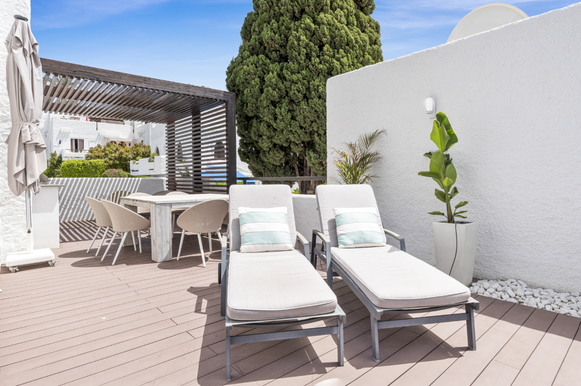 Welcome to Luna Morena, a spacious and tastefully decorated 3-bedroom, 3-bathroom townhouse set in the sought-after residential area of Nueva Andalucía. Blending traditional Andalusian character with modern comforts, this multi-level home is a perfect fit for families or groups seeking a stylish yet practical holiday base on Marbella. Tucked within a quiet neighbourhood yet close to golf, restaurants, and all the action of Puerto Banús and Marbella, Luna Morena offers the ideal balance of privacy and proximity.