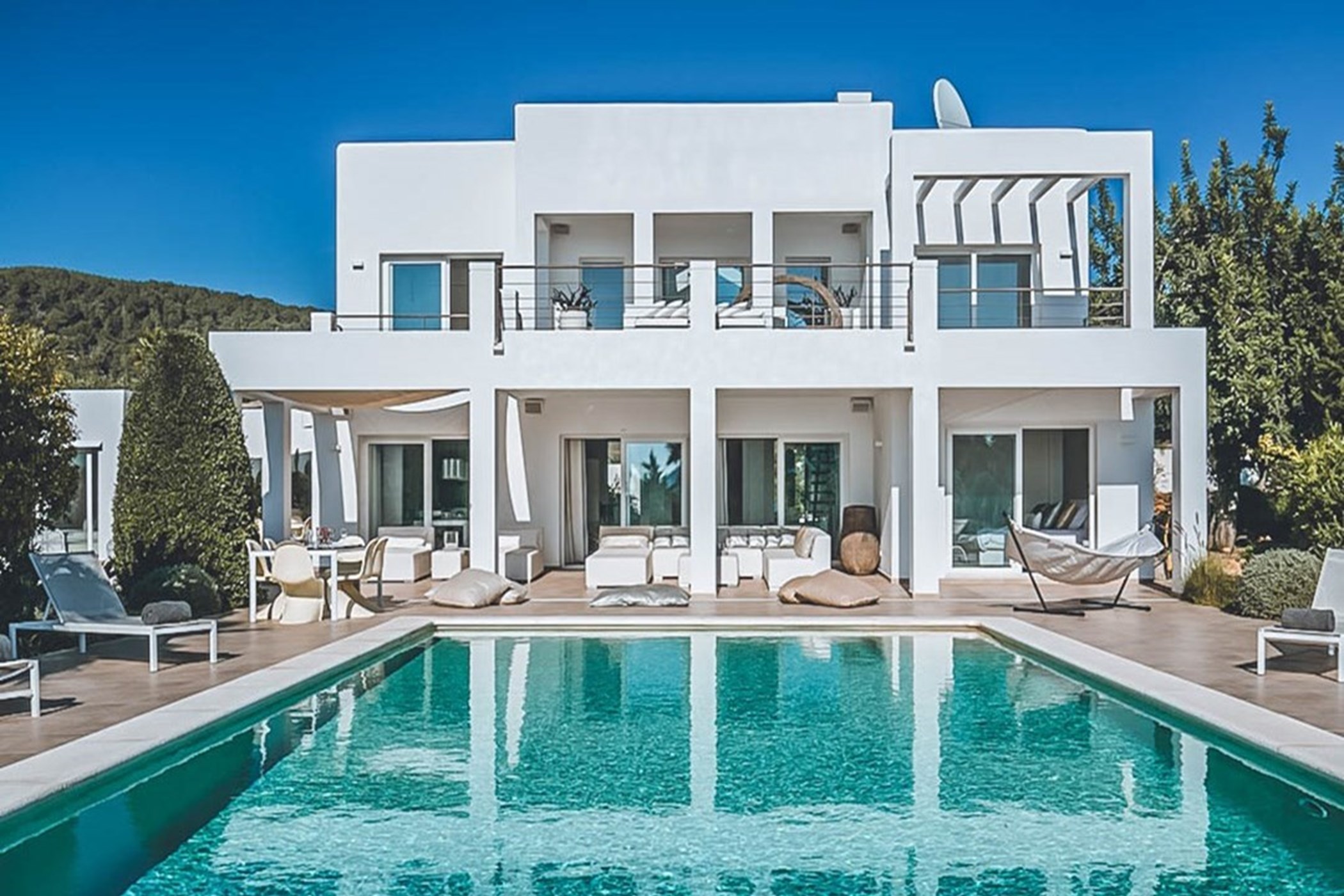 Located in Cala Jondal, San Jose de Sa Talaia. A hire car is recommended. Some of Ibiza’s most celebrated beaches are within minutes. Ibiza Airport: 15–30 minutes by car.