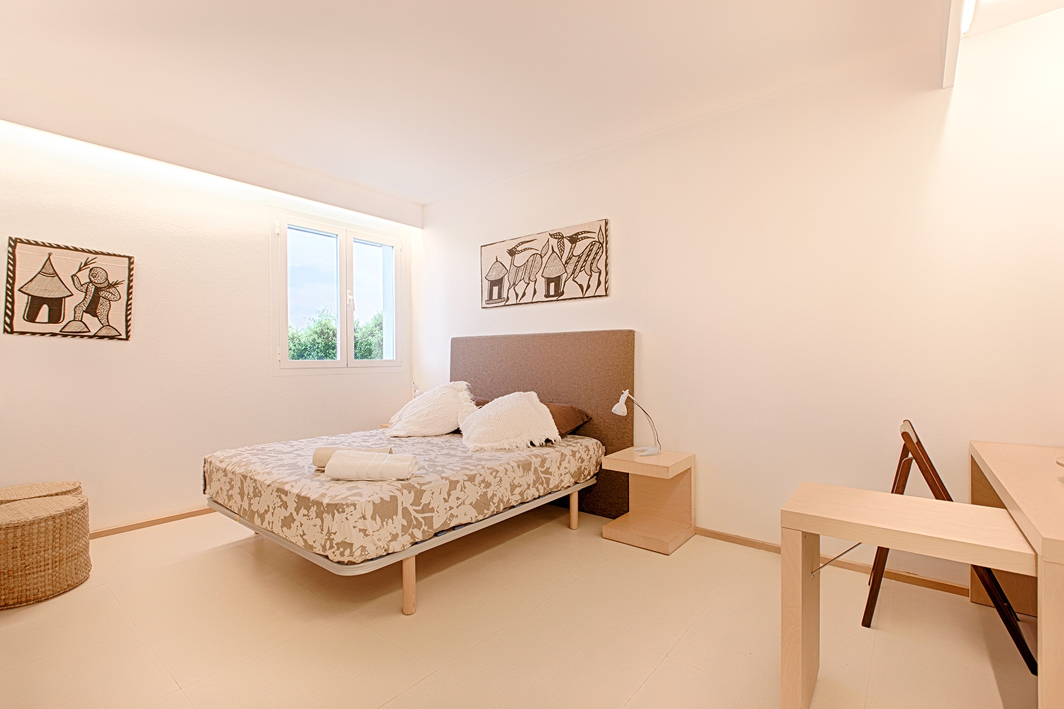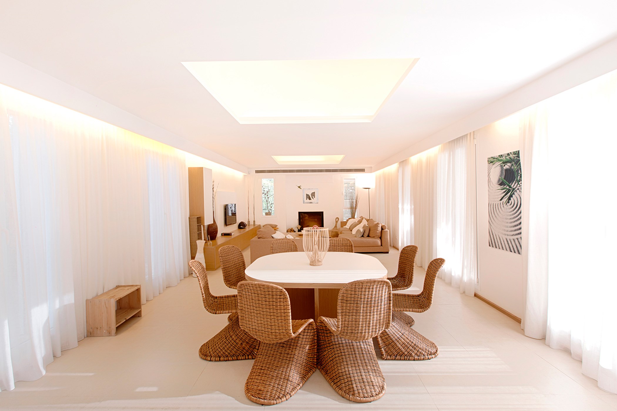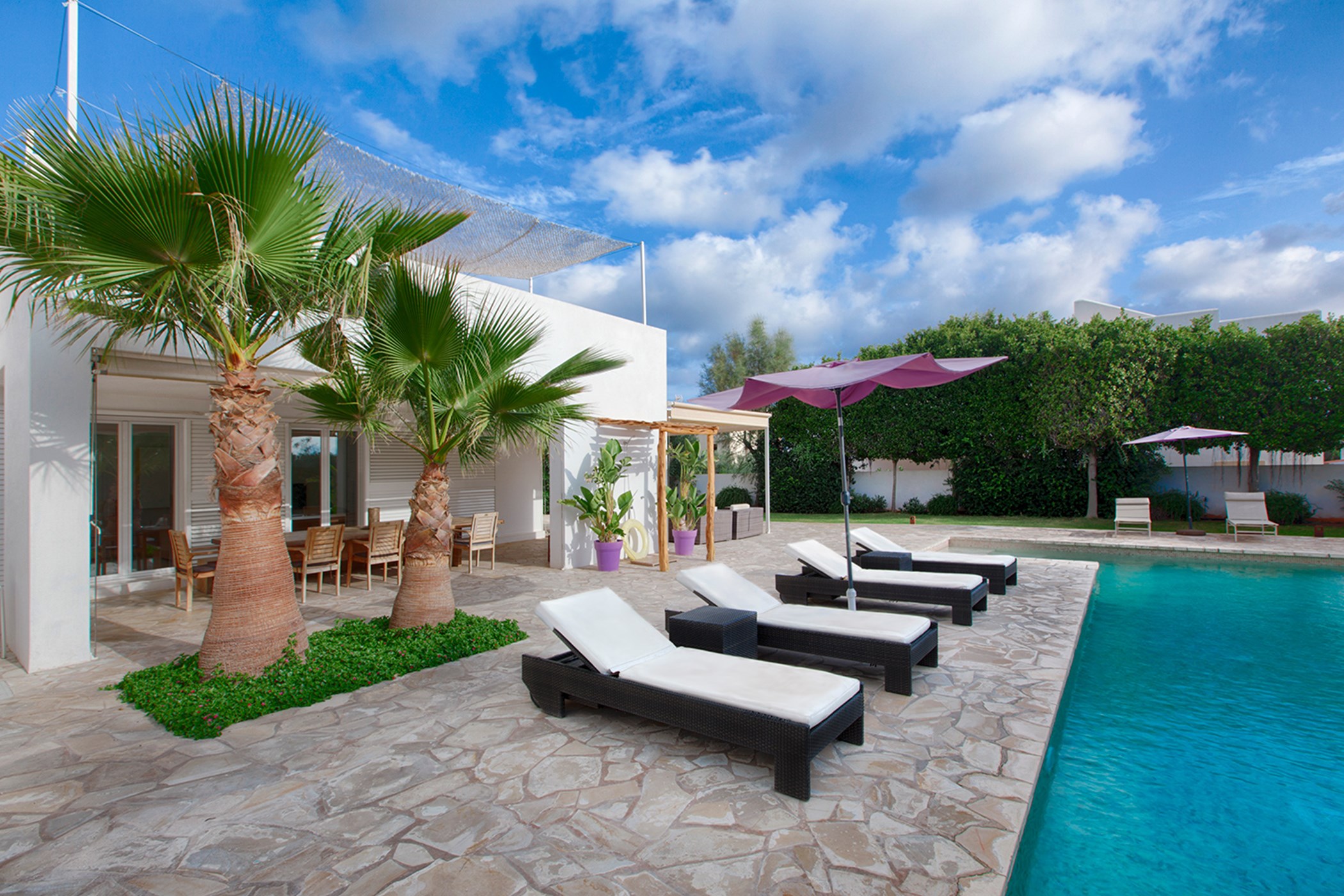 Among its distinguishing elements: a generous private pool at the centre of the grounds. The interiors are generous and well-proportioned, with neutral tones that allow the Mediterranean light to do the rest.
