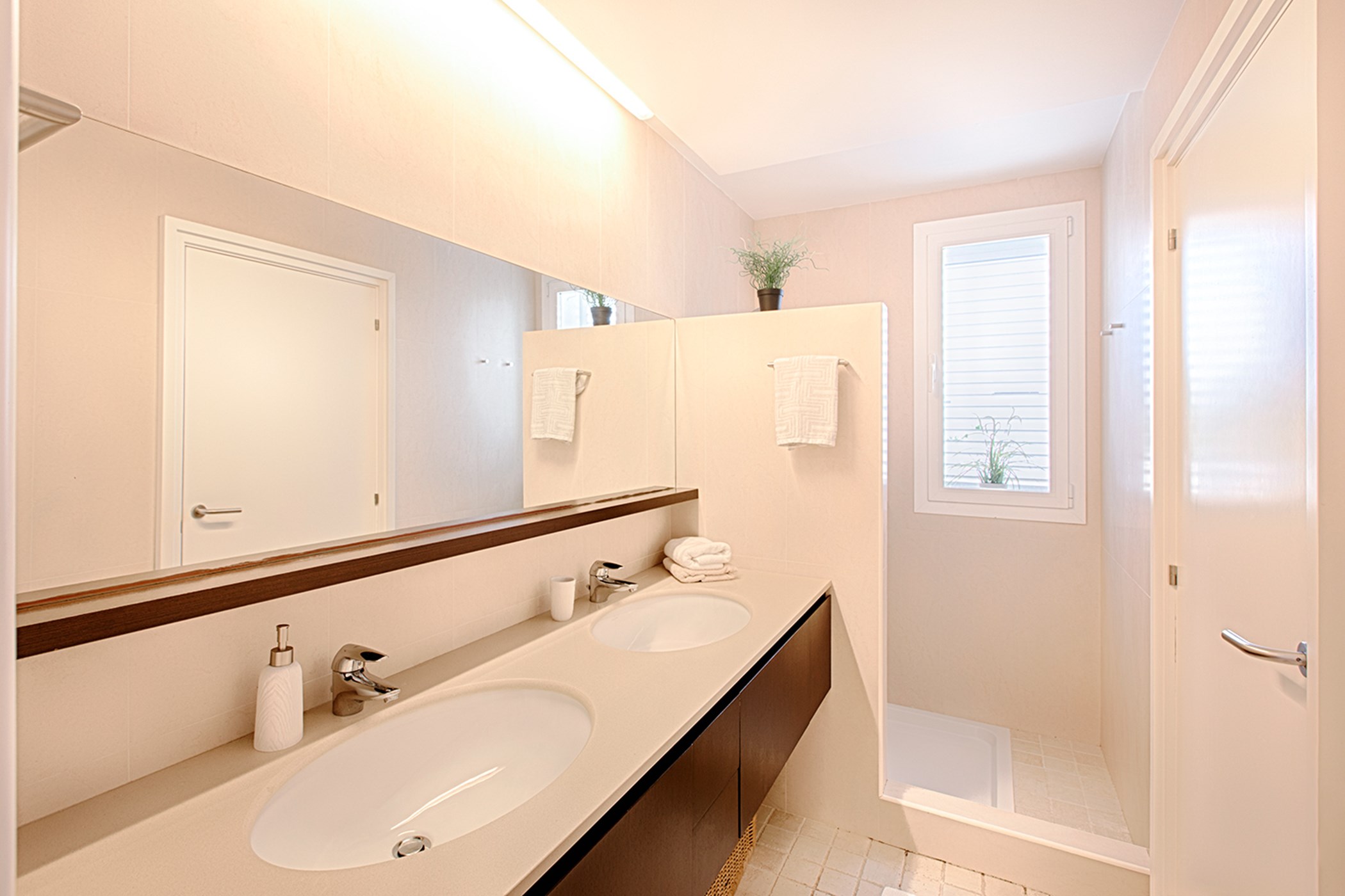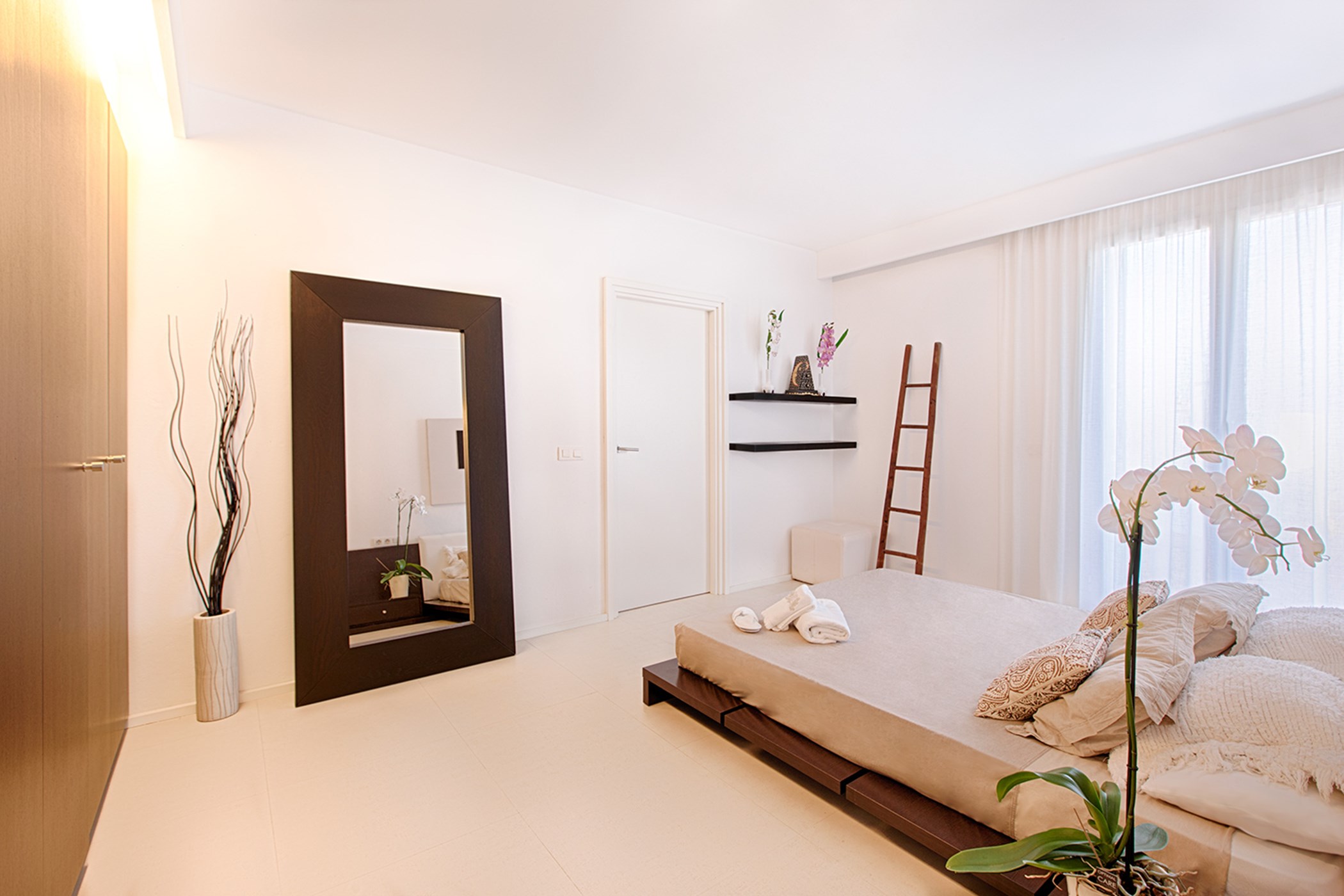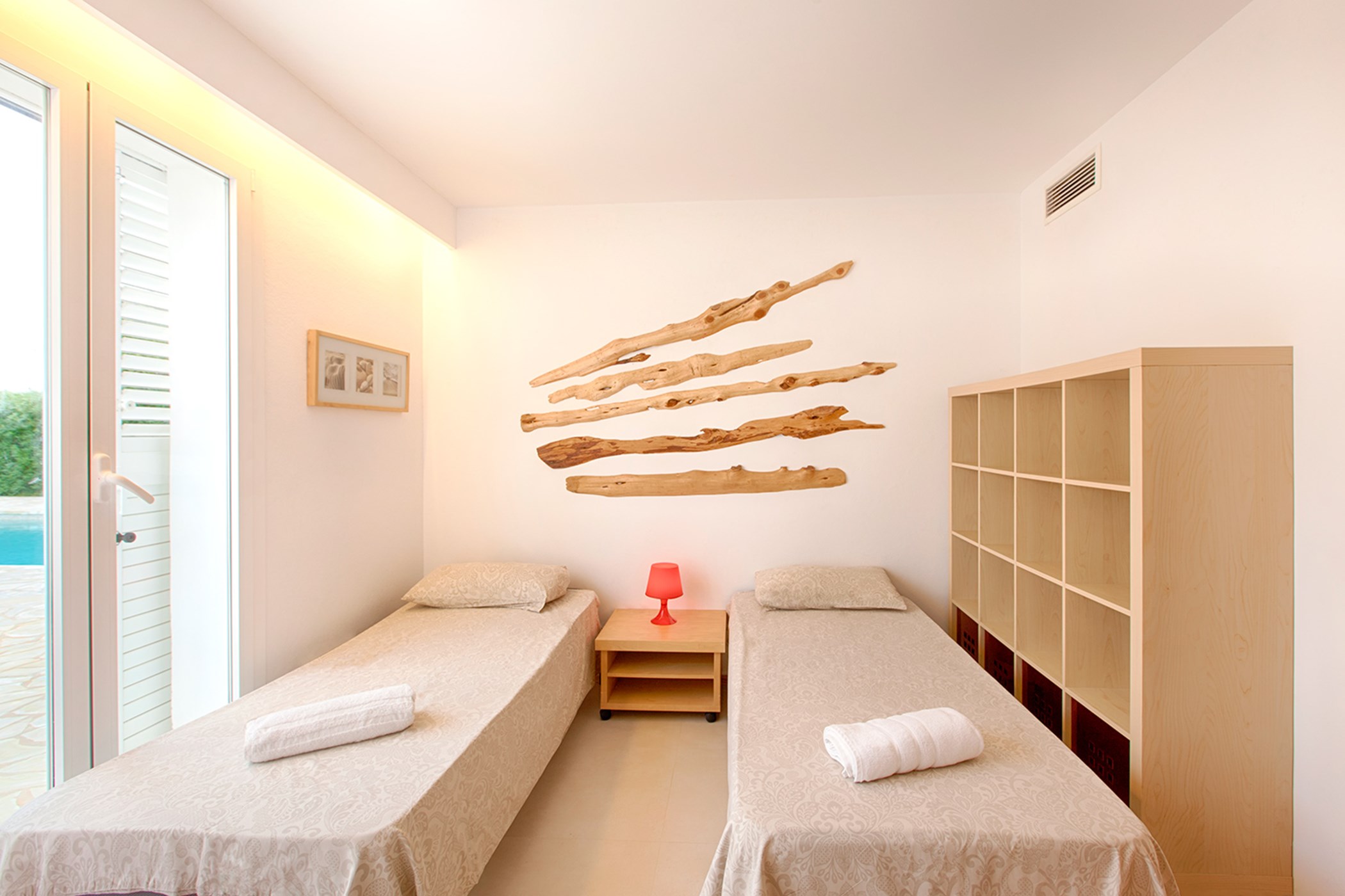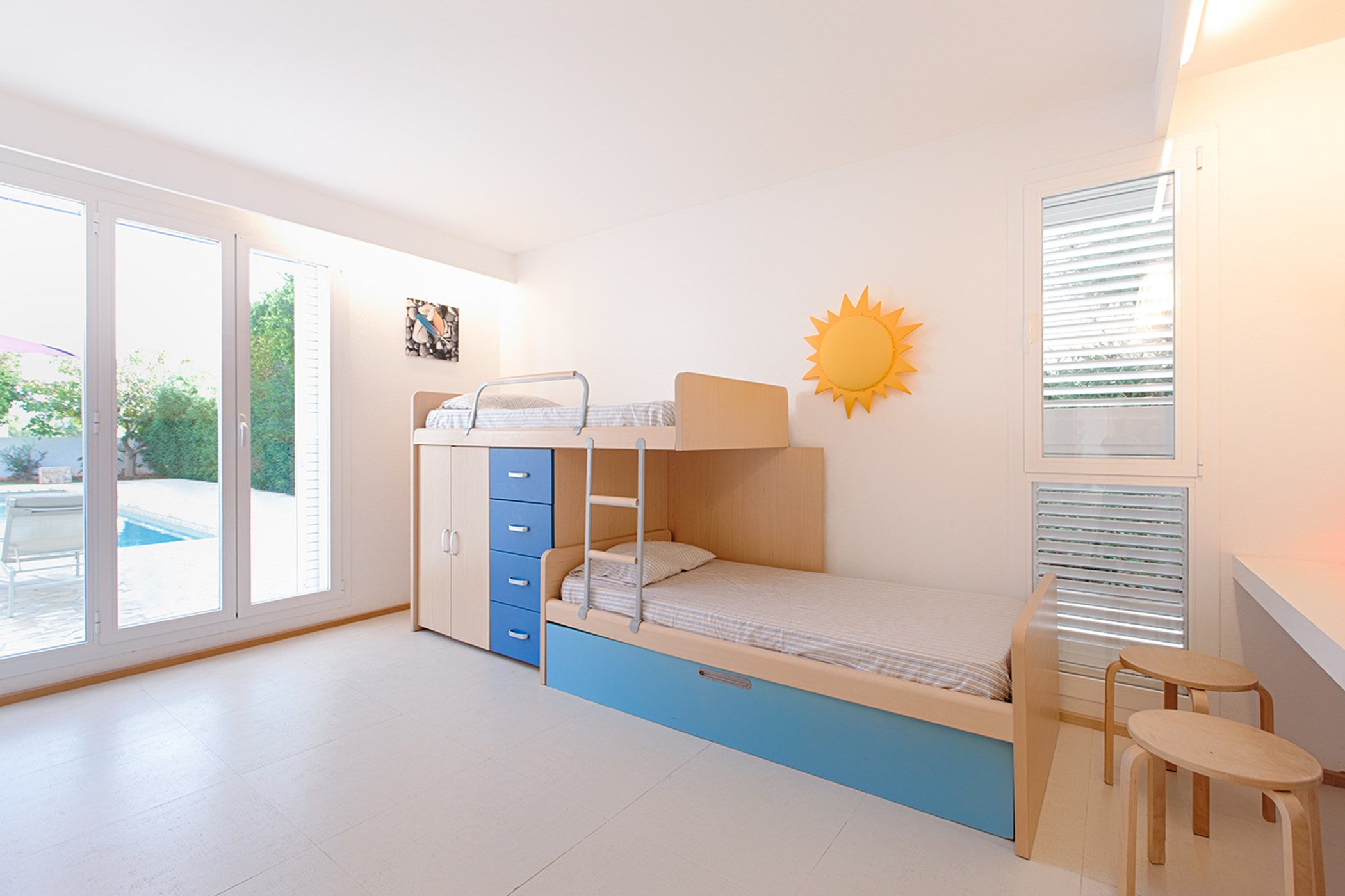 Among its distinguishing elements: a generous private pool at the centre of the grounds. The interiors are generous and well-proportioned, with neutral tones that allow the Mediterranean light to do the rest.