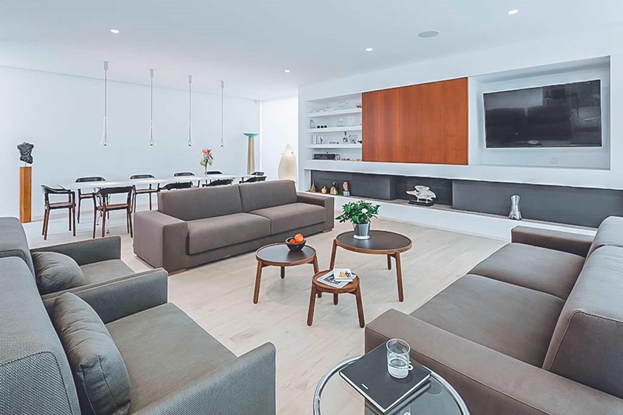 The infinity pool commands the outdoor space, its vanishing edge drawing the eye to the horizon beyond. The barbecue and al fresco dining area invite long outdoor meals. A fully equipped outdoor kitchen extends the living space into the open air.