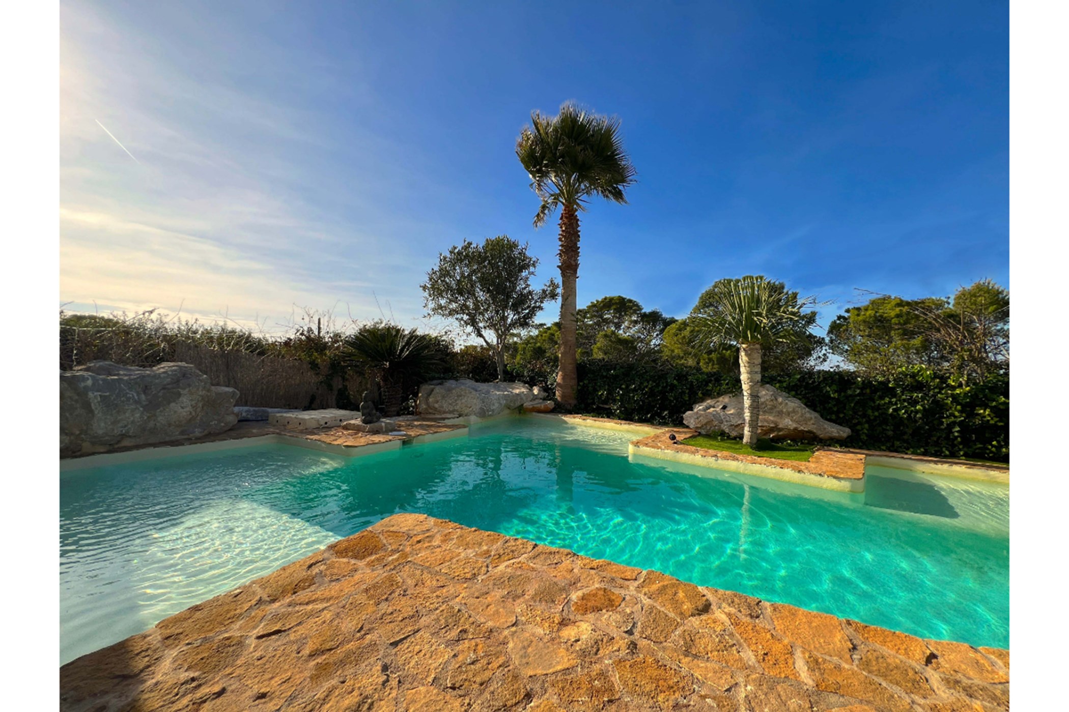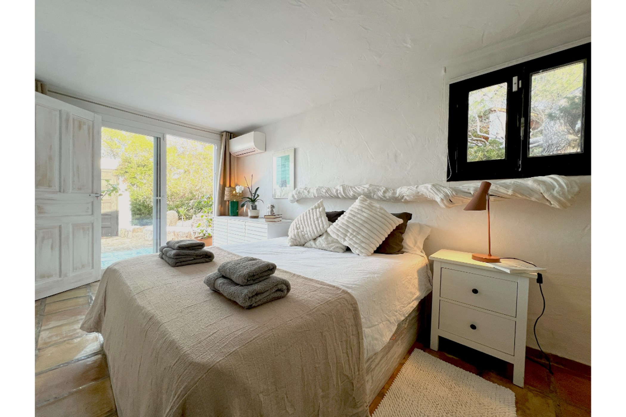 Among its distinguishing elements: a generous private pool at the centre of the grounds. The interiors are generous and well-proportioned, with neutral tones that allow the Mediterranean light to do the rest.