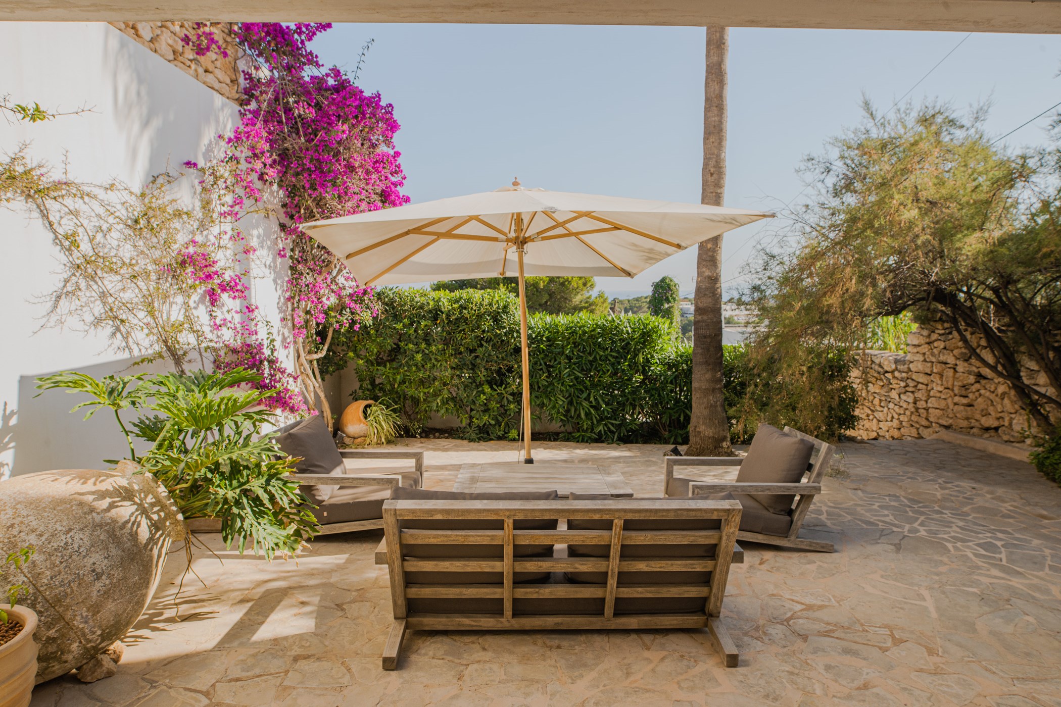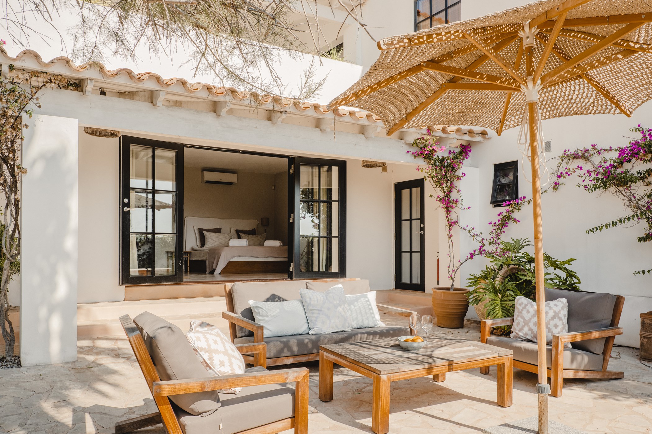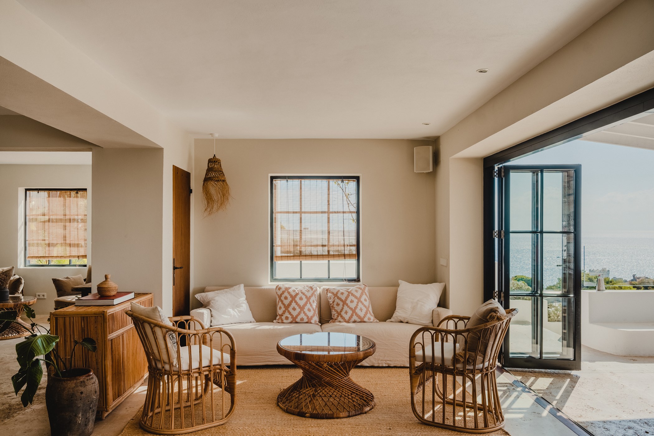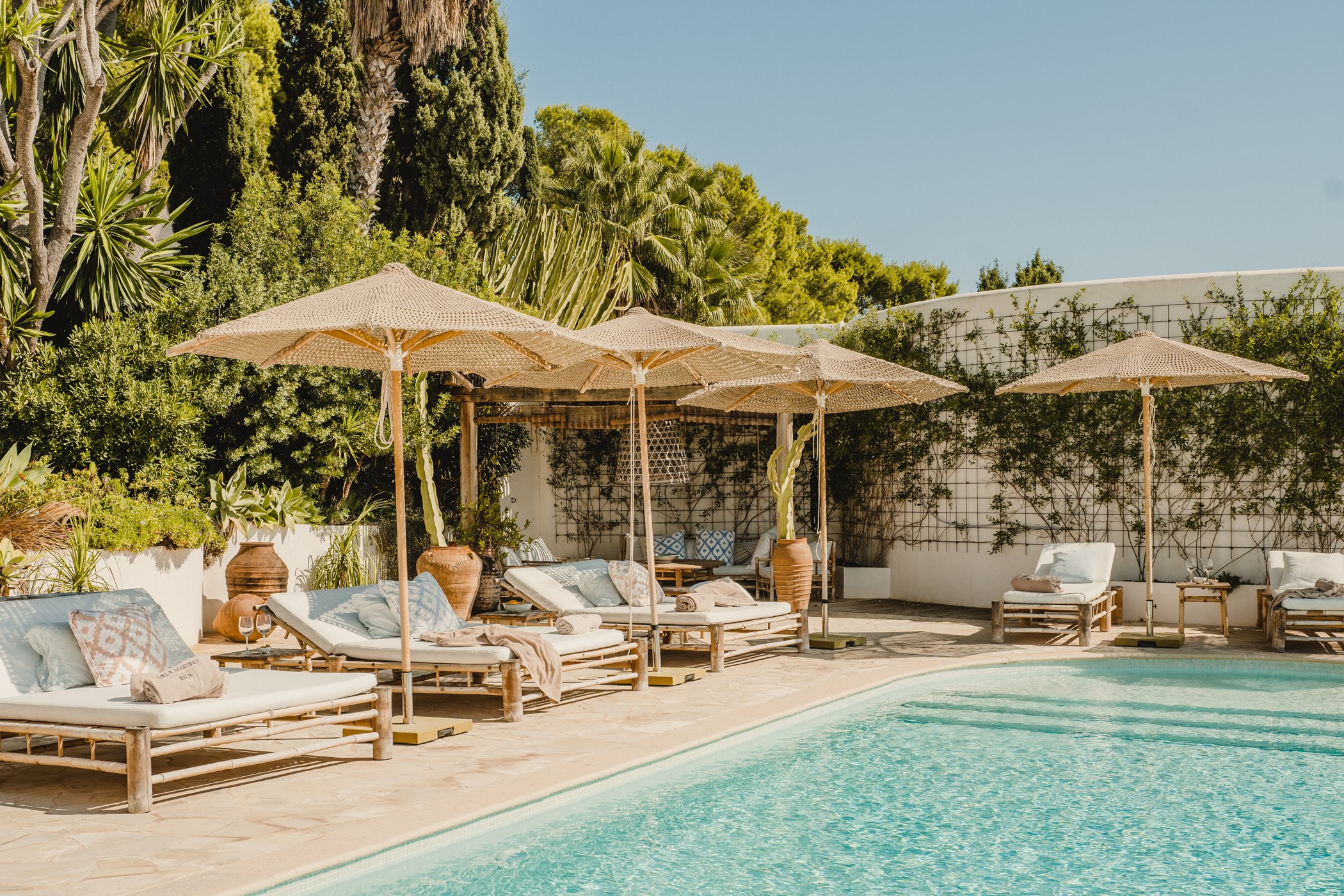 Located in Cap Martinet, Ibiza. A hire car is recommended. Ibiza Town, with its UNESCO-listed Dalt Vila, marina, and dining scene, is moments away. Ibiza Airport: 15–30 minutes by car.