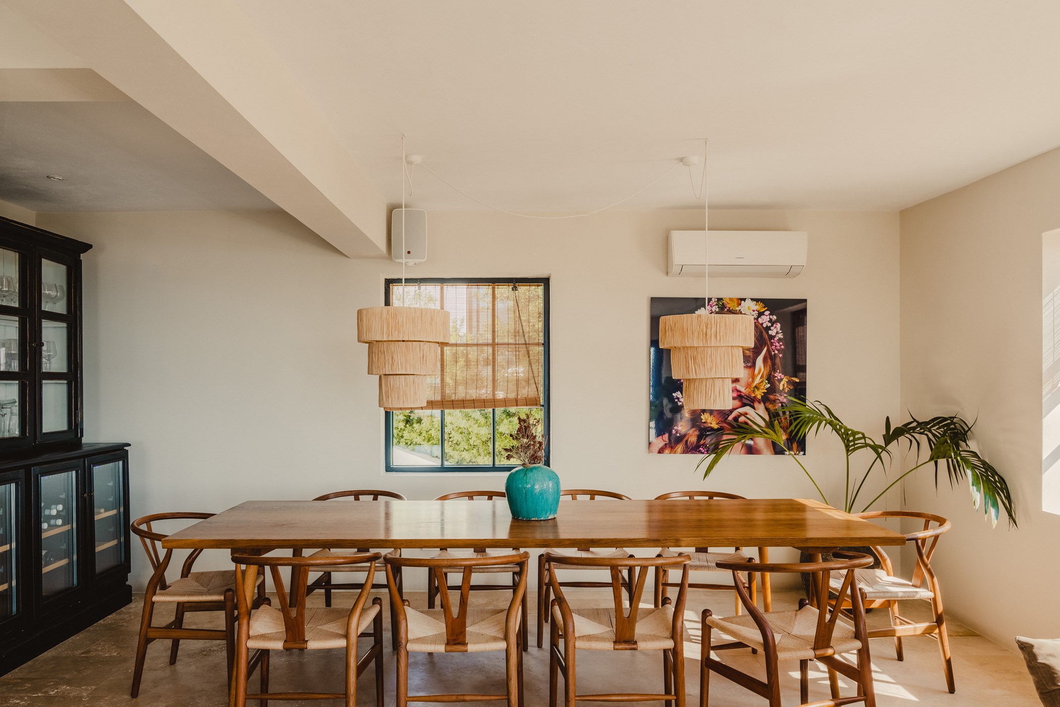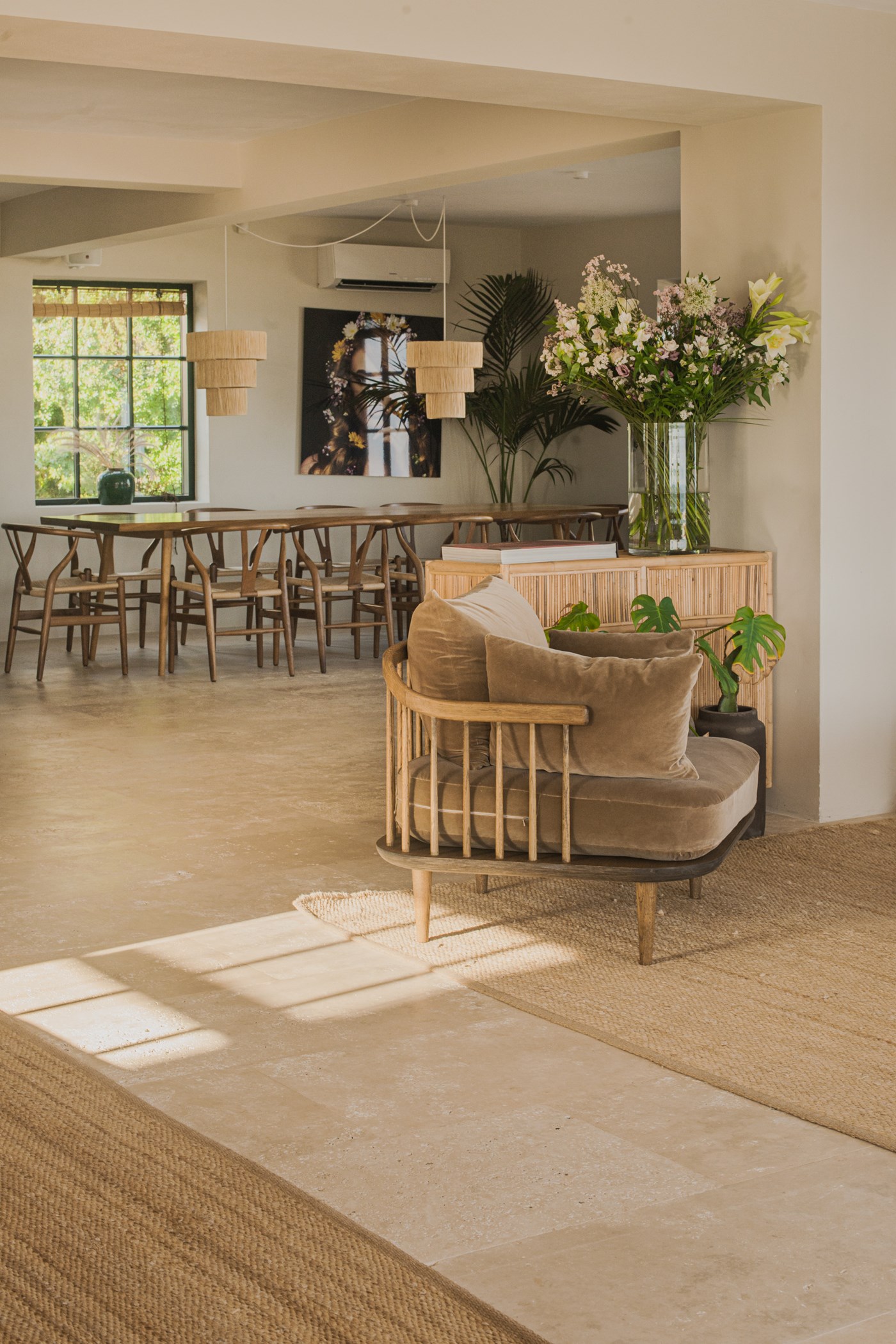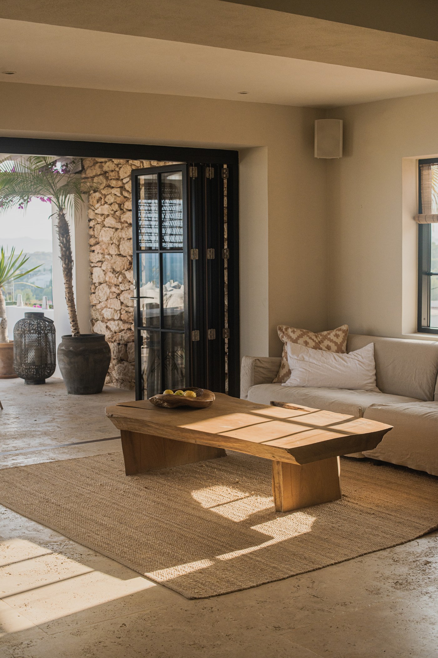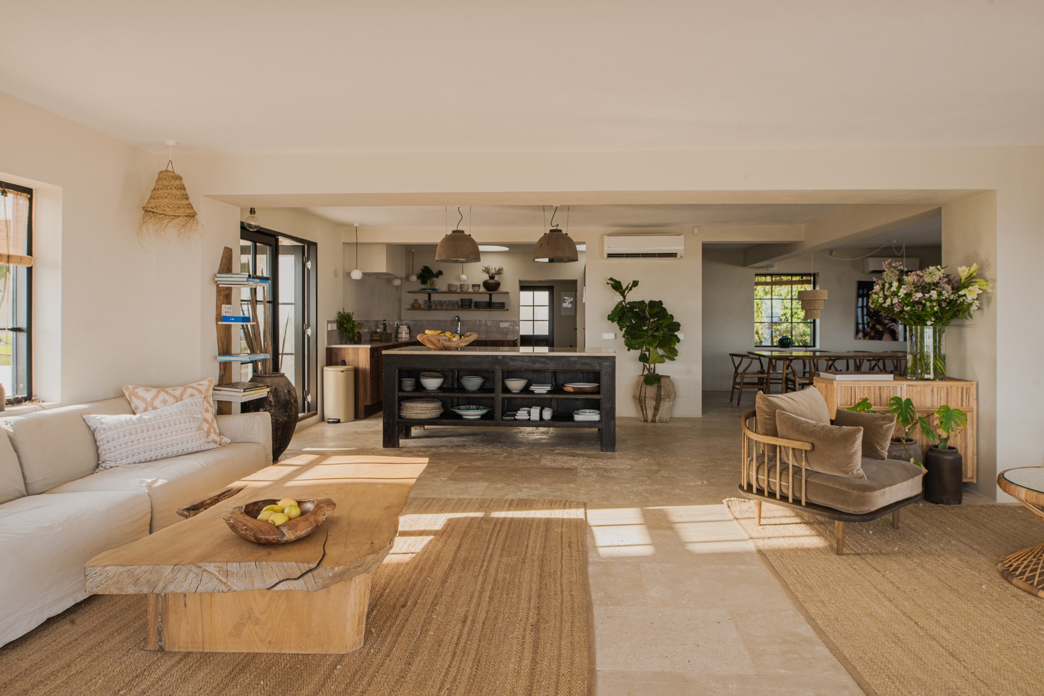 Among its distinguishing elements: a generous private pool at the centre of the grounds. The interiors are generous and well-proportioned, with neutral tones that allow the Mediterranean light to do the rest.