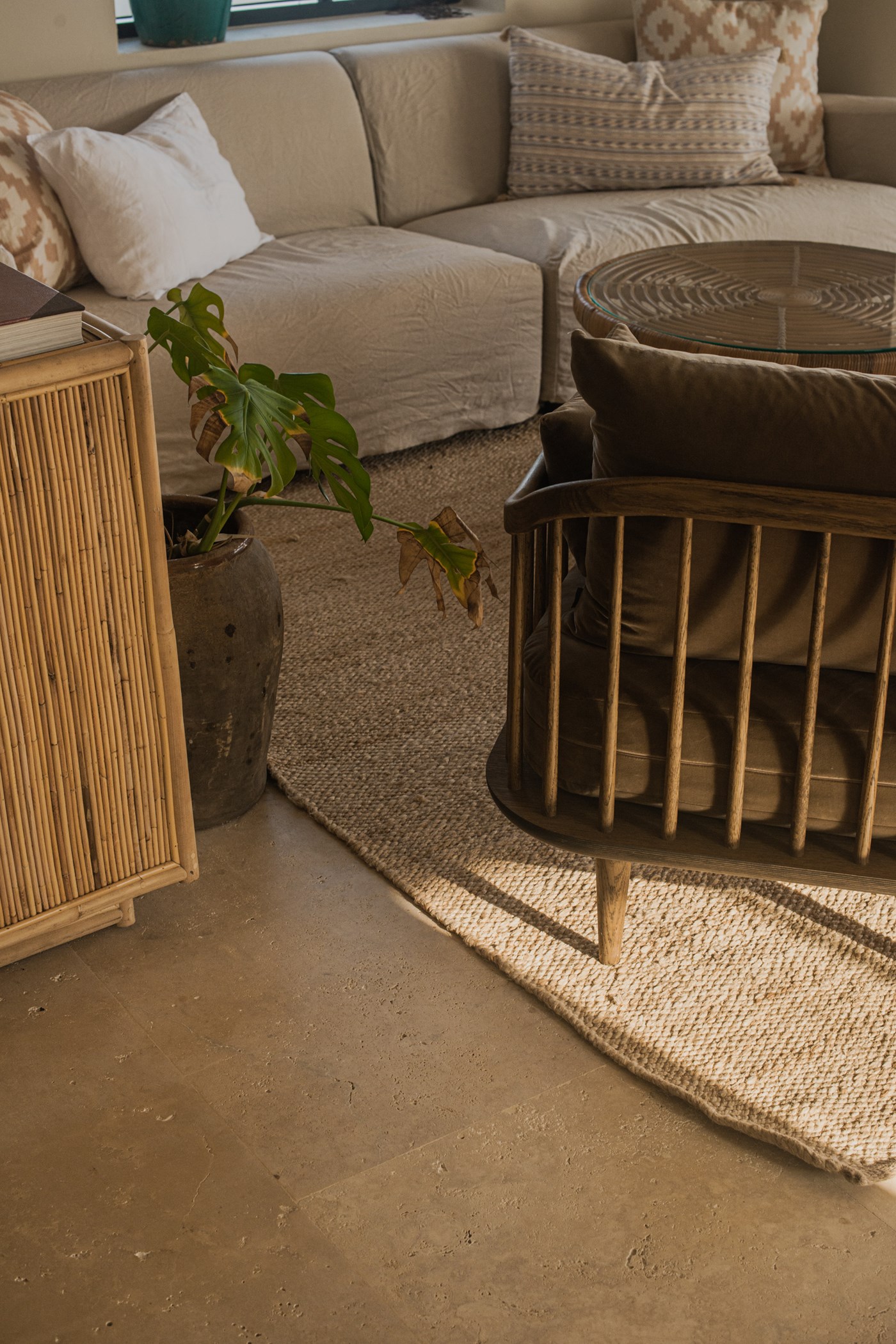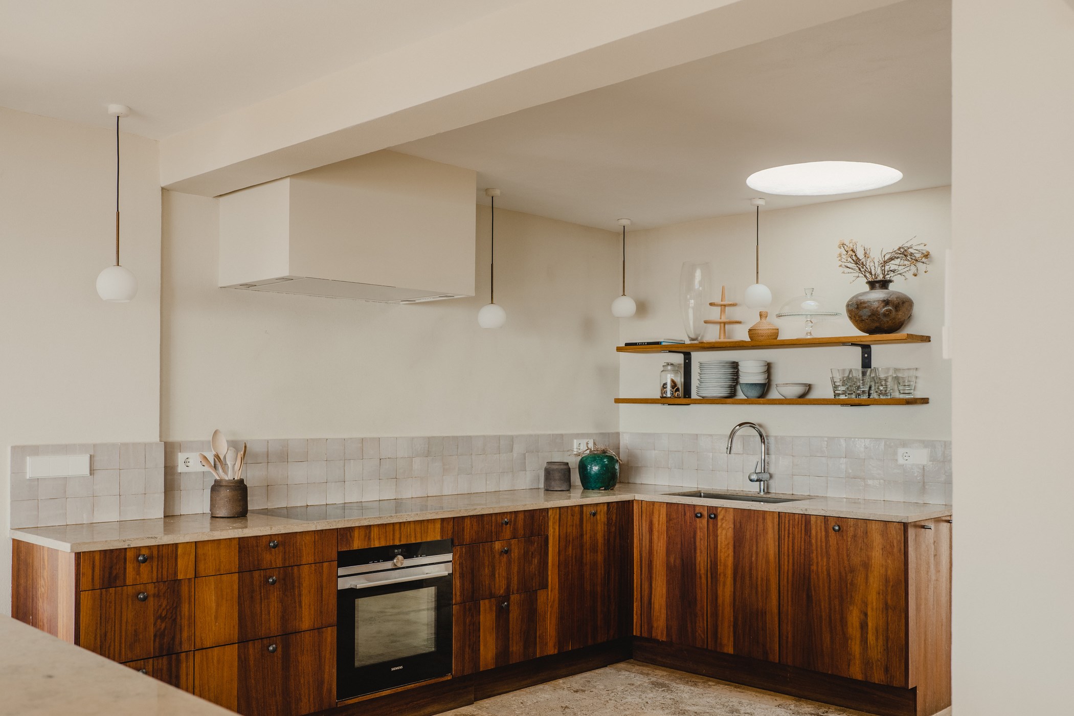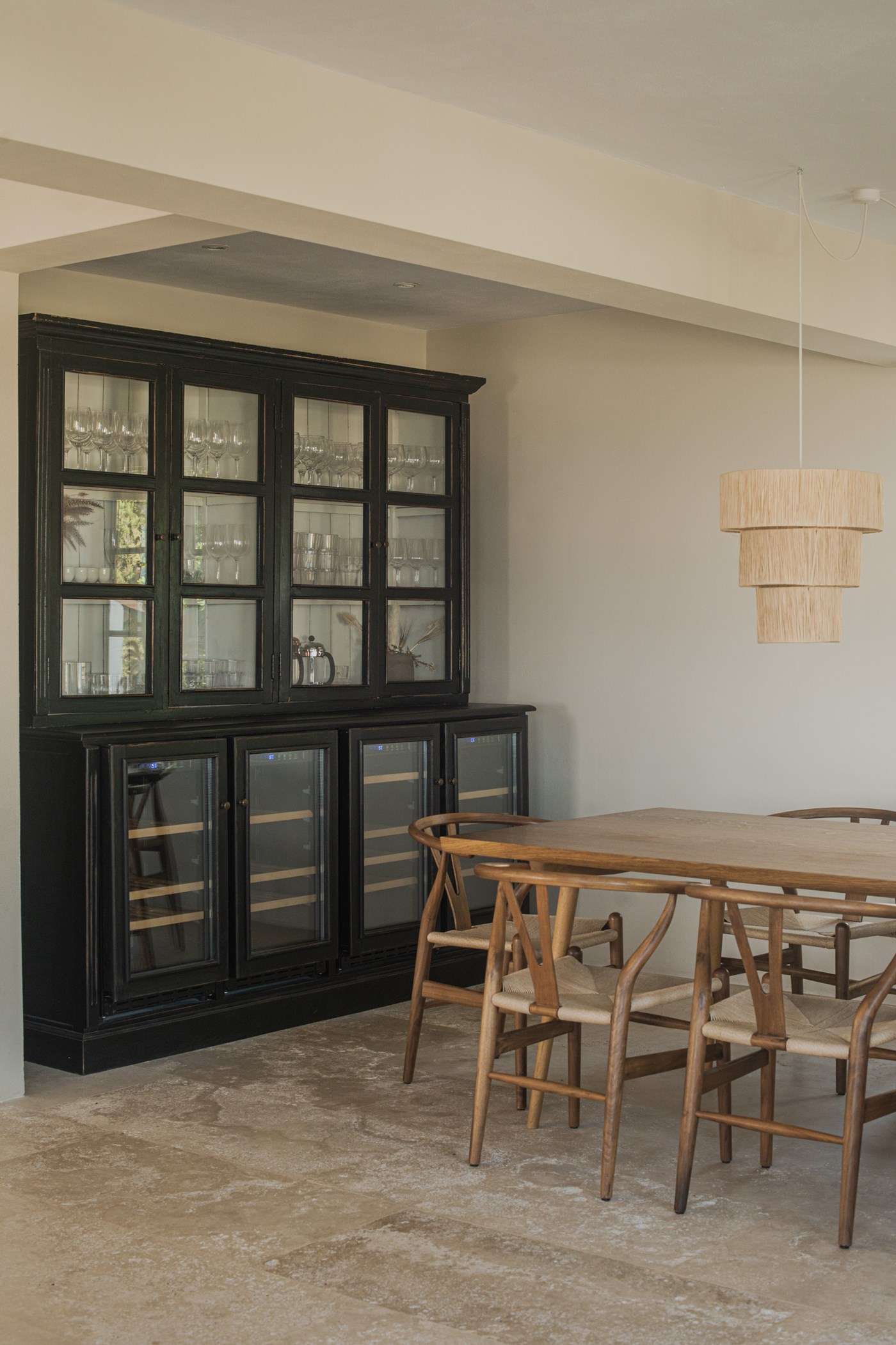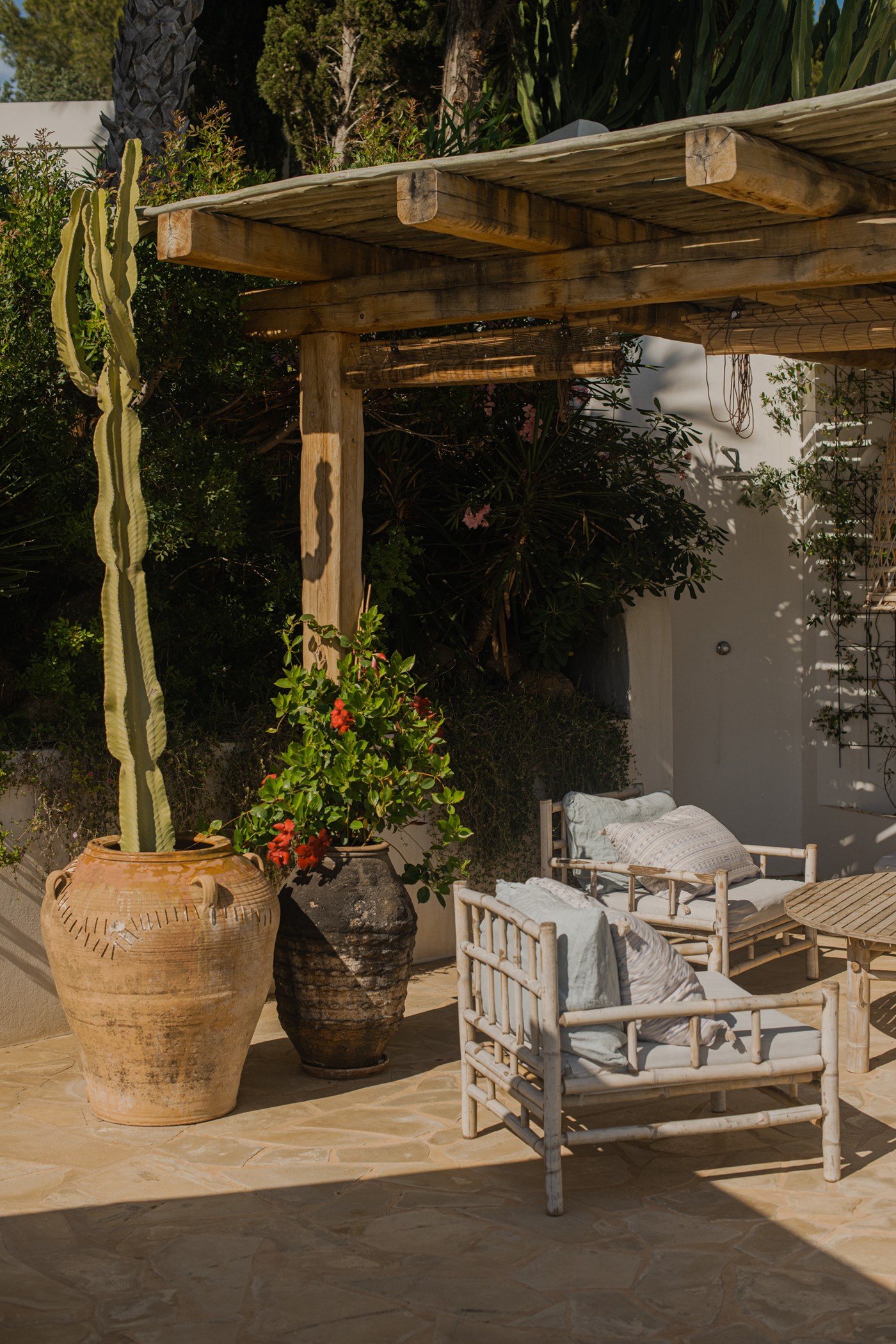 Among its distinguishing elements: a generous private pool at the centre of the grounds. The interiors are generous and well-proportioned, with neutral tones that allow the Mediterranean light to do the rest.