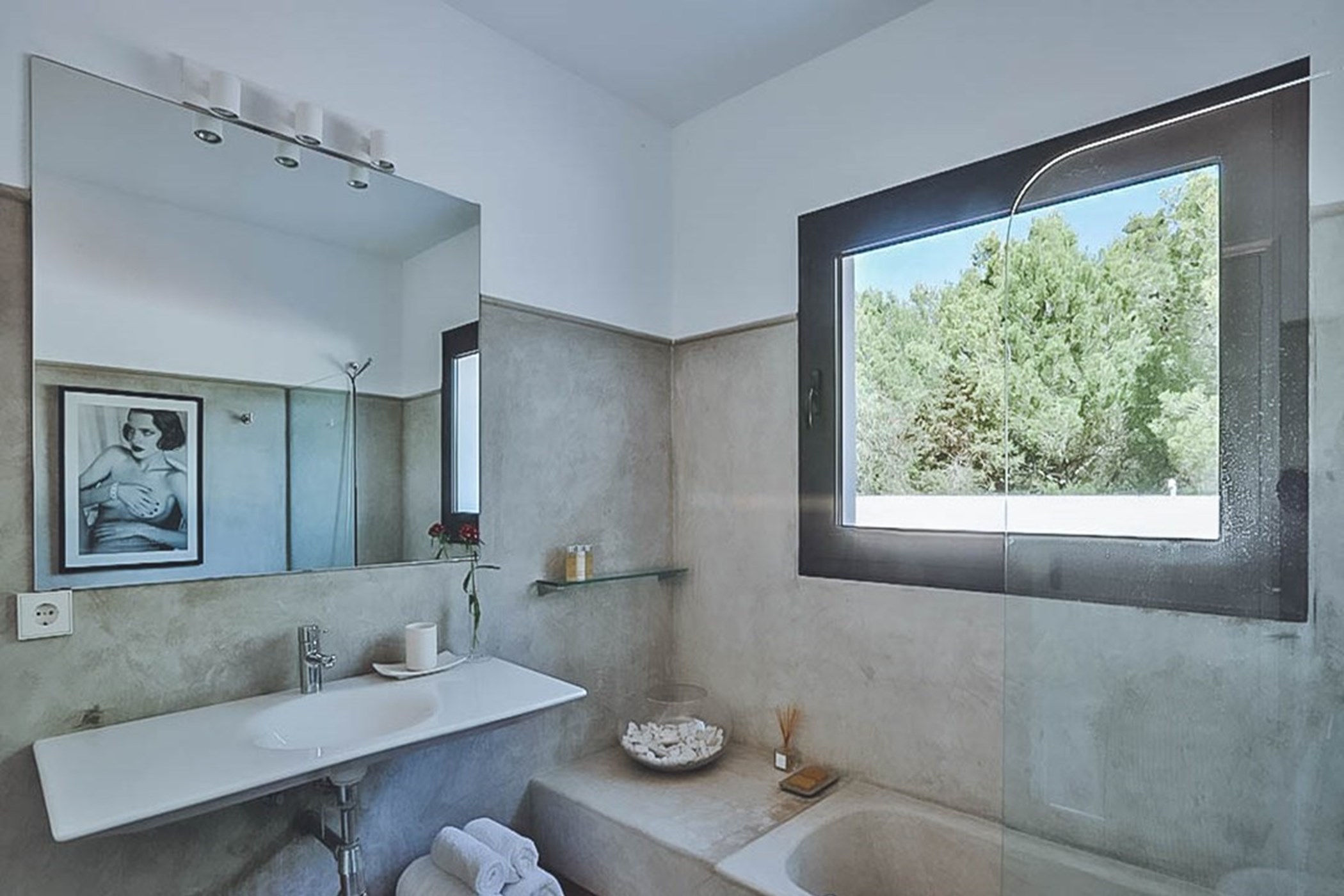 Among its distinguishing elements: an infinity pool that merges visually with the horizon. The interiors are generous and well-proportioned, with neutral tones that allow the Mediterranean light to do the rest.