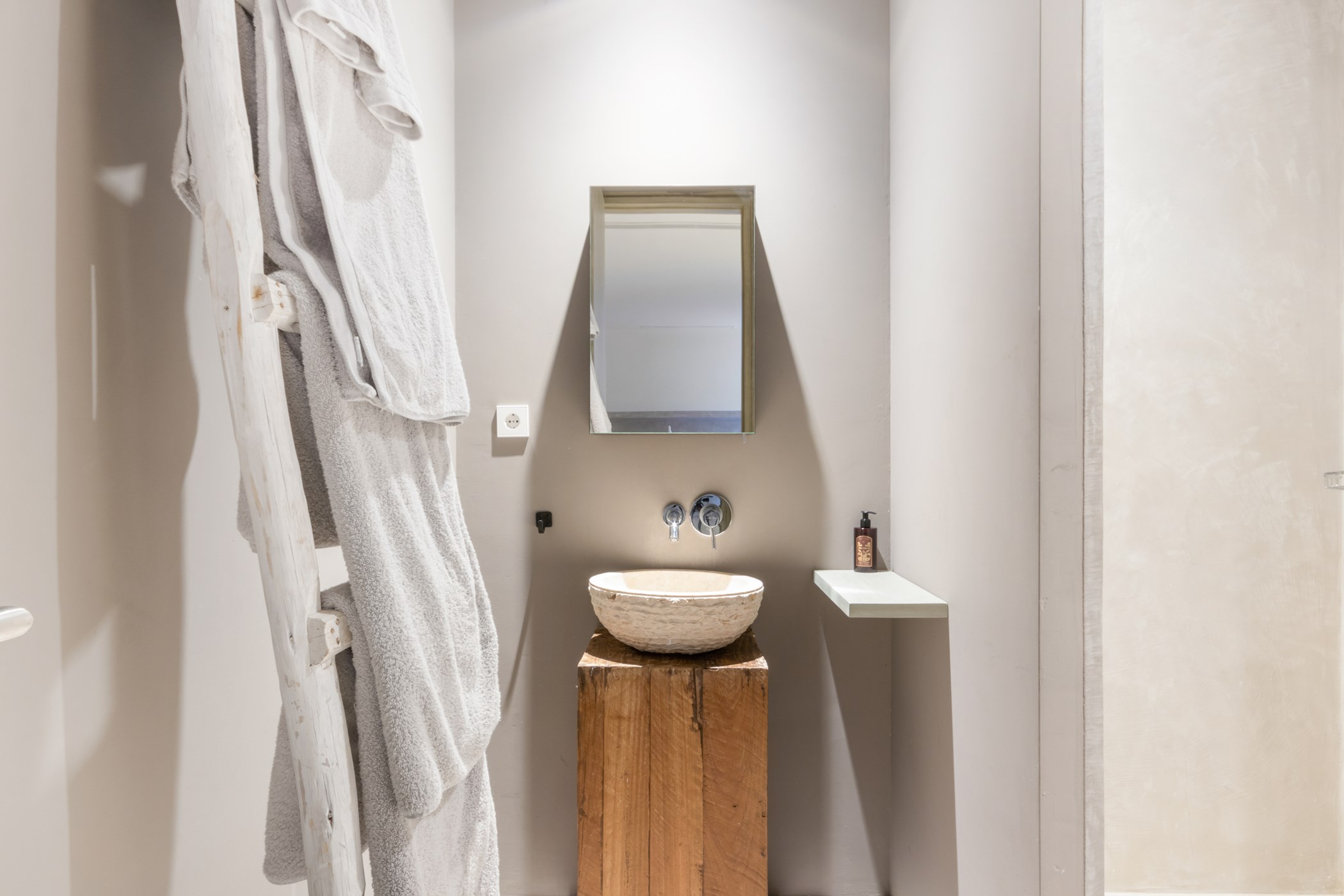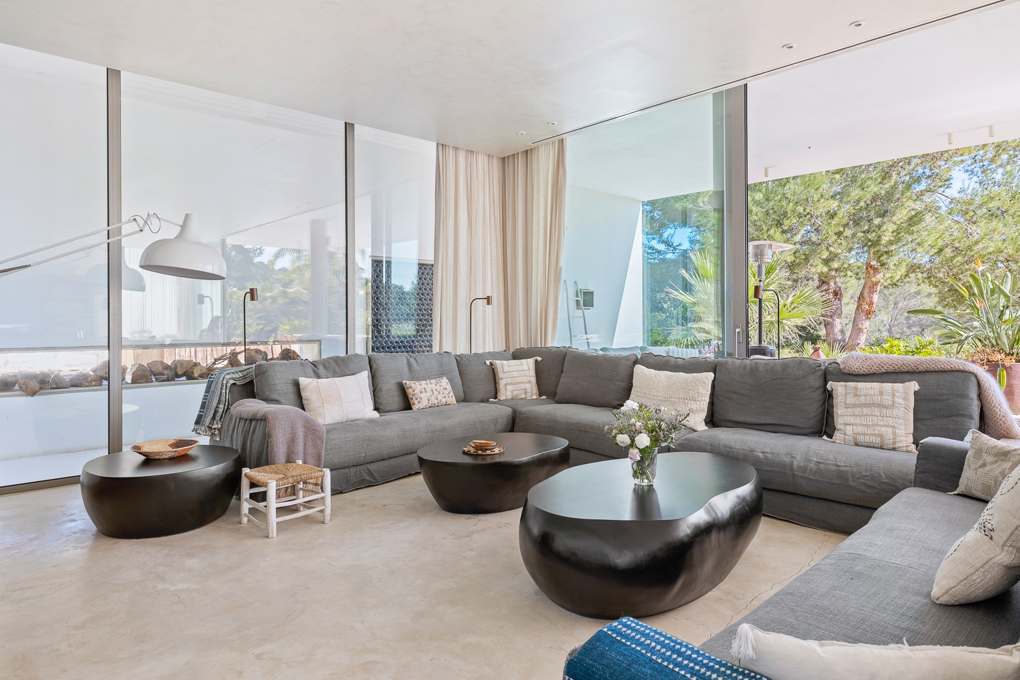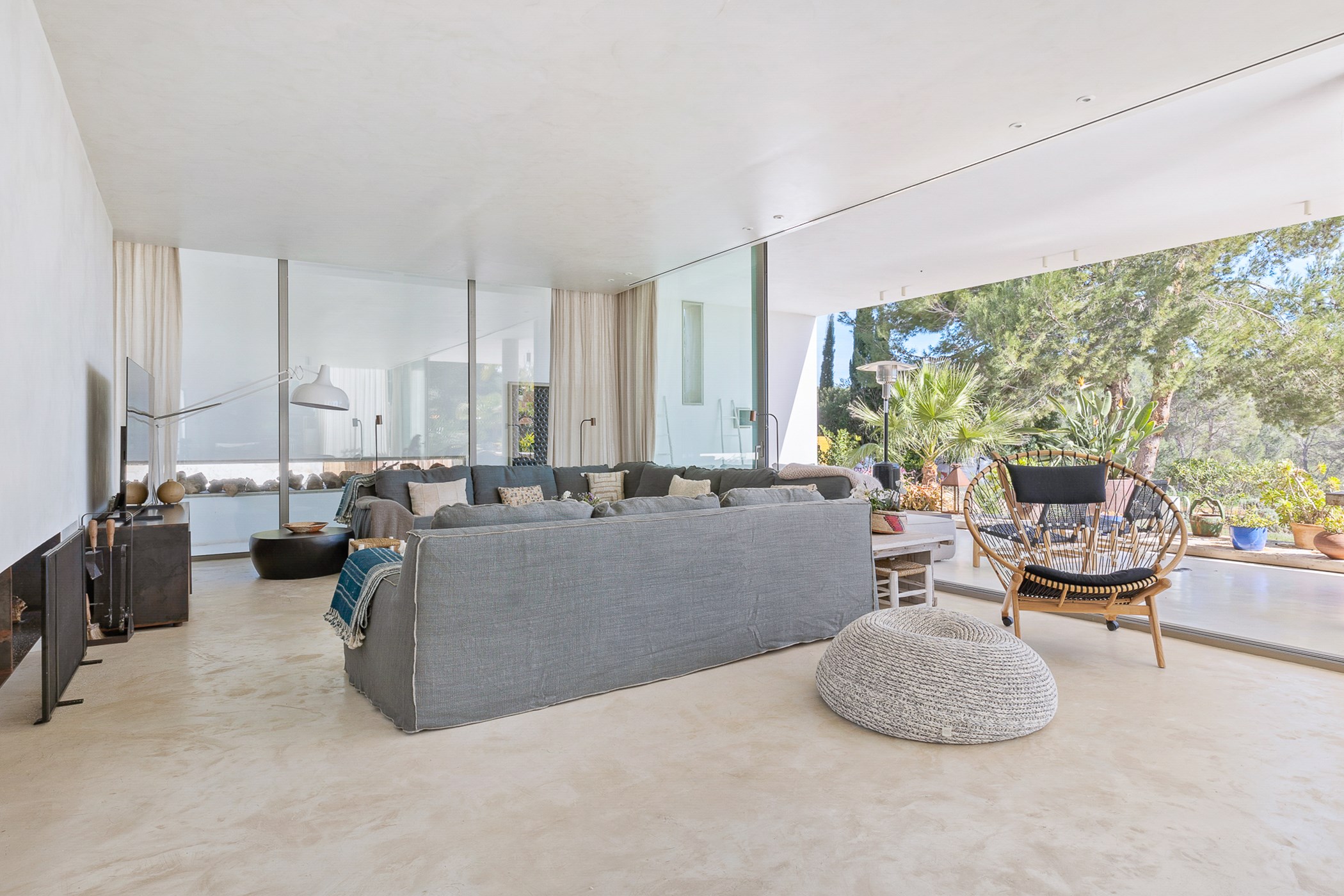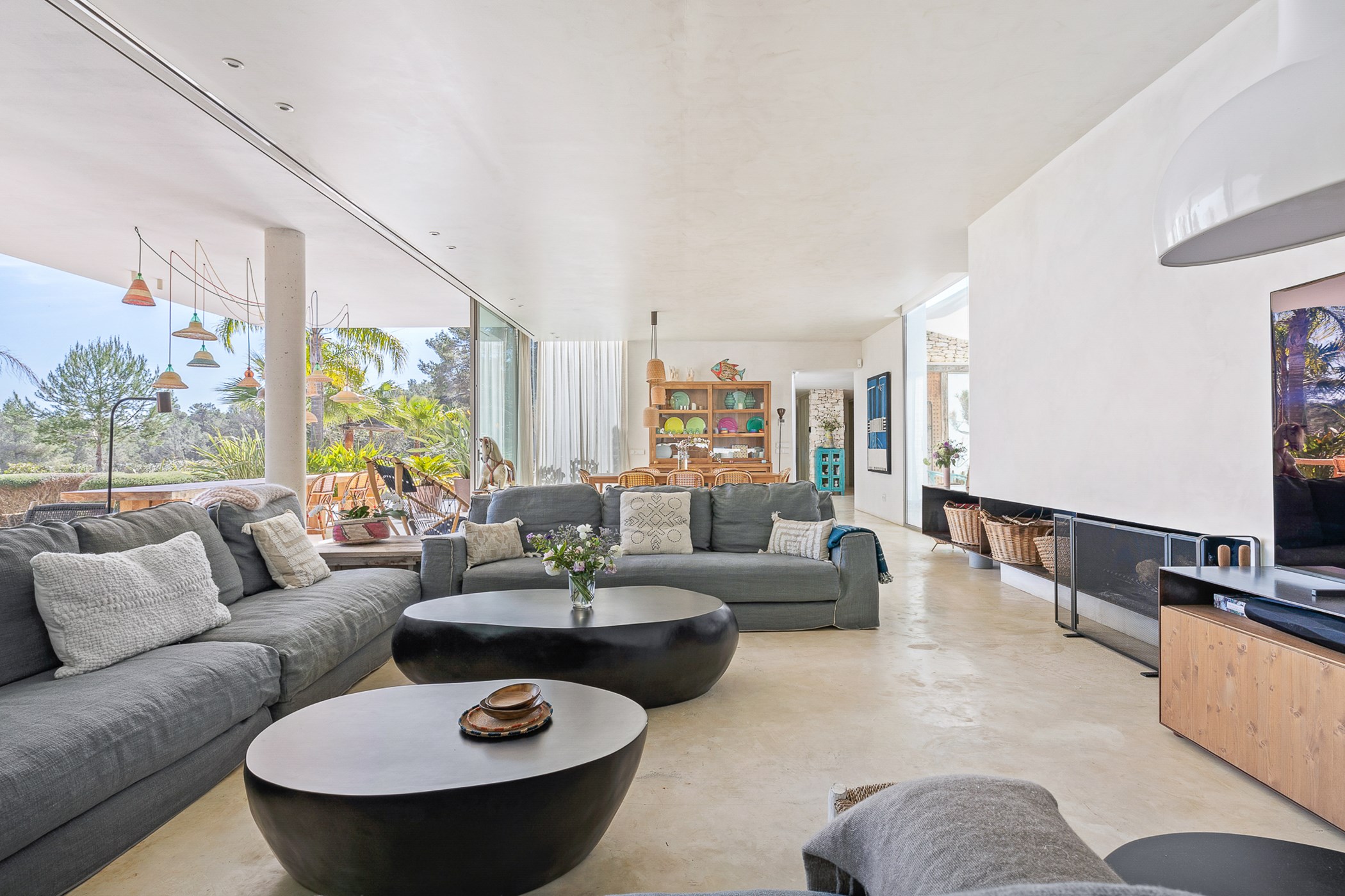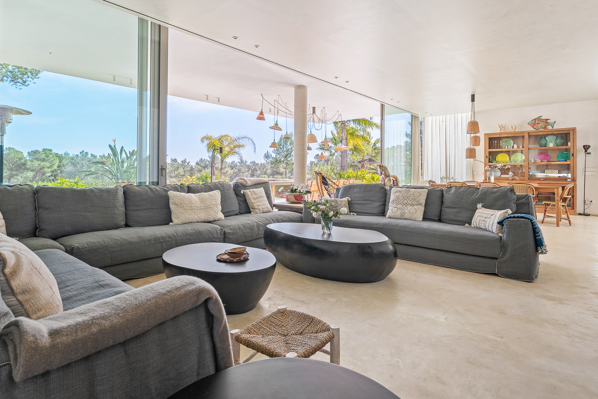 Among its distinguishing elements: a generous private pool at the centre of the grounds. The interiors are generous and well-proportioned, with neutral tones that allow the Mediterranean light to do the rest.