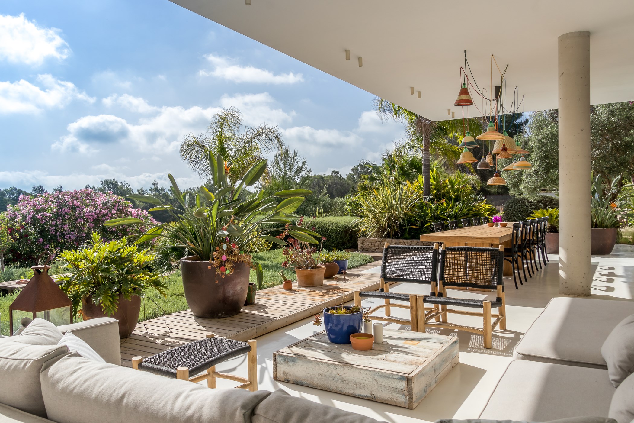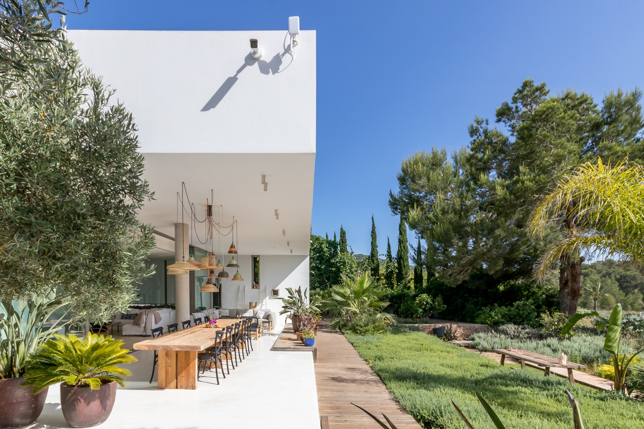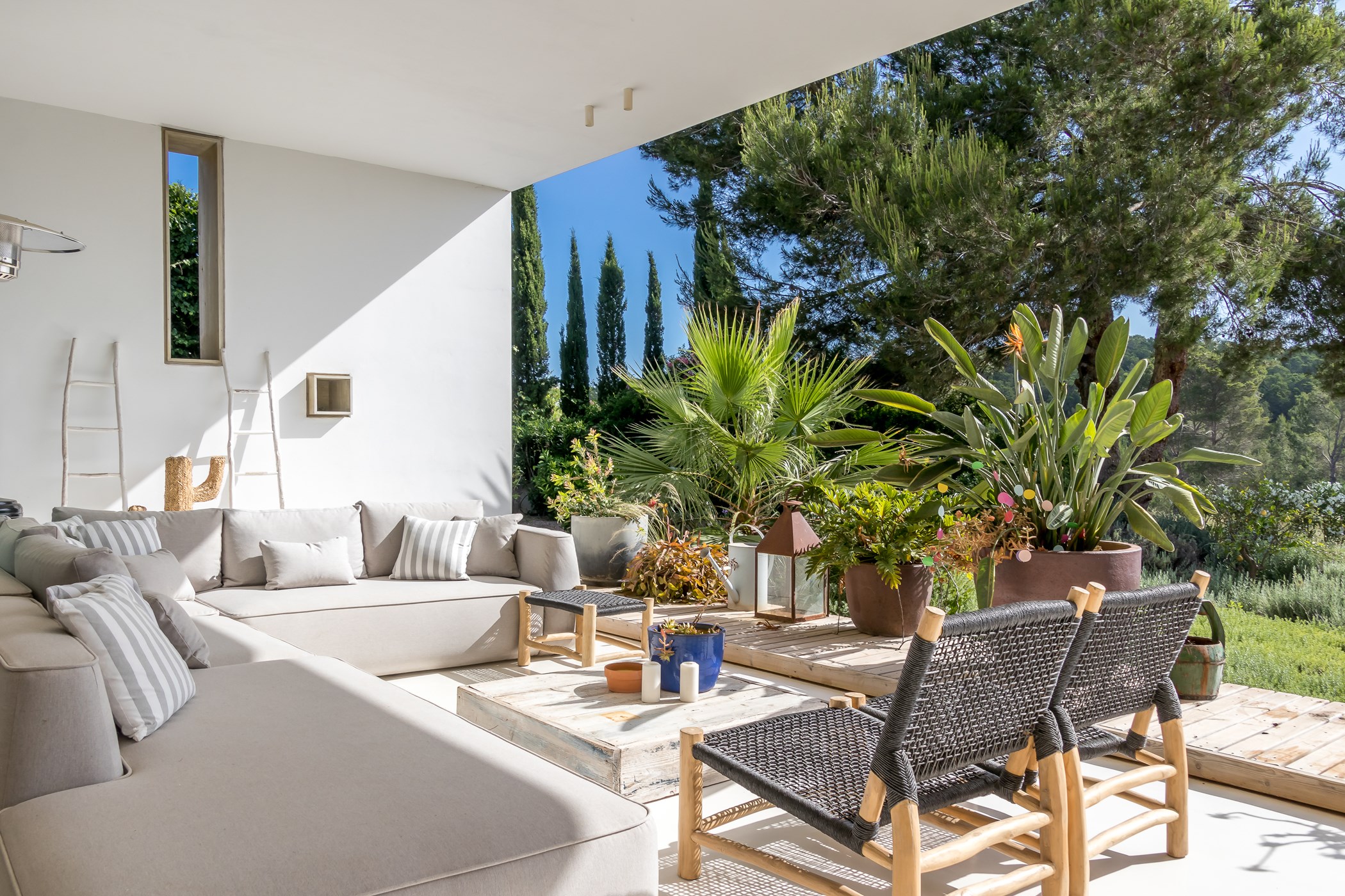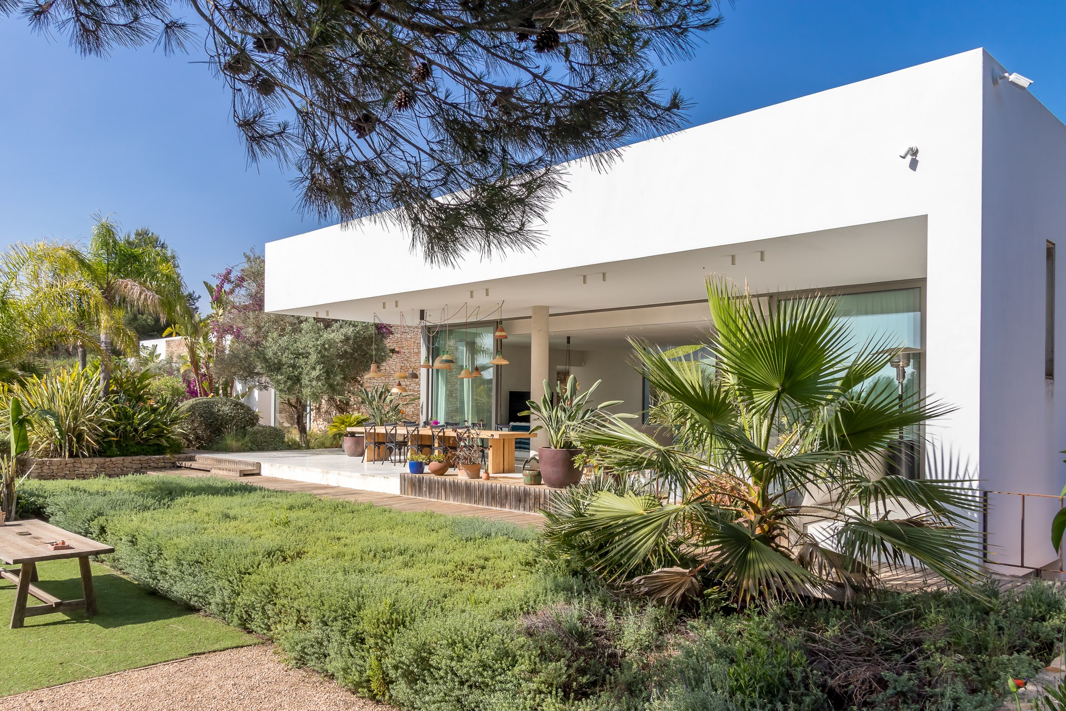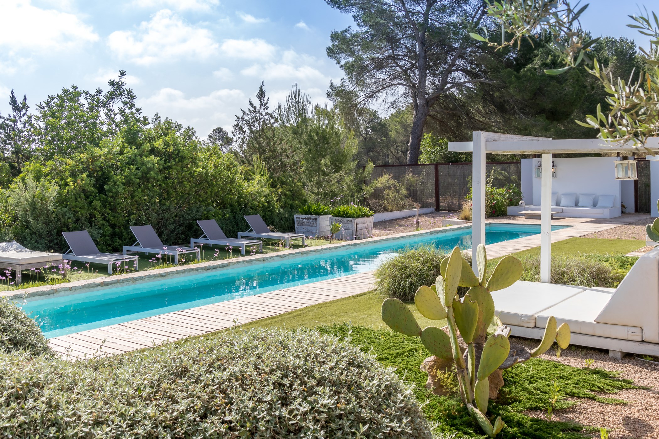 In Santa Gertrudis, the landscape still moves at its own speed. Tamarisco Claro belongs to this quieter Ibiza — a 4-bedroom retreat surrounded by mature gardens, ancient fig trees, and the kind of silence that feels like a luxury.