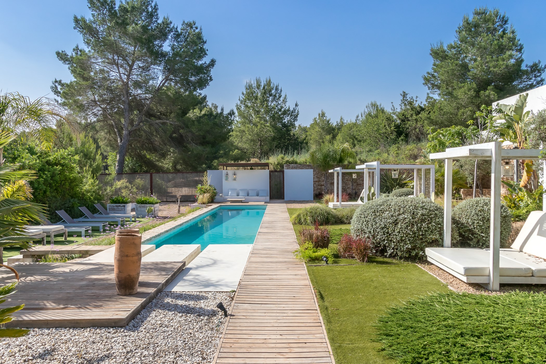 Located in Santa Gertrudis, Santa Eulalia del Rio. A hire car is recommended. The village offers an excellent selection of restaurants and boutiques. Ibiza Airport: 15–30 minutes by car.