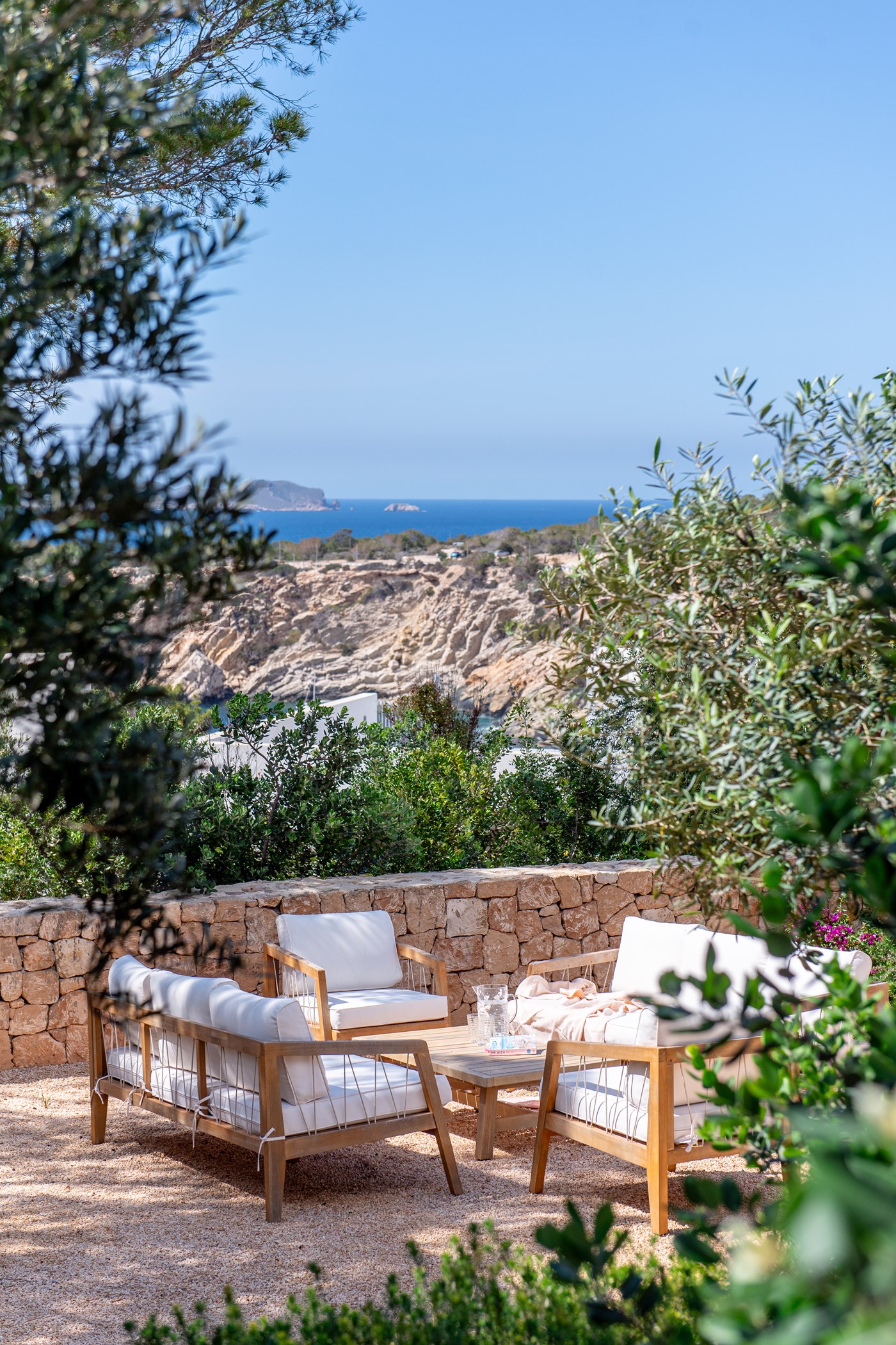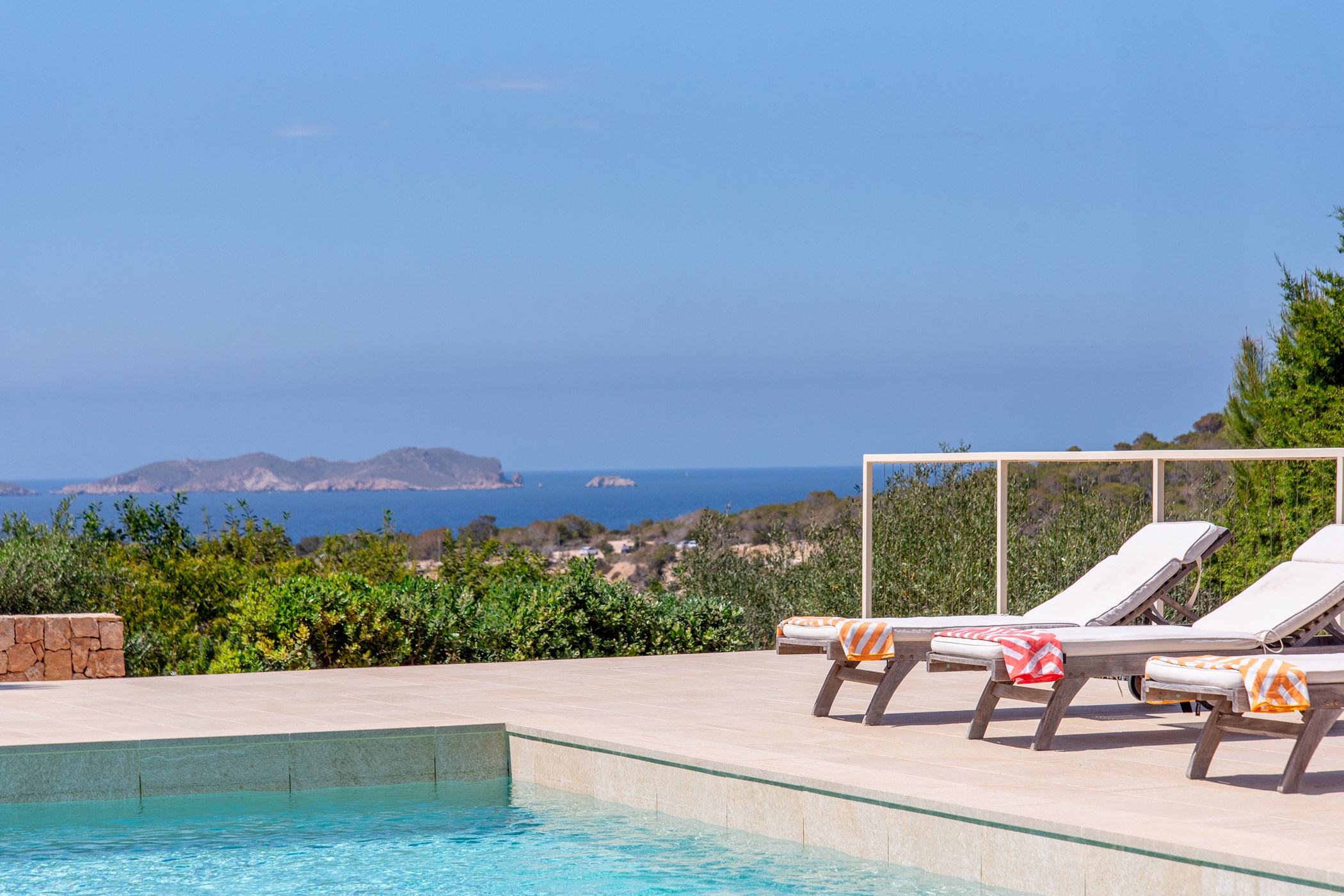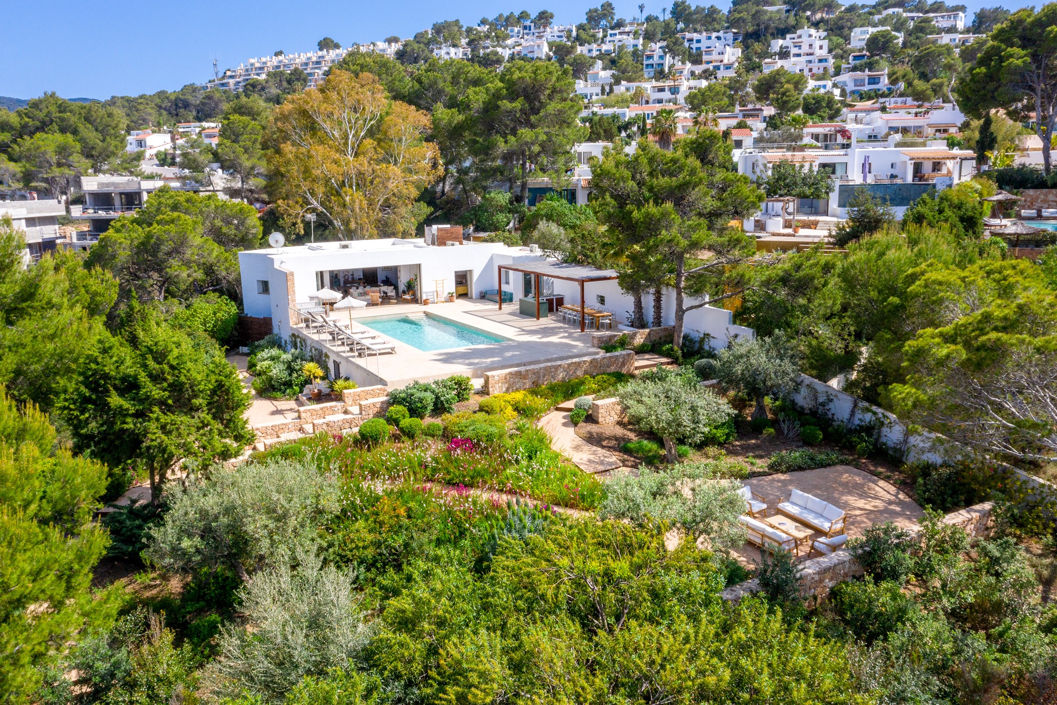 Located in Cala Vadella, San Jose de Sa Talaia. A hire car is recommended. Some of Ibiza’s most celebrated beaches are within minutes. Ibiza Airport: 15–30 minutes by car.