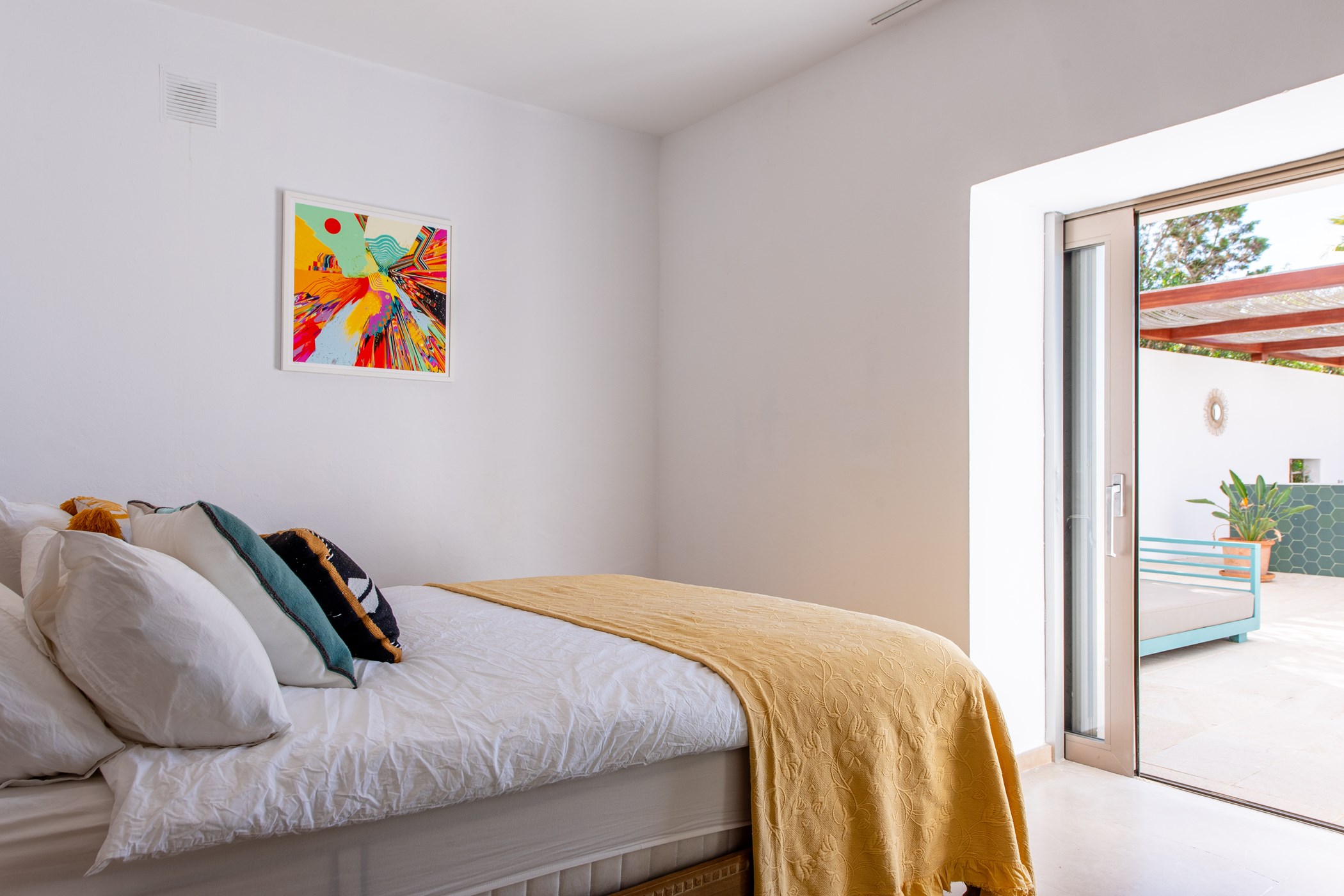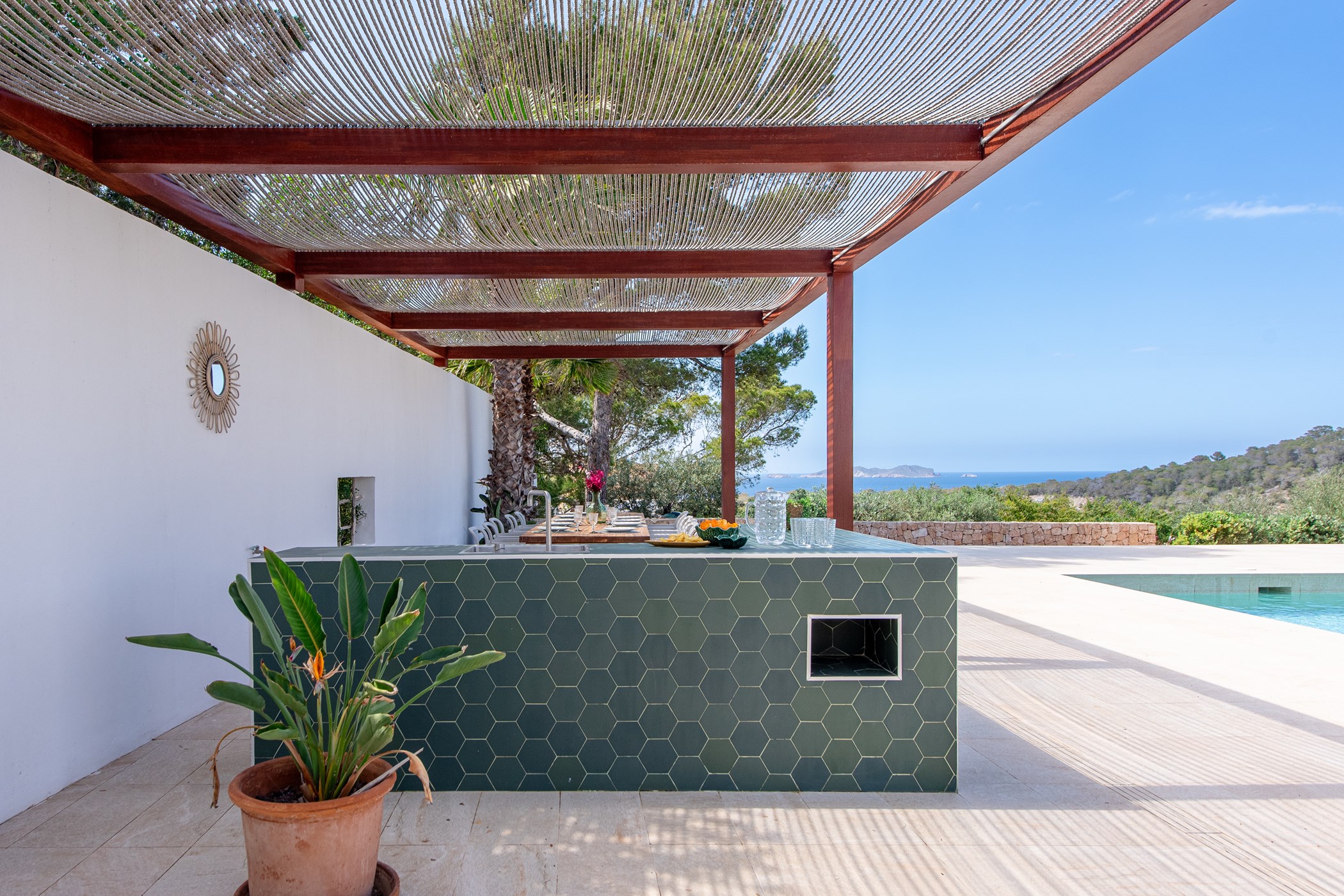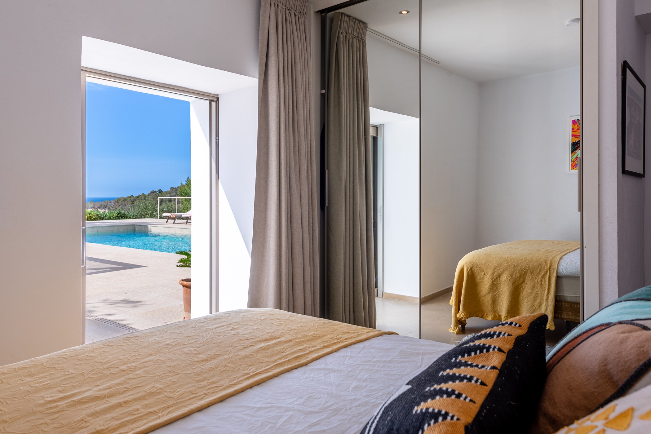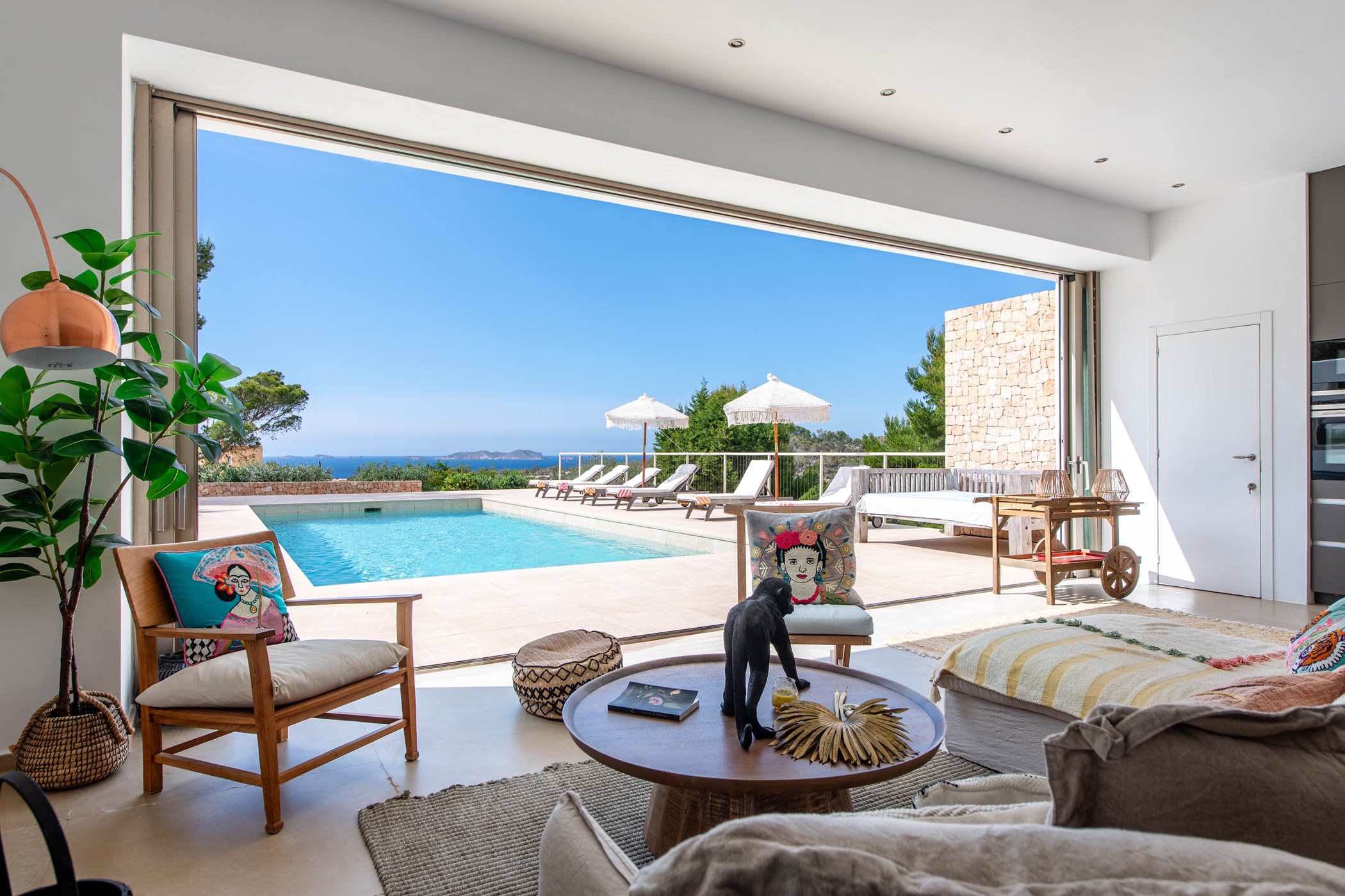 Located in Cala Vadella, San Jose de Sa Talaia. A hire car is recommended. Some of Ibiza’s most celebrated beaches are within minutes. Ibiza Airport: 15–30 minutes by car.