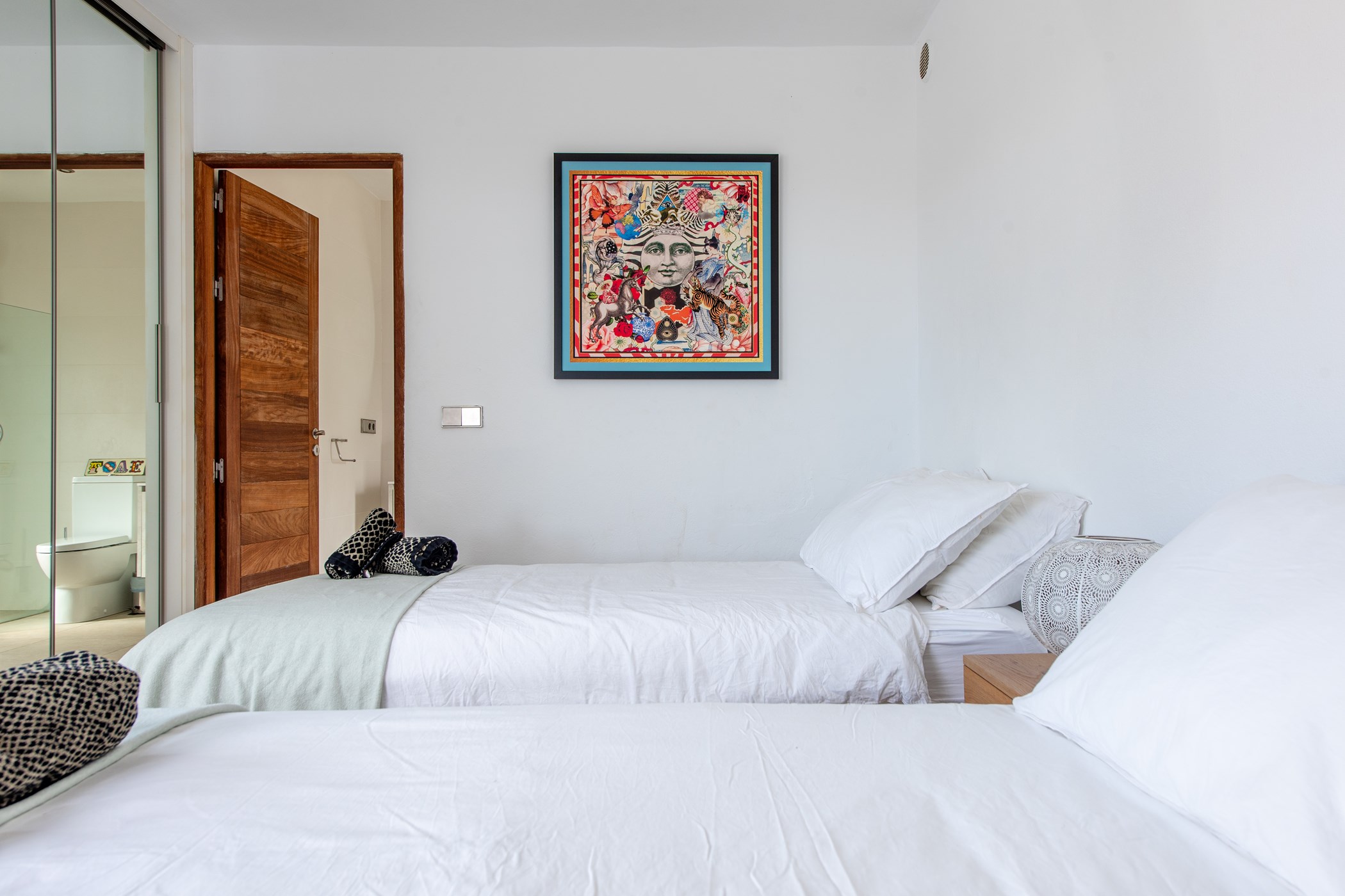 The villa accommodates up to 10 guests across 5 bedrooms and 5 bathrooms. All rooms are equipped with high-quality bedding, air conditioning, and ample storage.